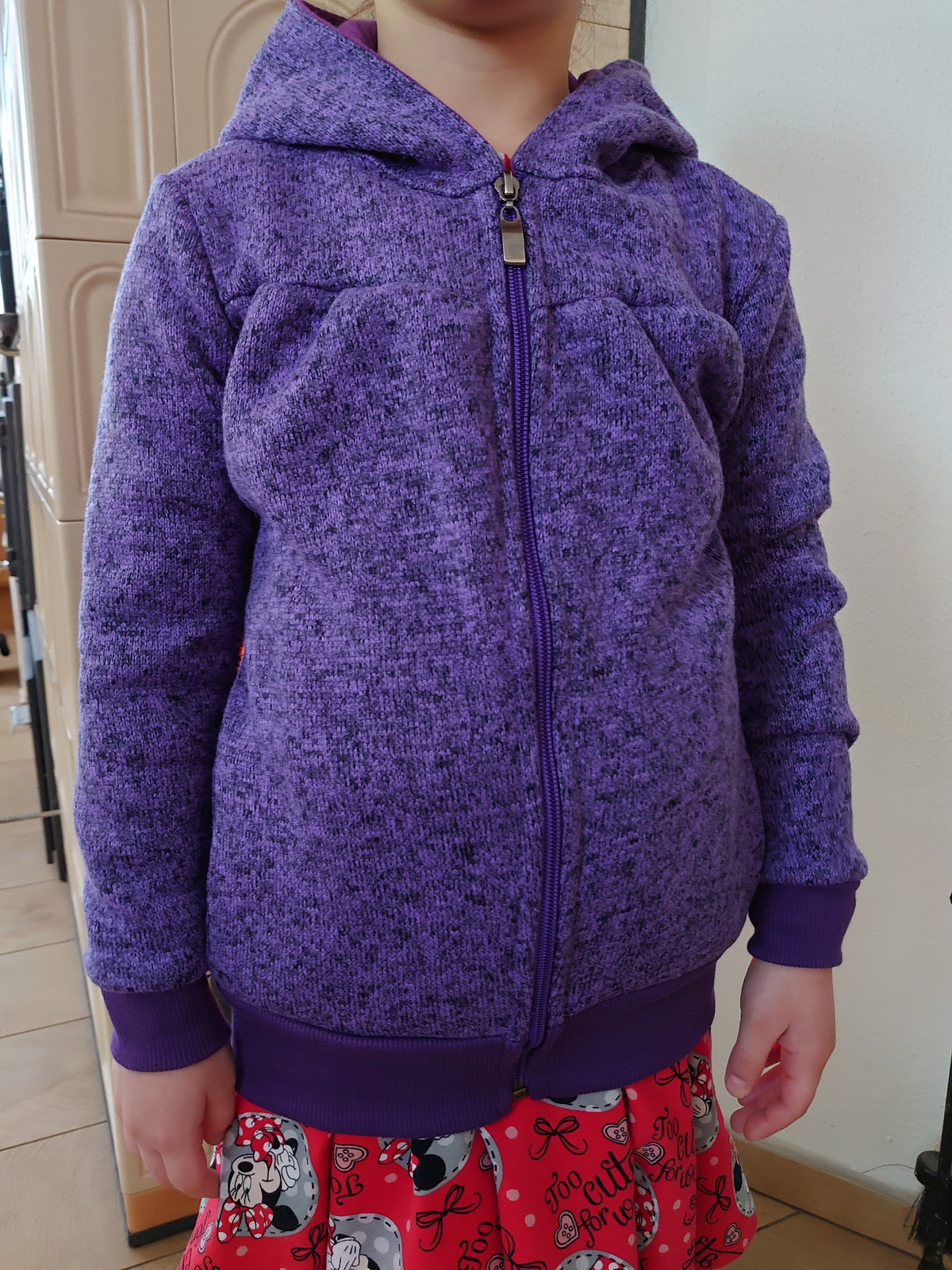 Mikina je neuvěřitelně variabilní a díky nastavení na míru ji můžete šít pro děti od školky až po střední školu. V nastavení střihu na míru lze nastavit i množství řasení, stejně tak délku a šířku mikiny i rukávů. Mikina je spíš upnutější, délkově sedí akorát, nemá rezervu na "do toho doroste :-)".