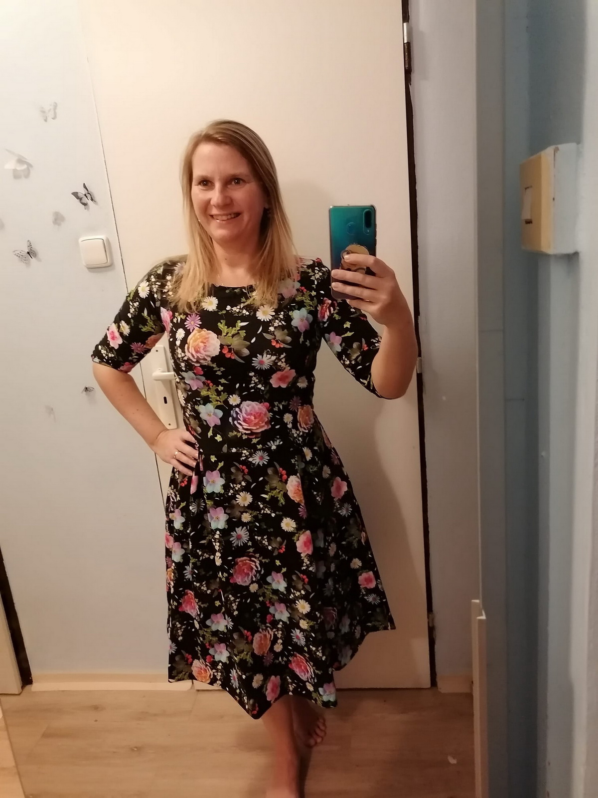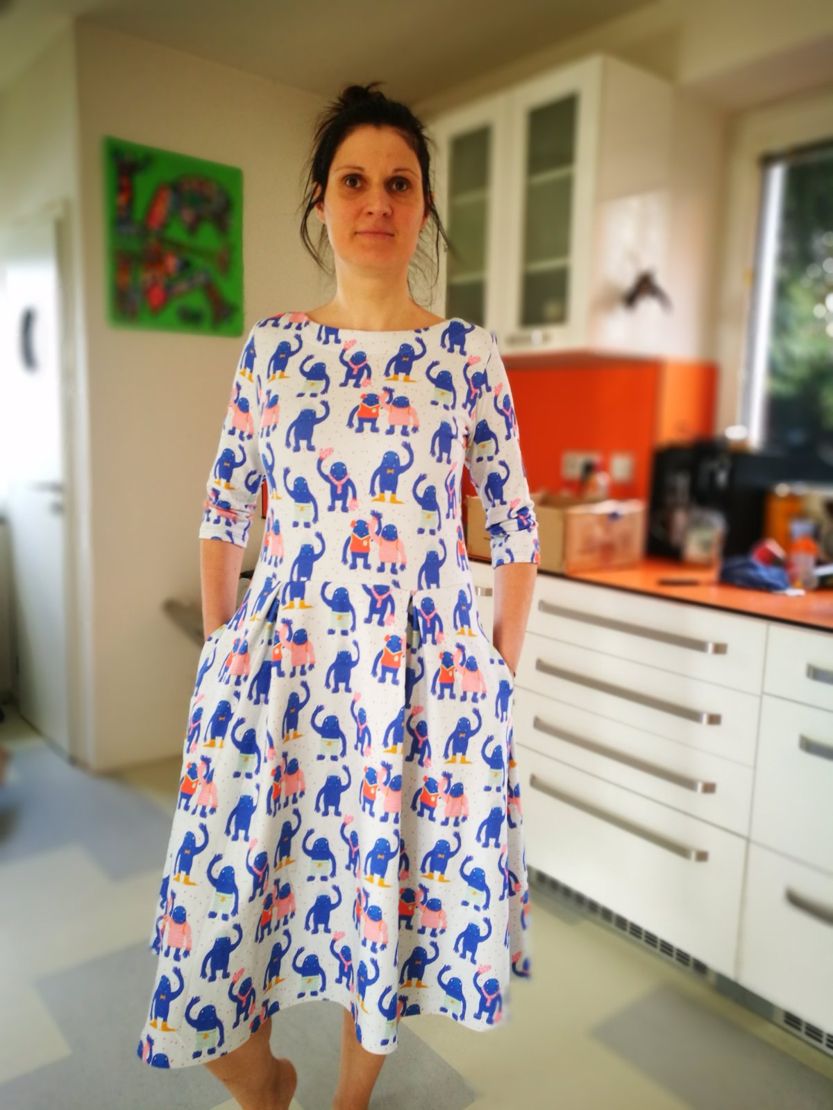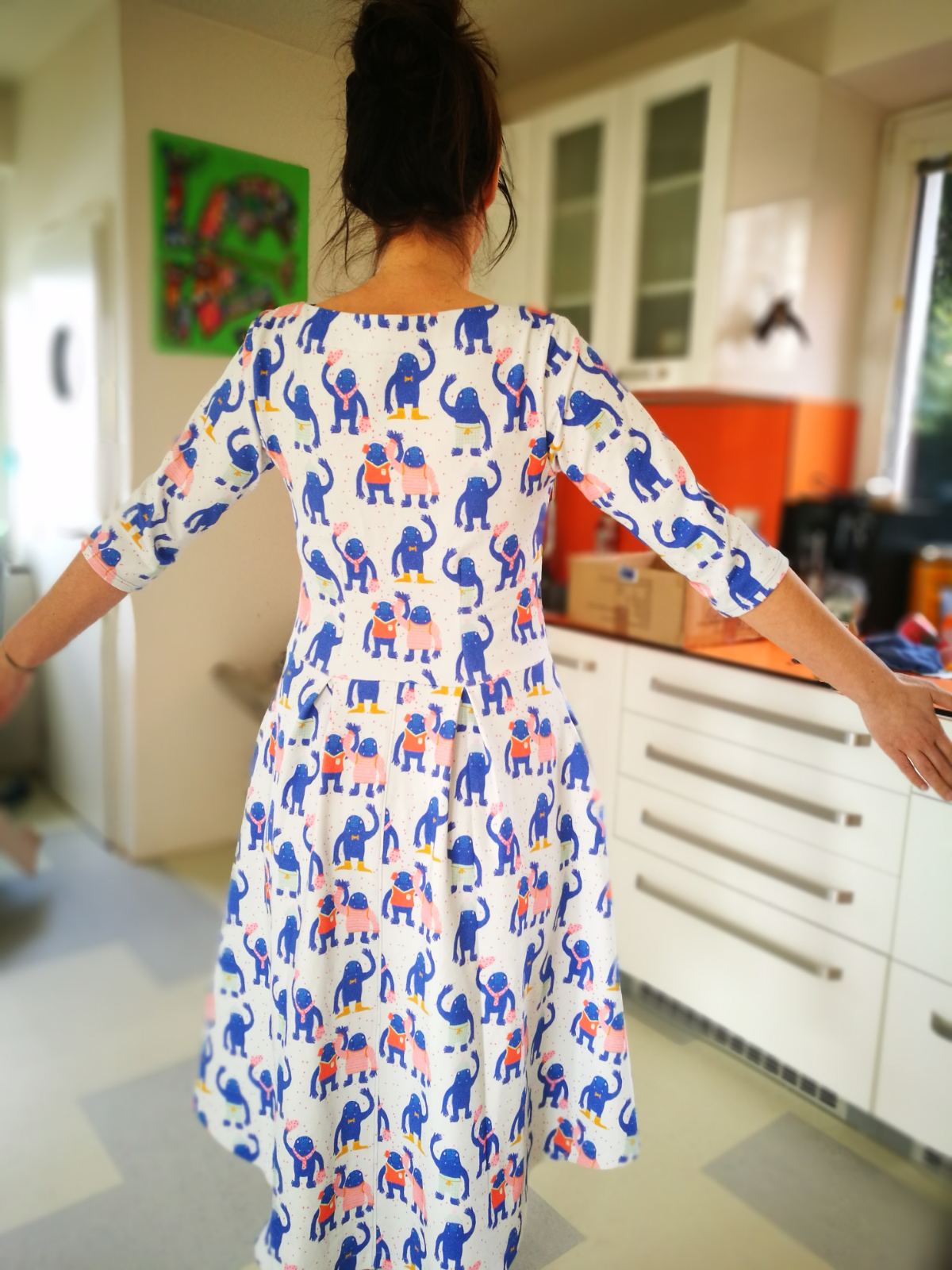 „Výroba střihu byla z celého projektu nejnáročnejší, vytisknout, slepit a vystřihat. Ovšem samotné šití je díky dokonalému návodu opravdu jednoduché! Střih jsem si upravila u výstřihu- nedávala jsem vsadku a zakončila zahnutím dovnitř. A zároveň jsem nešila kapsy. Délka šatů při mé výšce 170cm zcela odpovídá. Už mám objednanou látku na další :)