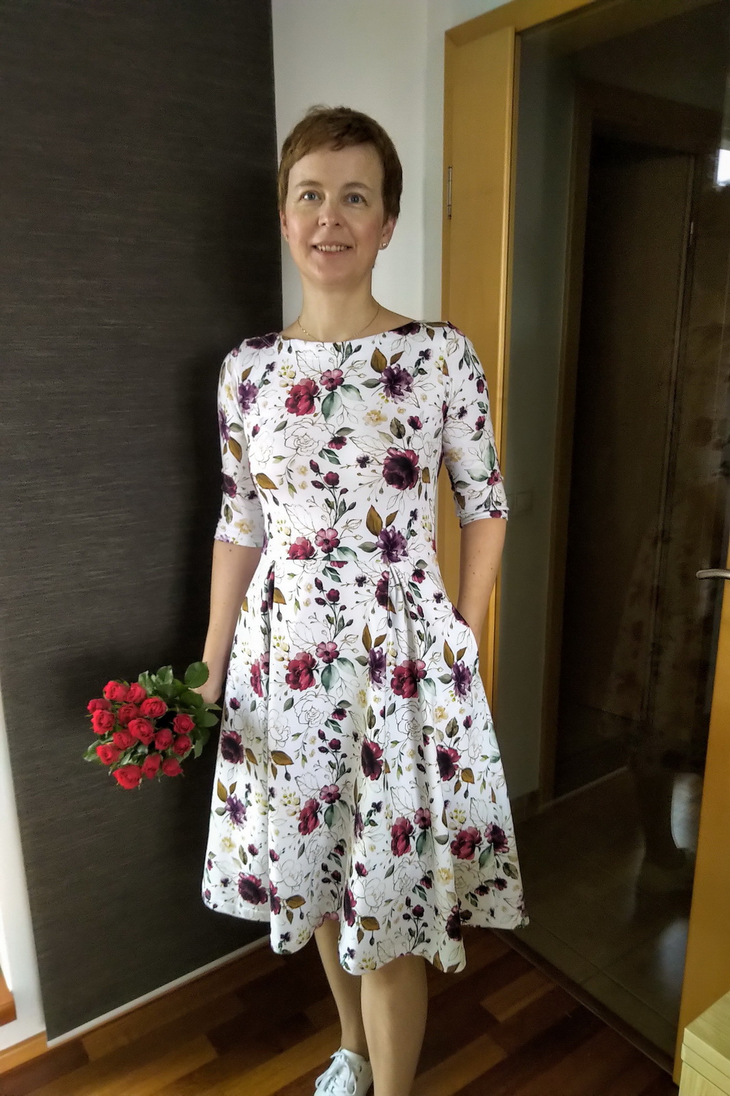„Perfektní střih a ušito doslova raz dva. Provedla malou úpravu výstřihu a musela jsem trochu upravit sukni, s ohledem na použitou borduru.“