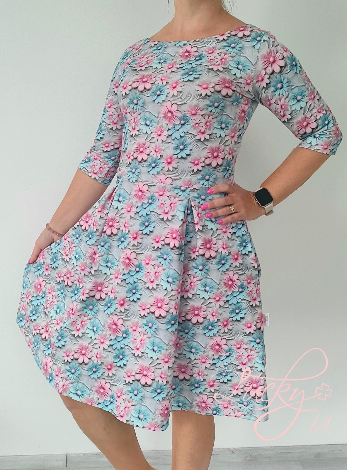 „Střih je úžasně, krásně se šije, velikost úžasně sedí,za což jsem nesmírně šťastná. Video návod je nejlepší věc na světě. Upravovala jsem si šaty na kojící a taky zkracovala nad kolena, neboť při výšce 164 jsme je měla delší a jsou perfektní. Určitě nezůstane u jednich 😀😀 děkuji“