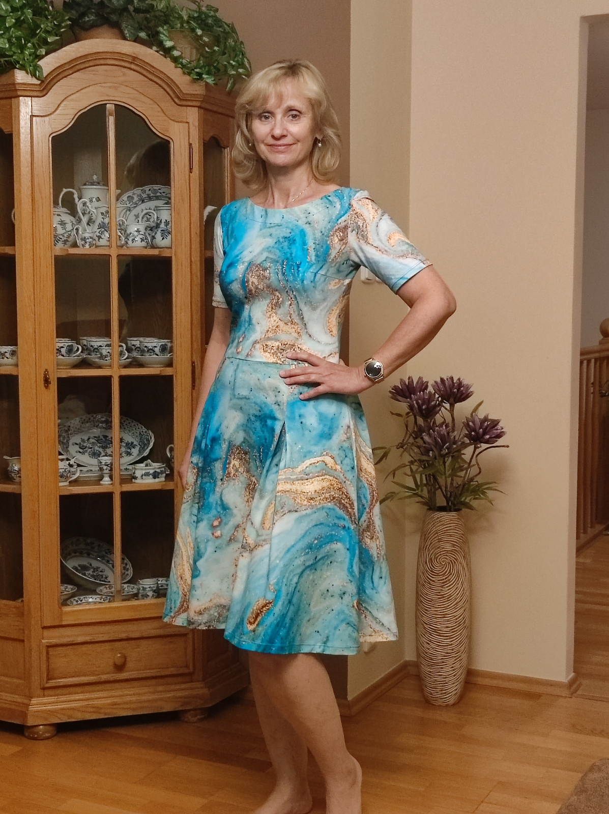 „Tyto šaty jsem si velice oblíbila a často je nosím. Nosí se moc dobře, je mi v nich příjemně. Na ušití byly snadné a návod byl vynikající.“