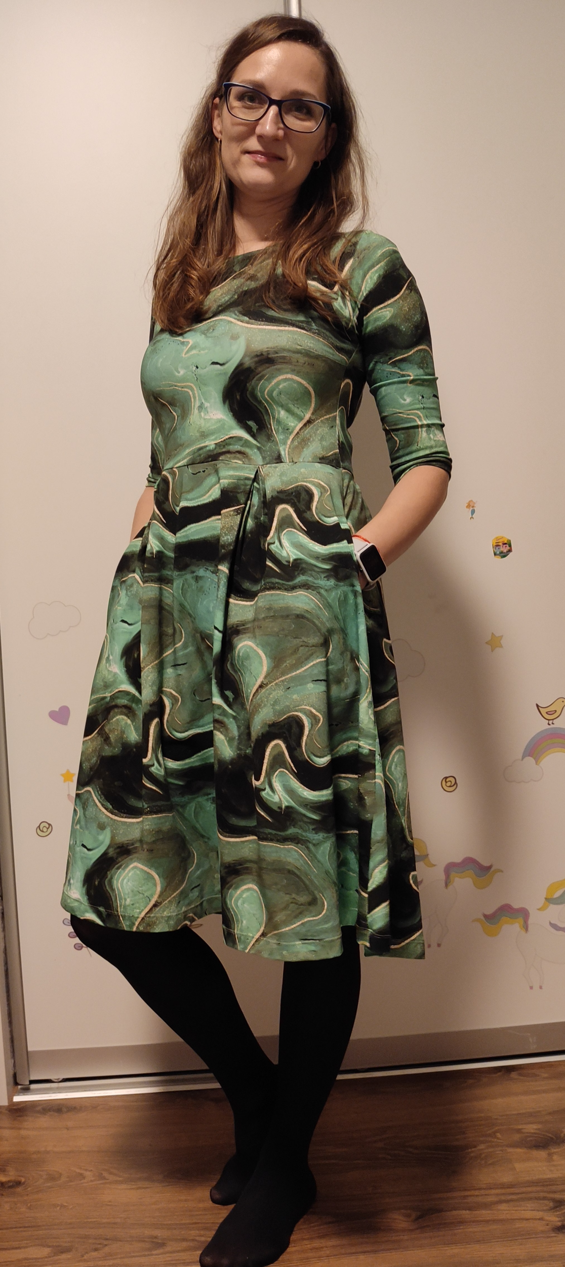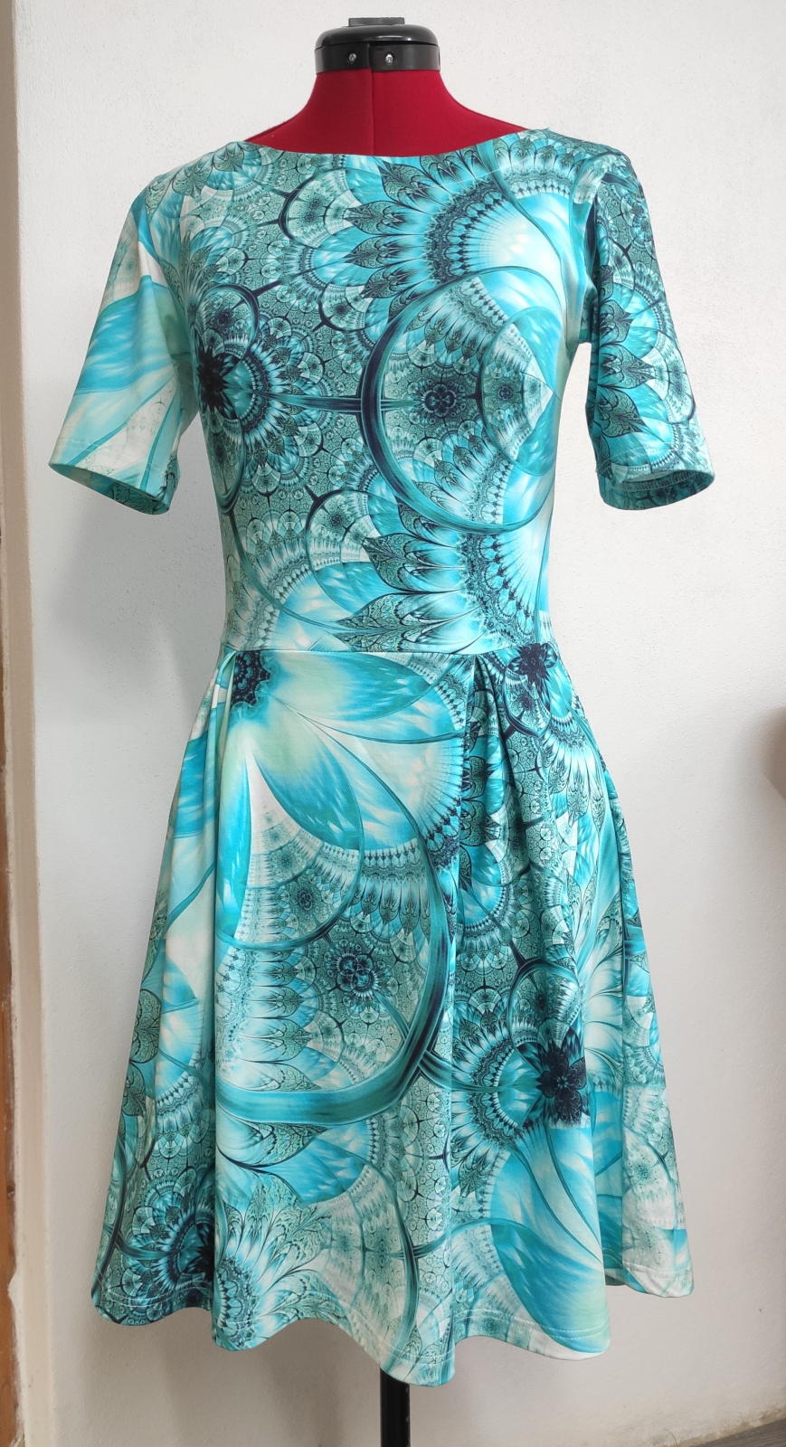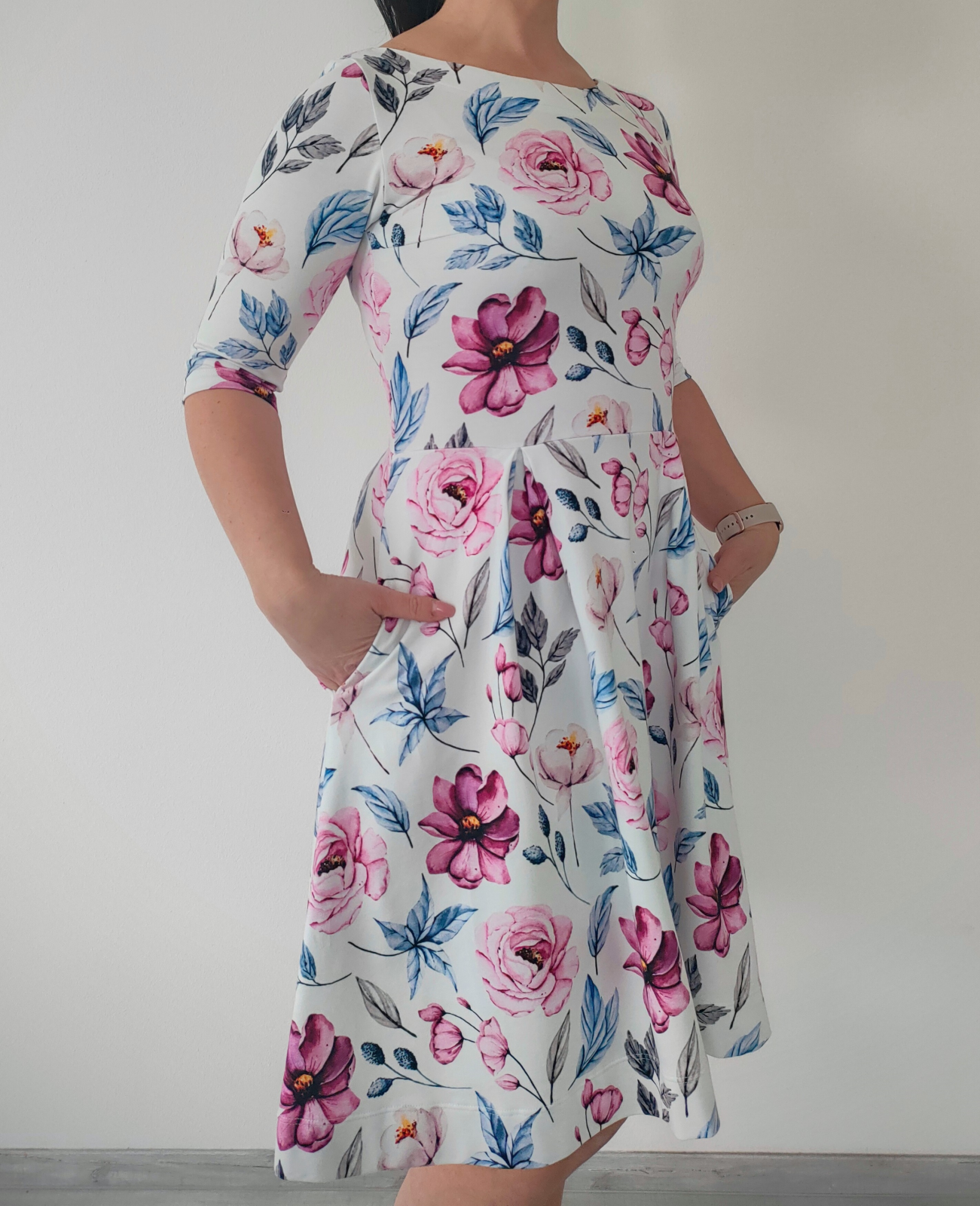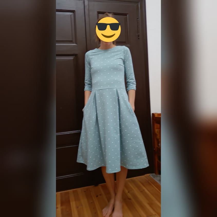„Strih sedí perfektne, nikde som nič neupravovala (pri zelených som mierne skrátila živôtik, inak bez zmeny). Video návod je super zrozumiteľný a šaty sa šijú naozaj dobre. Páči sa mi, že majú vrecká, sú pohodlné a ženské.“
