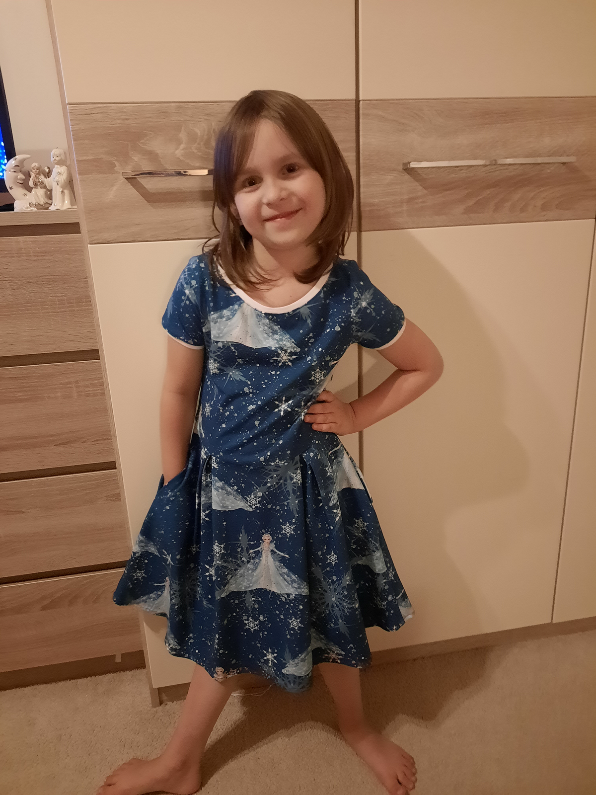 „Byla jsem z tohoto střihu nadšená a i malá je z těchto šatů. Jen jsem nedělala kapsy,jelikož by byli plné kamínků,atd... 😁“