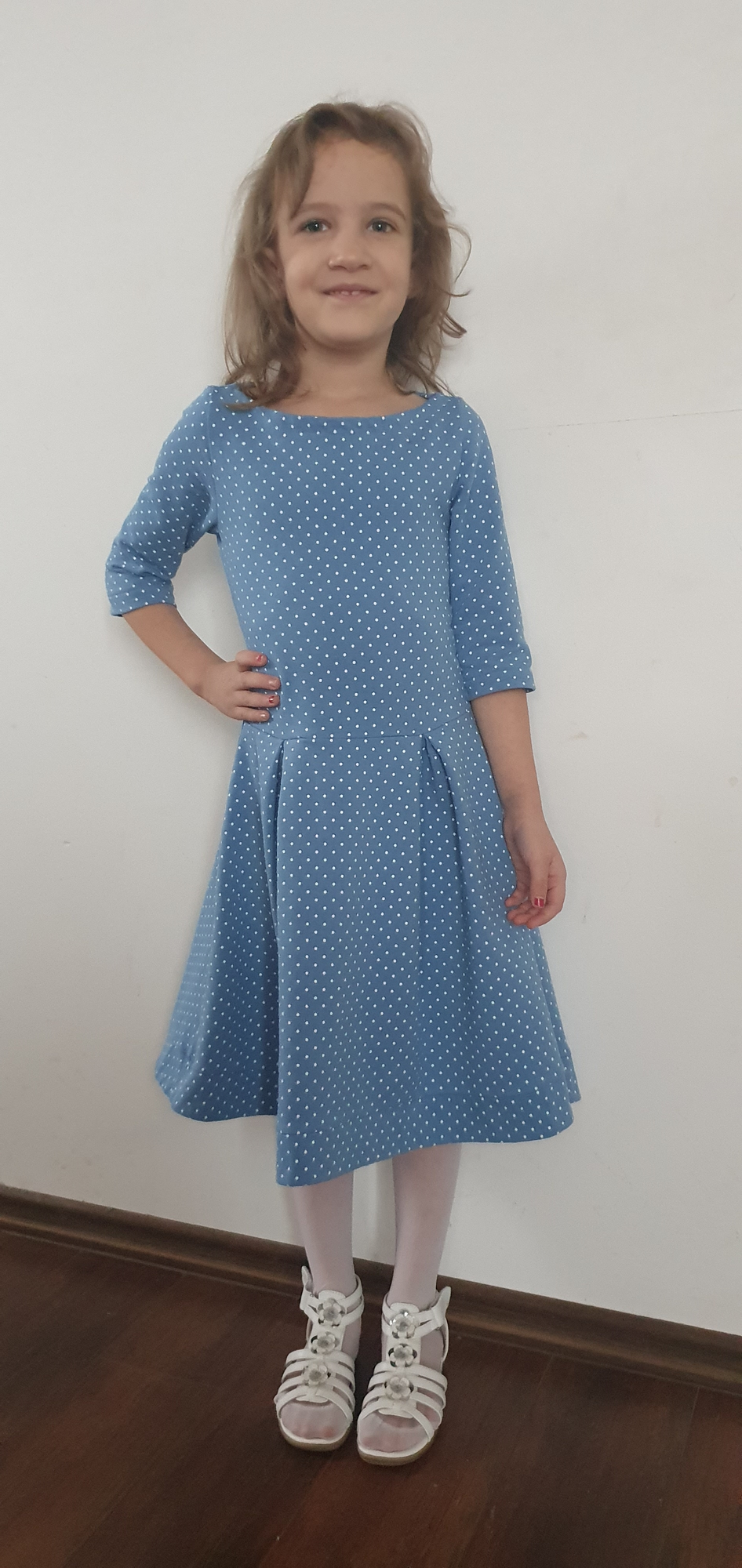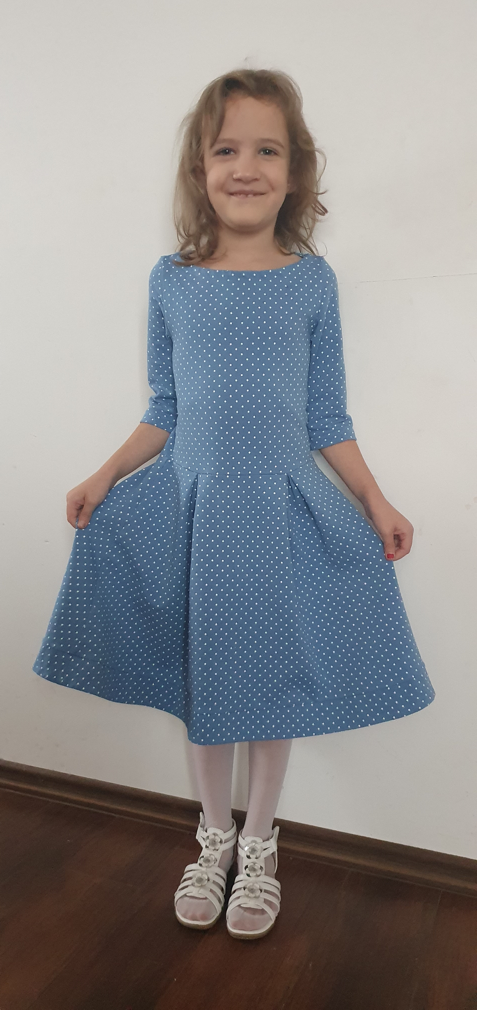 „Naprosto dokonalý střih a návod, jsem úplný začátečník a rovnou jsem se vrhla na tyto šatičky, díky bezvadnému návodu takto dopadly🙂“