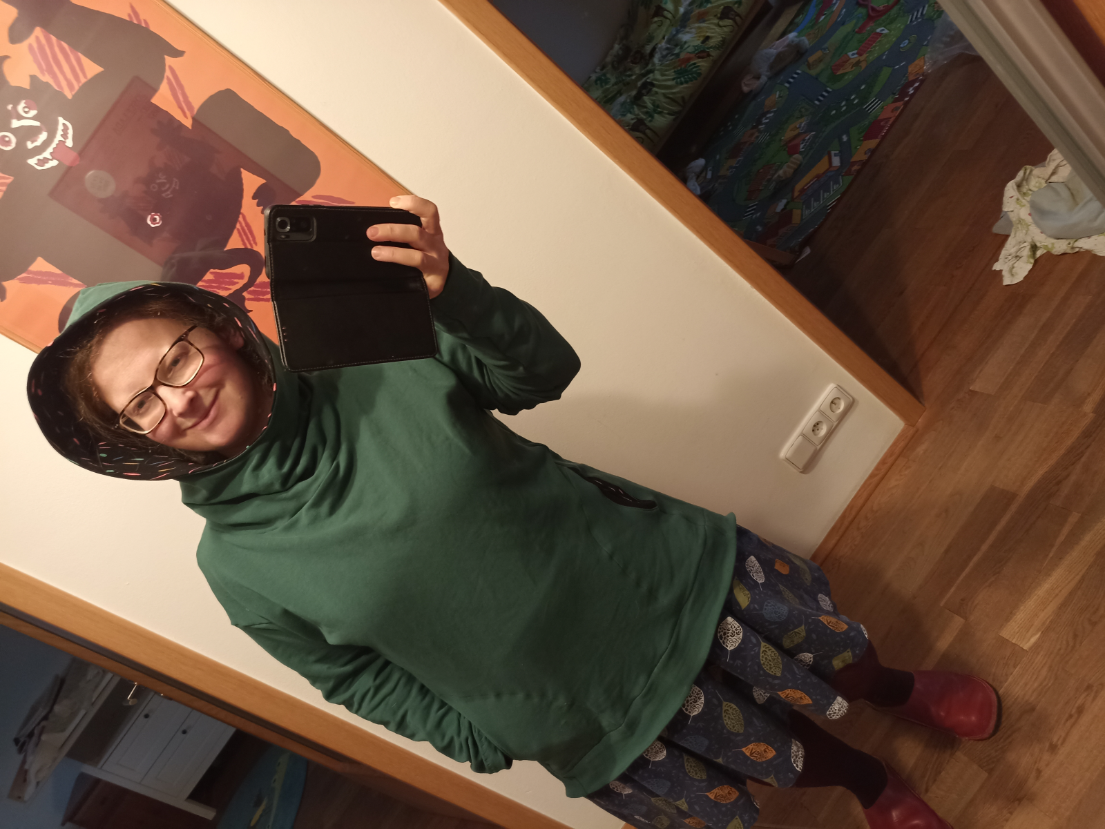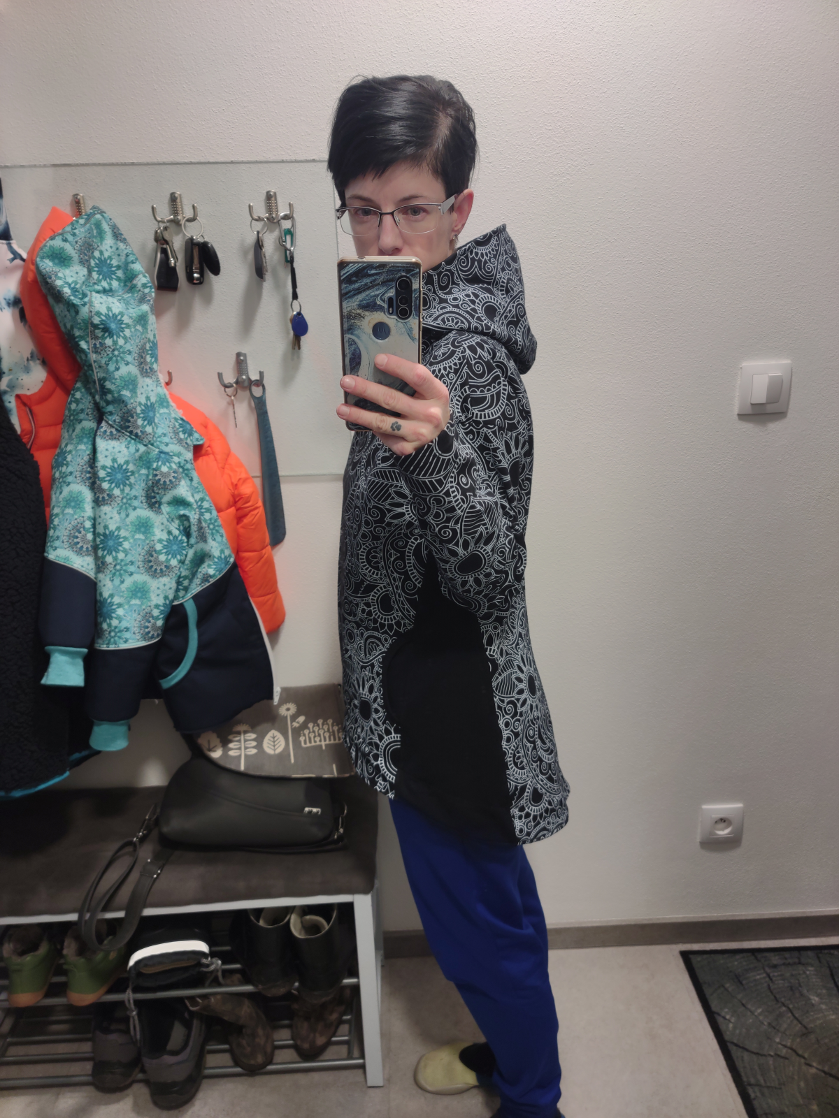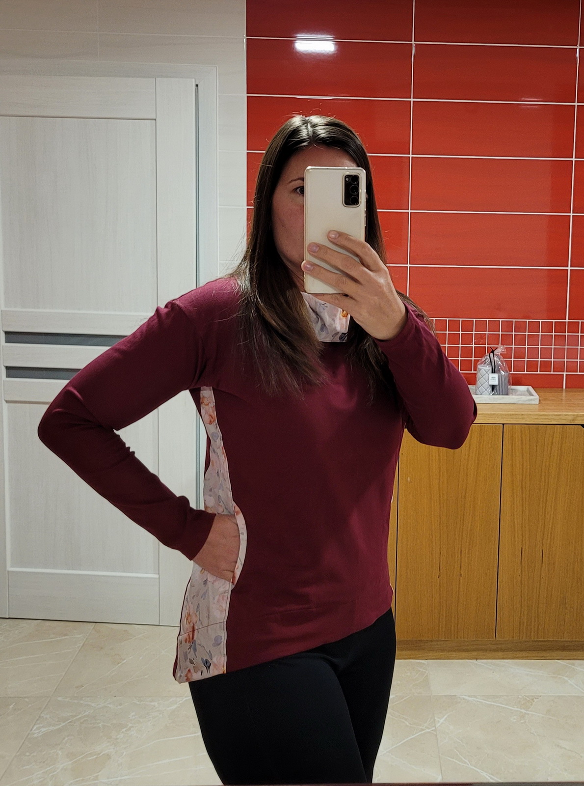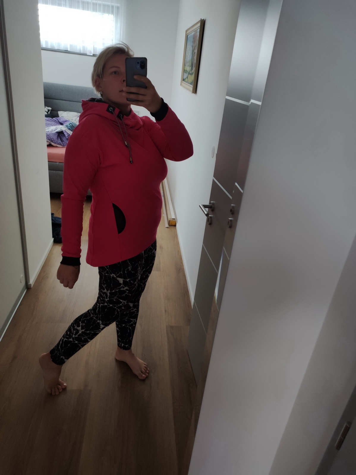 „Toto je moje třetí Marika, druhá mikina pro mne. Cítím se v ní úžasně a je příjemně teplá. Střih jsem si upravila - užší rukávy, manžety a užší průkrčník.“