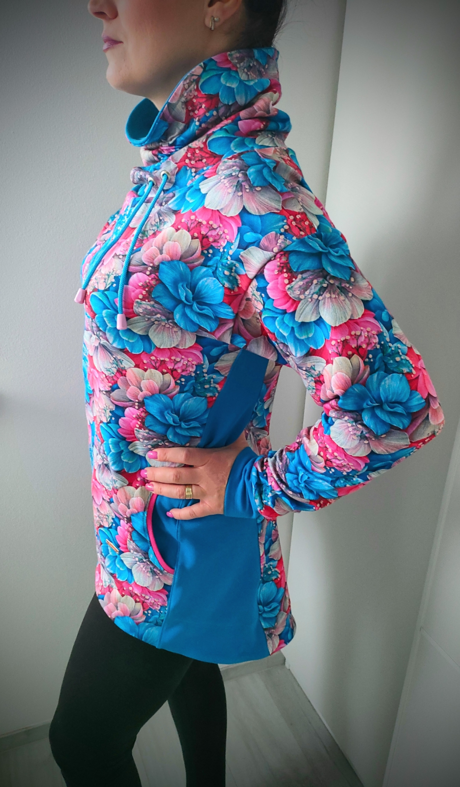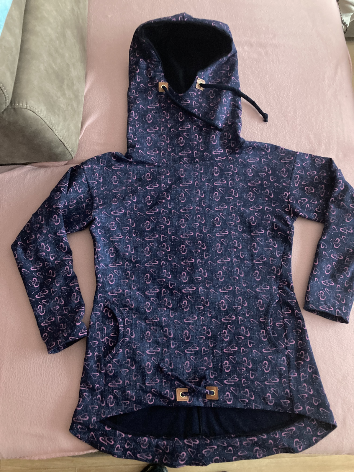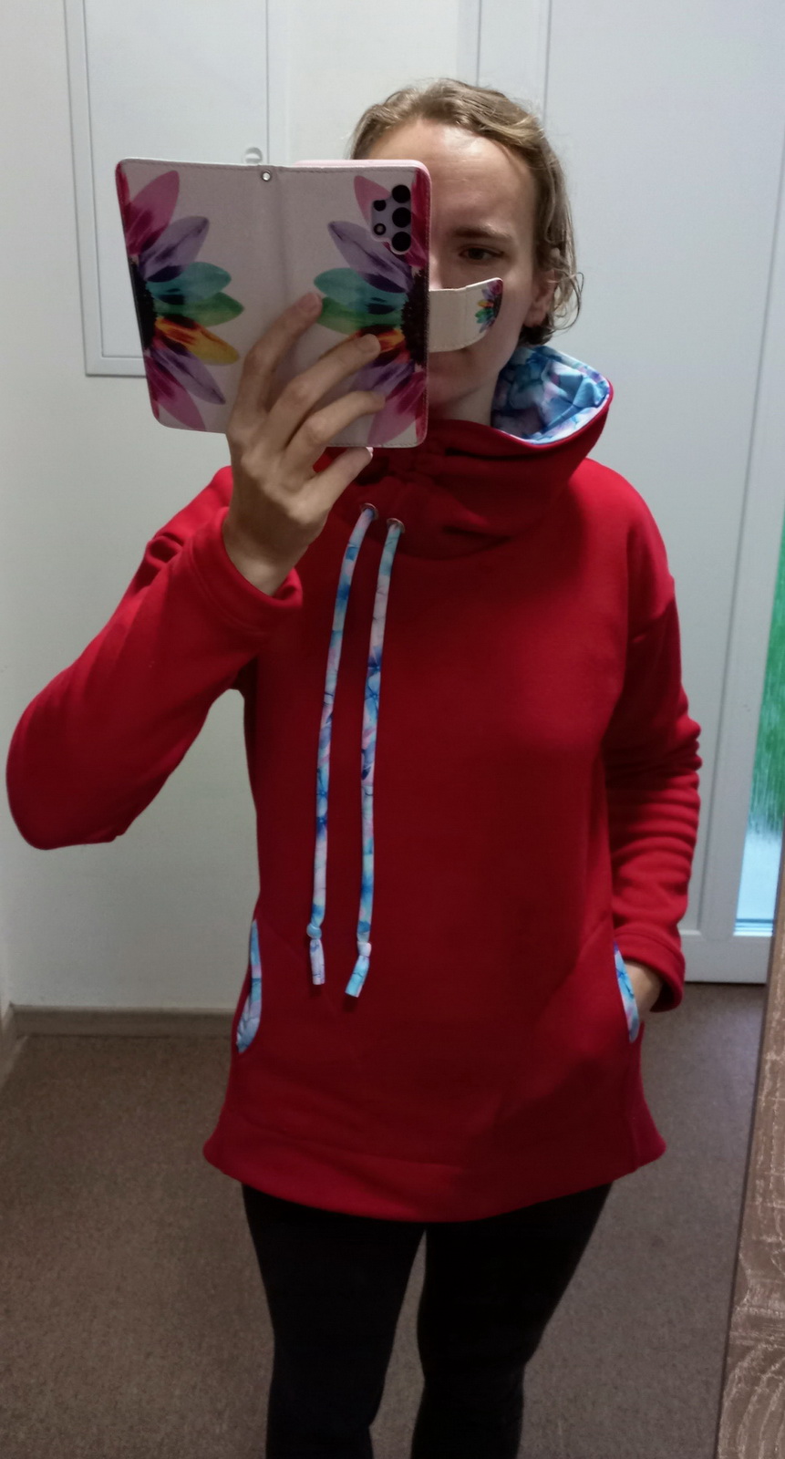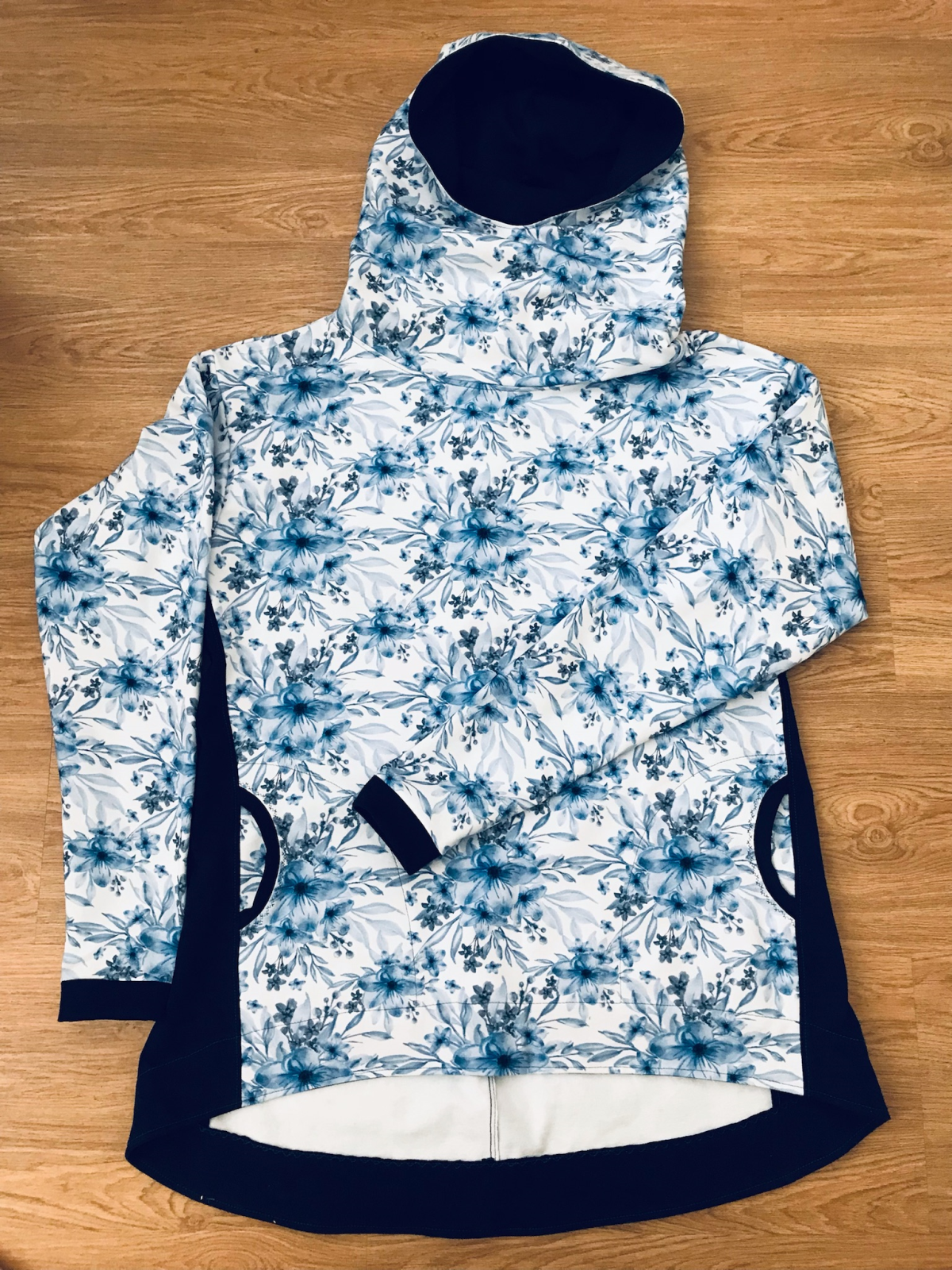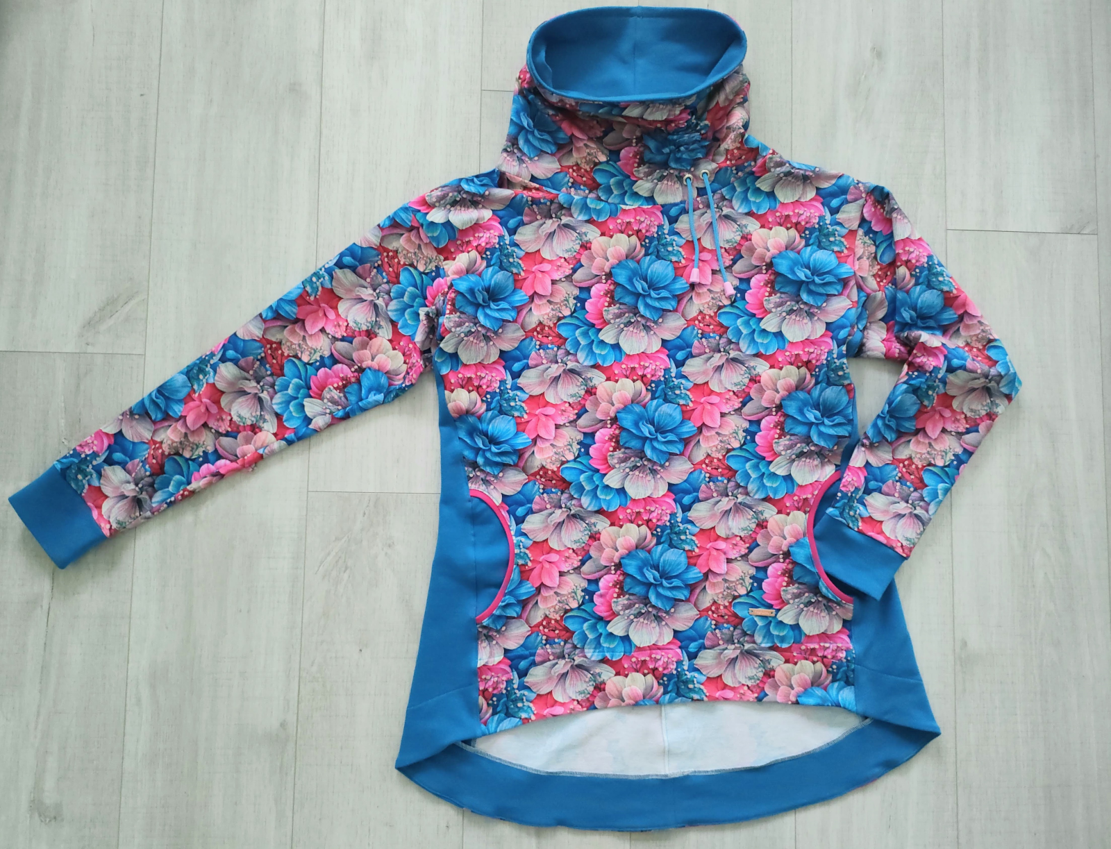 „Mikina se šila dobře. Má krásně velkou kapuci. Při mírách 158 Cm 90-73-90 bych příště zvolila menší velikost nebo zakončila spodek napletem. Necítím se v mikině úplně dobře.“