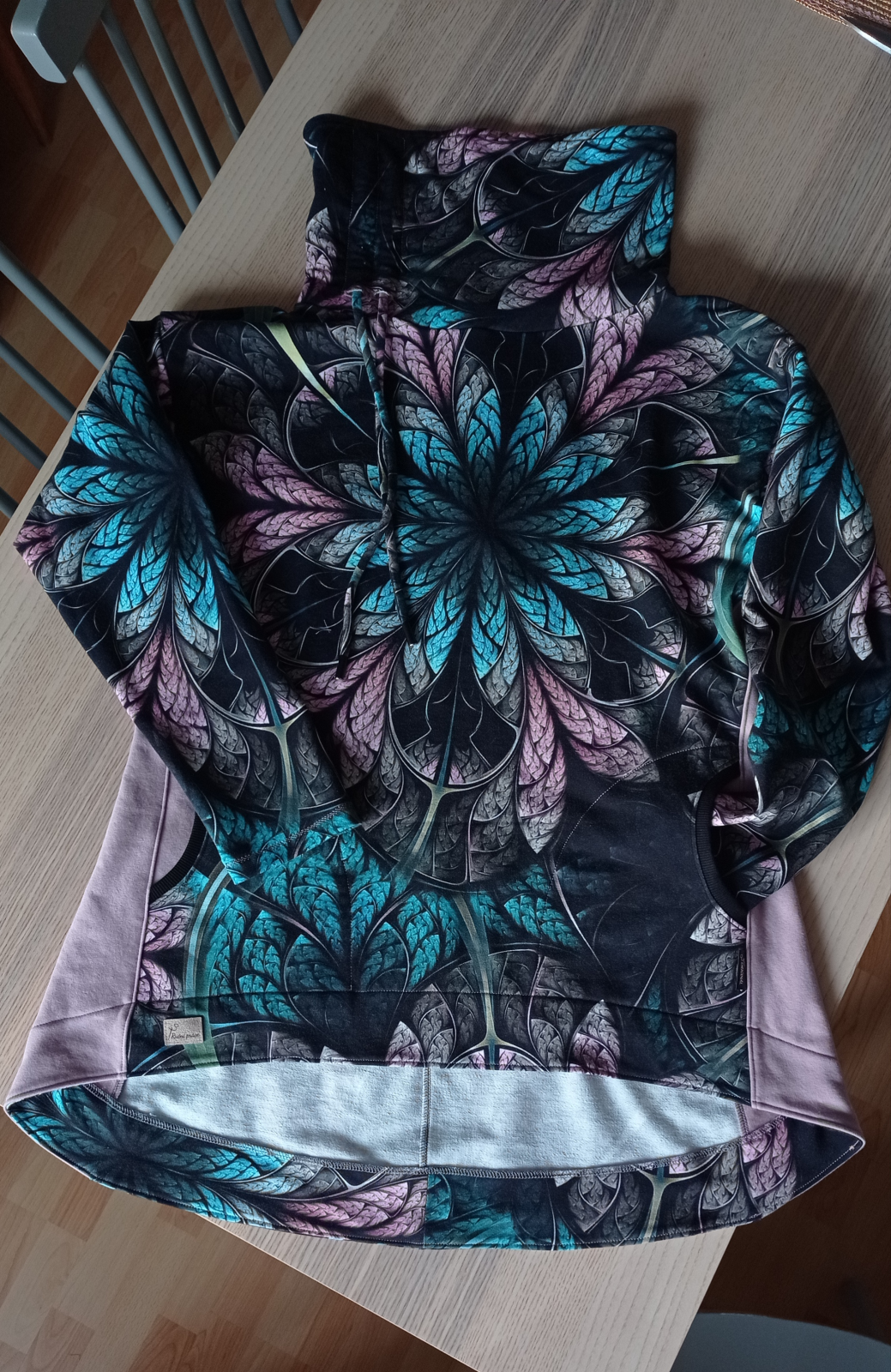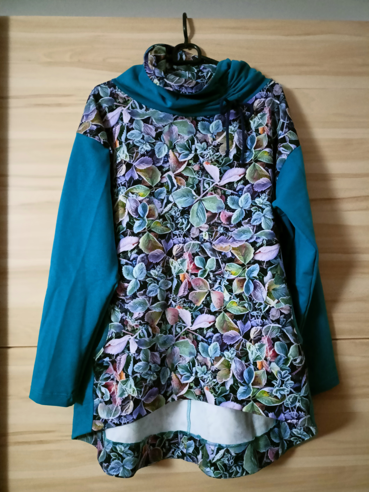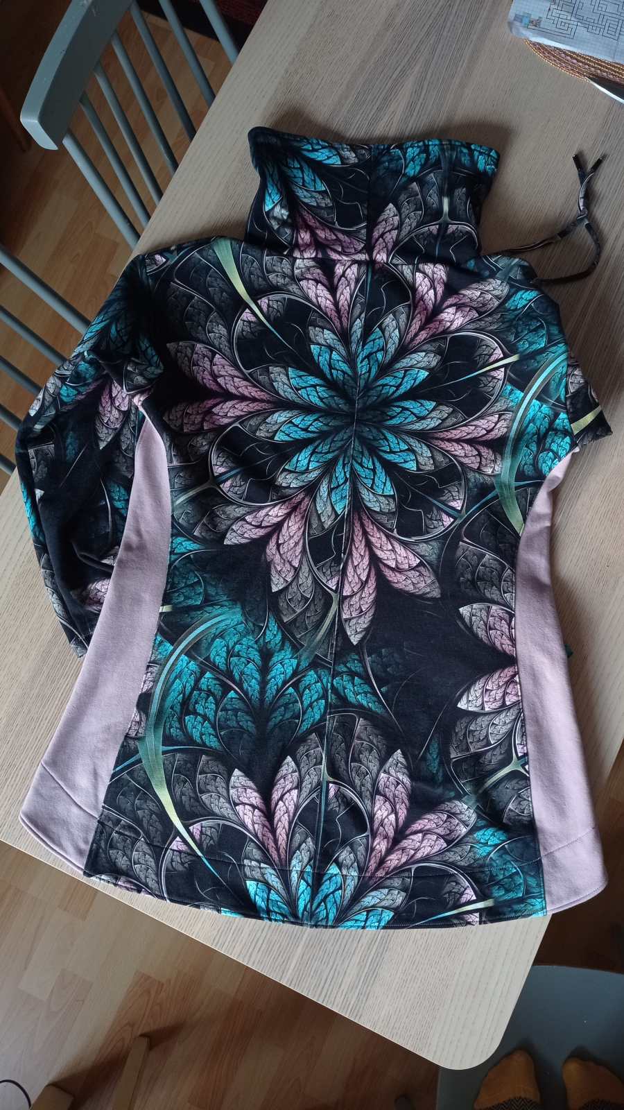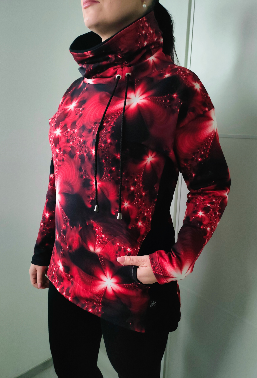 „Mikina se šila dobře. Má krásně velkou kapuci. Při mírách 158 Cm 90-73-90 bych příště zvolila menší velikost nebo zakončila spodek napletem. Necítím se v mikině úplně dobře.“