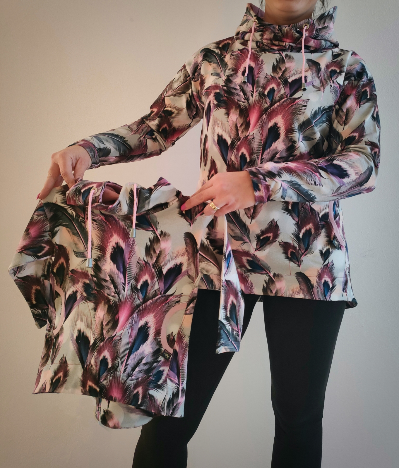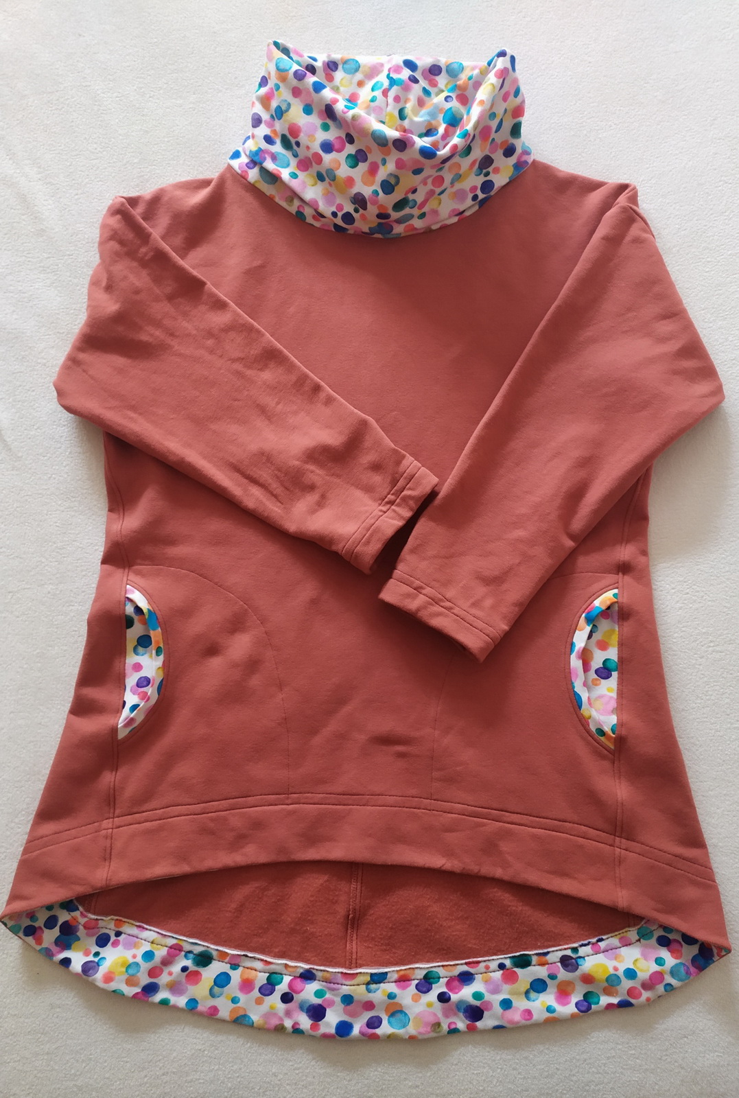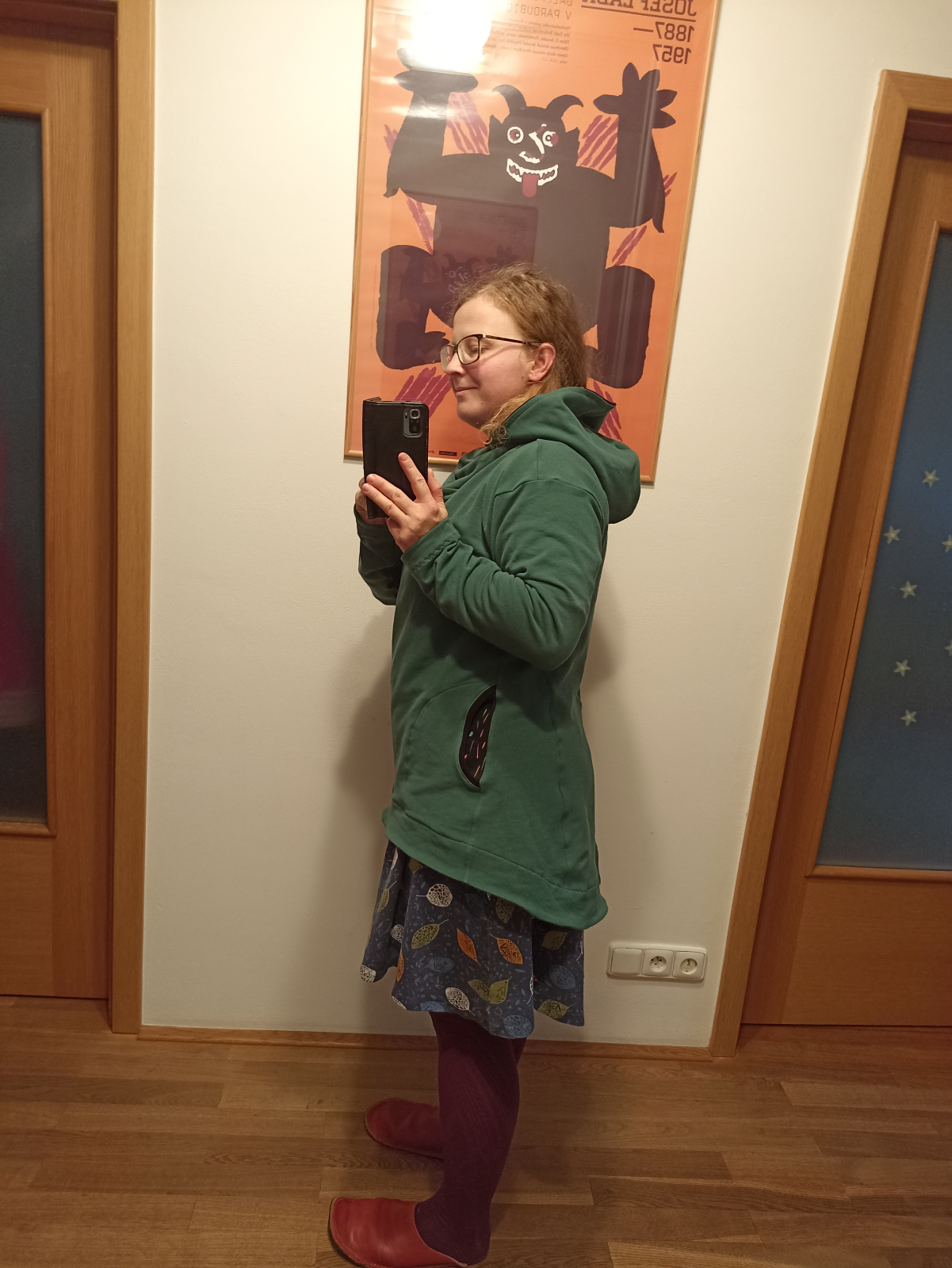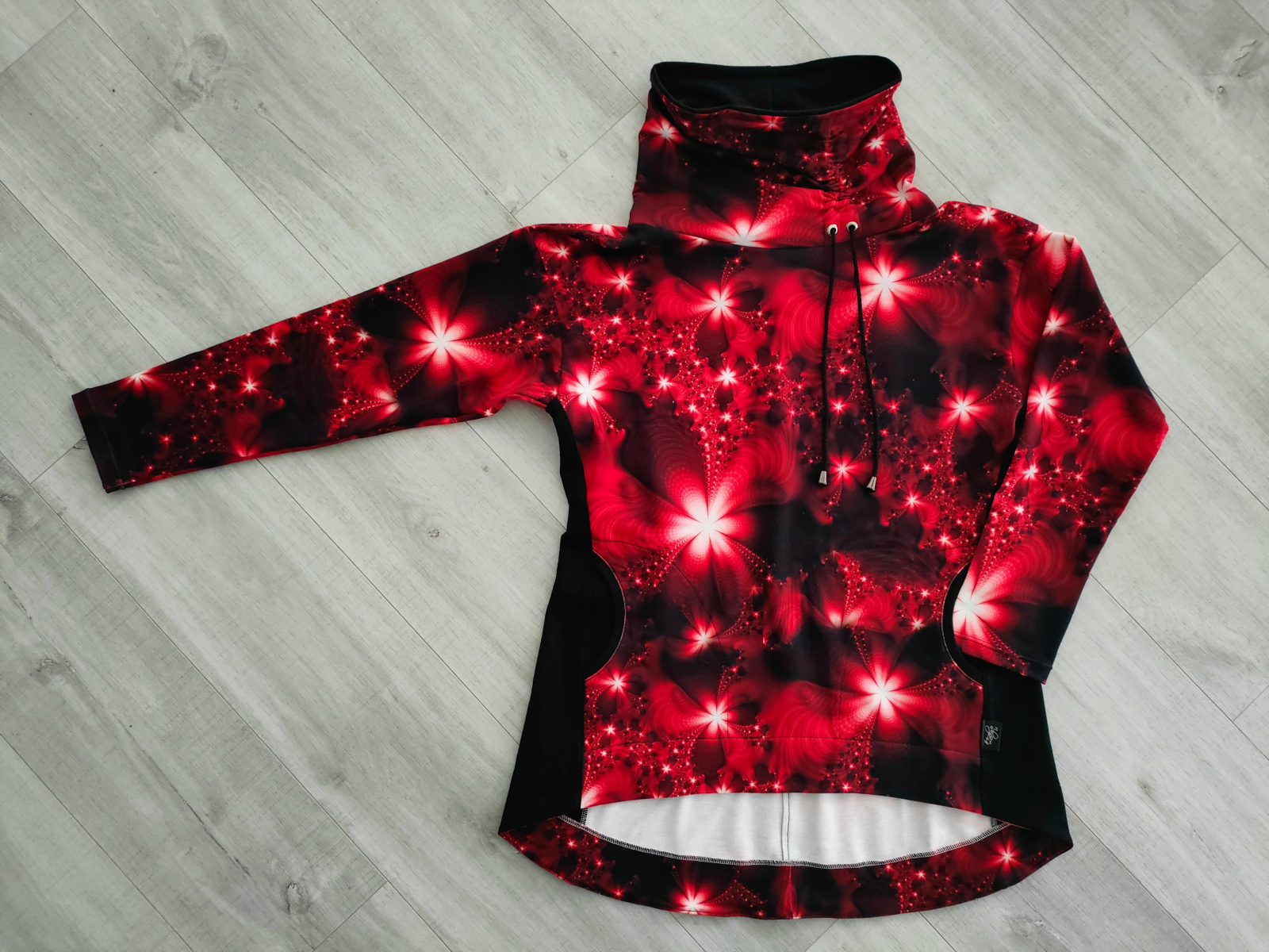 „Mikina se šila dobře. Má krásně velkou kapuci. Při mírách 158 Cm 90-73-90 bych příště zvolila menší velikost nebo zakončila spodek napletem. Necítím se v mikině úplně dobře.“