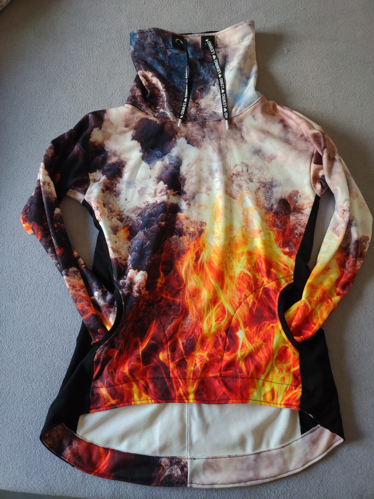Mikina je vytvořena bez kompromisu na pohodlí, nic neškrtí, všude je dostatek prostoru. Ale v tomto omezení na maximální pohodní je tak lichotivá, jak to jen jde.