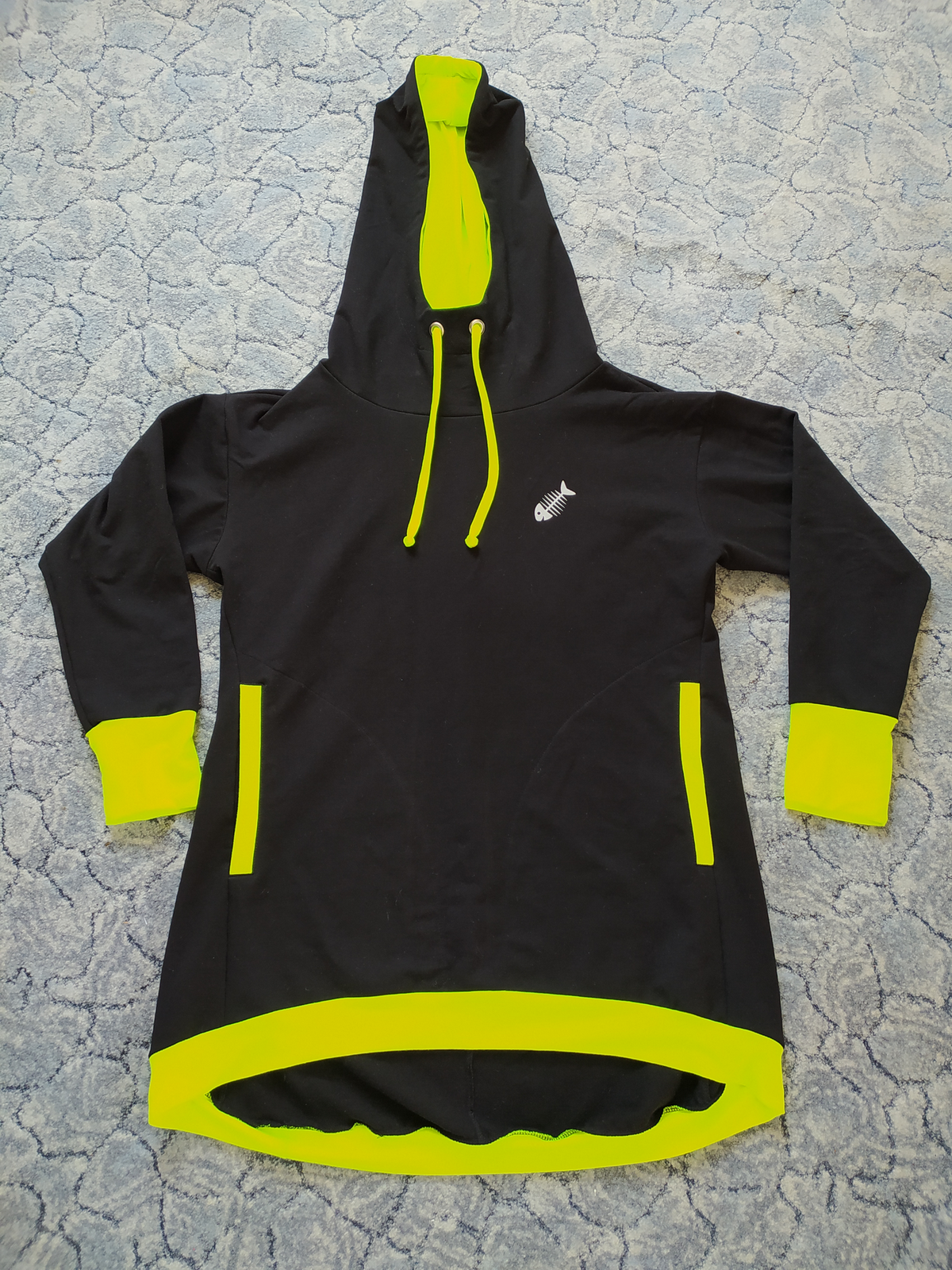 Dolní kraj je zpracován pomocí podsádky, takže vytváří čisté zakončení a zároveň podrží "zvonivý" tvar mikiny.