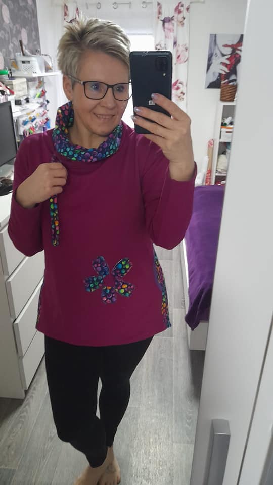 „Střih je opravdu skvělý jen jsem trochu zúžila výstřih cca o 1,5 cm z každé strany. Mikča se šila skvěle a video k ní je super.“
