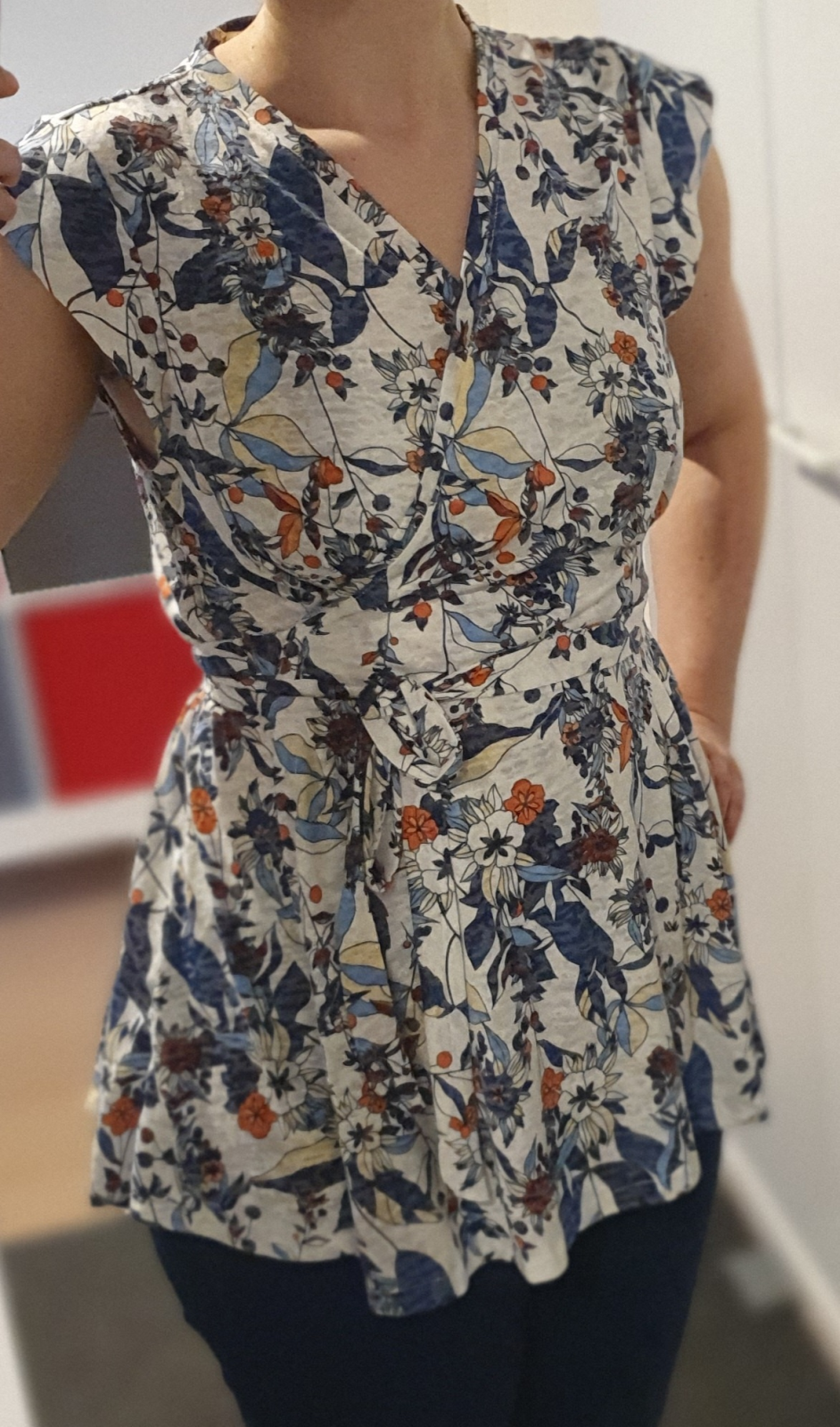 „Podle střihu a video návodu, se mi šilo opravdu dobře. Jenom lemovací proužek jsem našila bez natažení, takže jsem pak musela upravovat u krku, aby neodstával. Jinak super. :)“