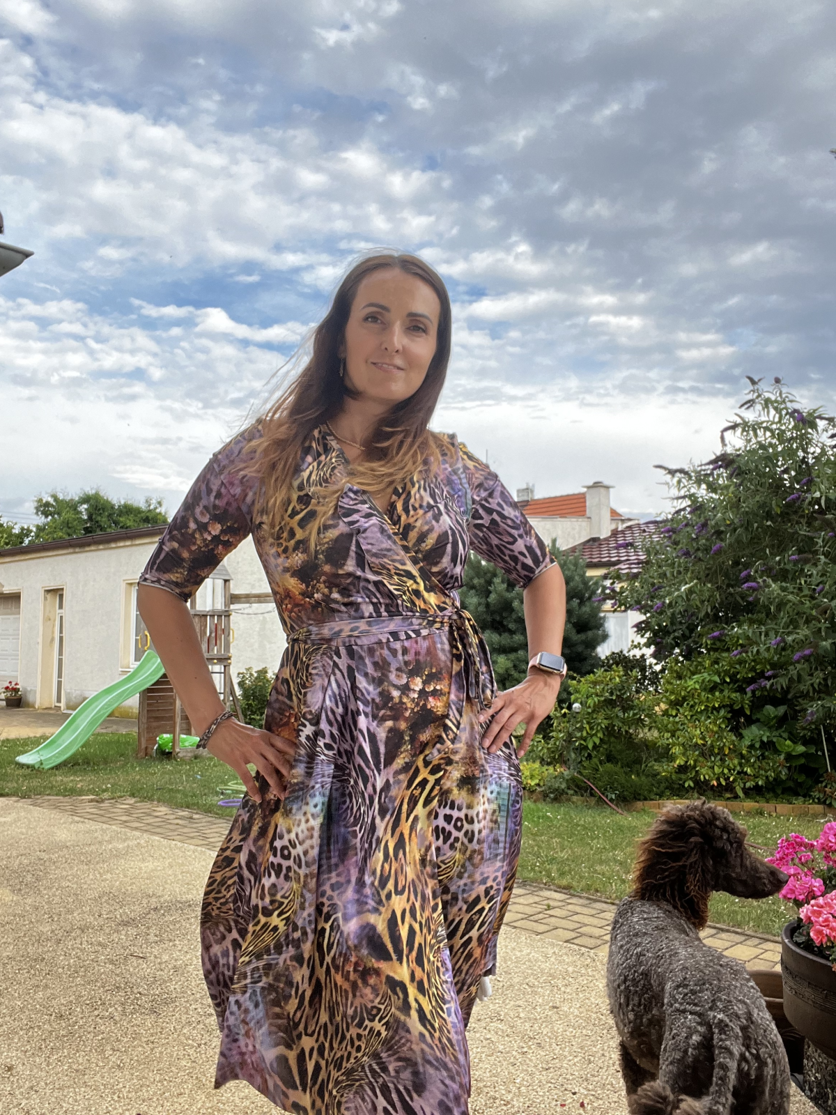 „Šaty jsou nádherné a cítím se v nich skvěle. Střih jsem si nakonfigurovala na míru, což je naprosto super výhoda a téměř jistota, že mi hned napoprvé skvěle sednou. Kdybych šila čistou 44,tak mi v pase budou dost těsné a naopak a čekalo by mě tak mnoho úprav. Díky podrobnému videonávodu jsem šití zvládla na jedničku,bez něj bych byla ztracená. Jinak je to trochu pracnější šicí projekt,ale stojí za to. Oproti puvodnimu střihu jsem si zkratila delku,ale ješte je alespon o 10-15 cm zkrátím lehce nad kolena.“