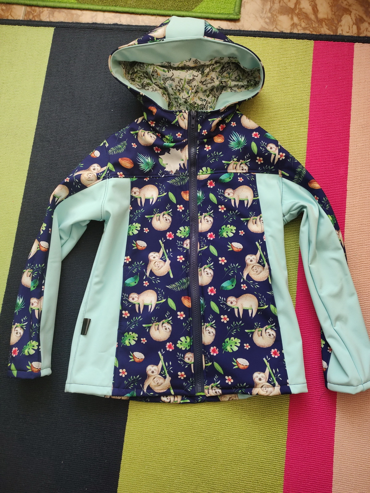 „Střihla jsem velikost 116 a dceři sedí úplně přesně. Bunda se mi šila pěkně. Přidala jsem tunel do kapuce pro provlečení šňůrky a následné stažení. A ještě podkryt zipu.“