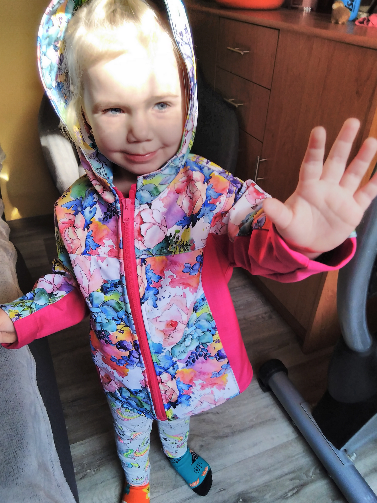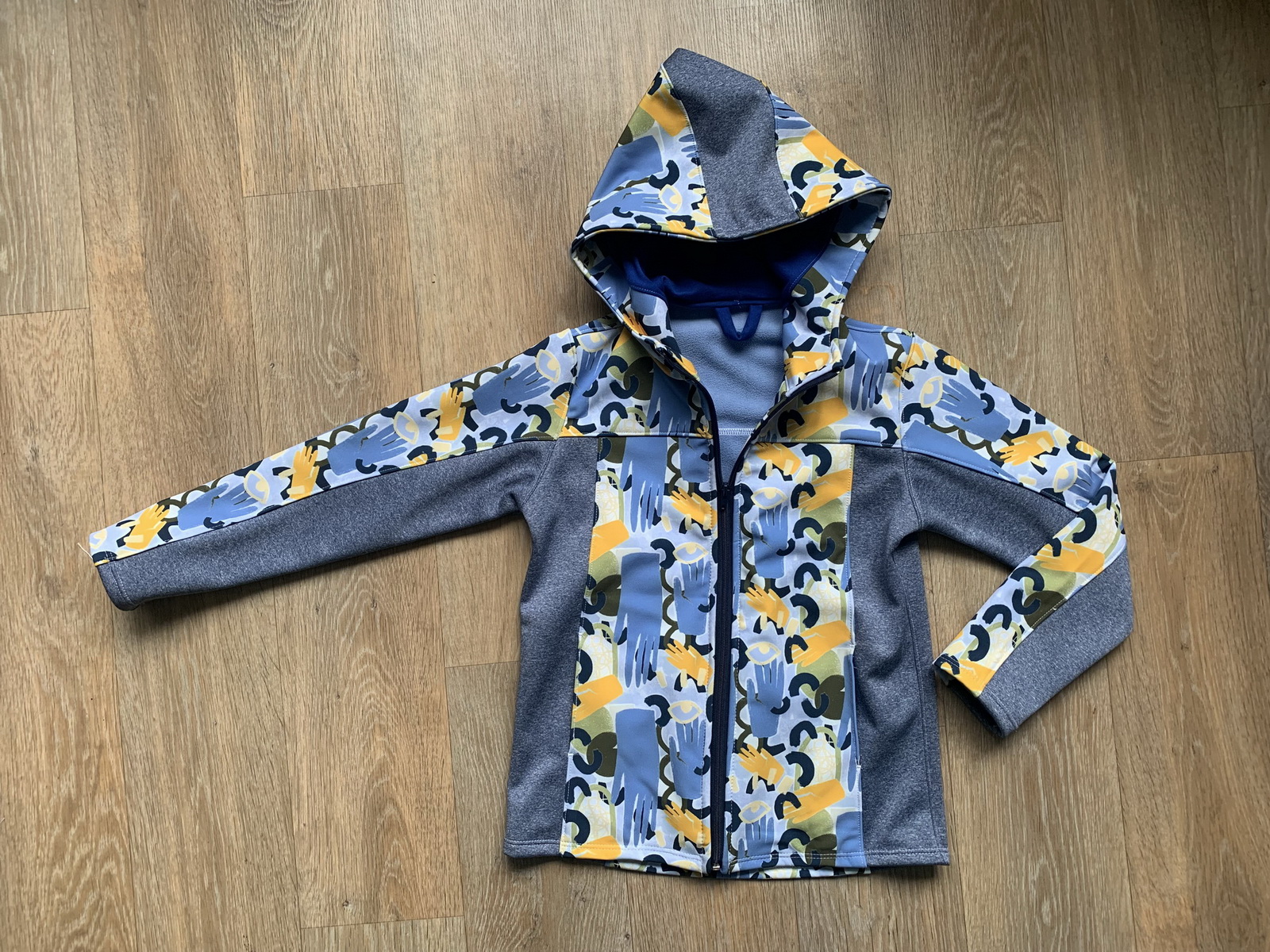 „První bunda pro mého malého rybáře je na světě. Mám ještě co zlepšovat, i tak z ní mám obrovskou radost. Podle videa se šilo parádně. Přidala jsem si ještě reflexní paspulku pro zvýšení bezpečnosti našeho pokladu.“
