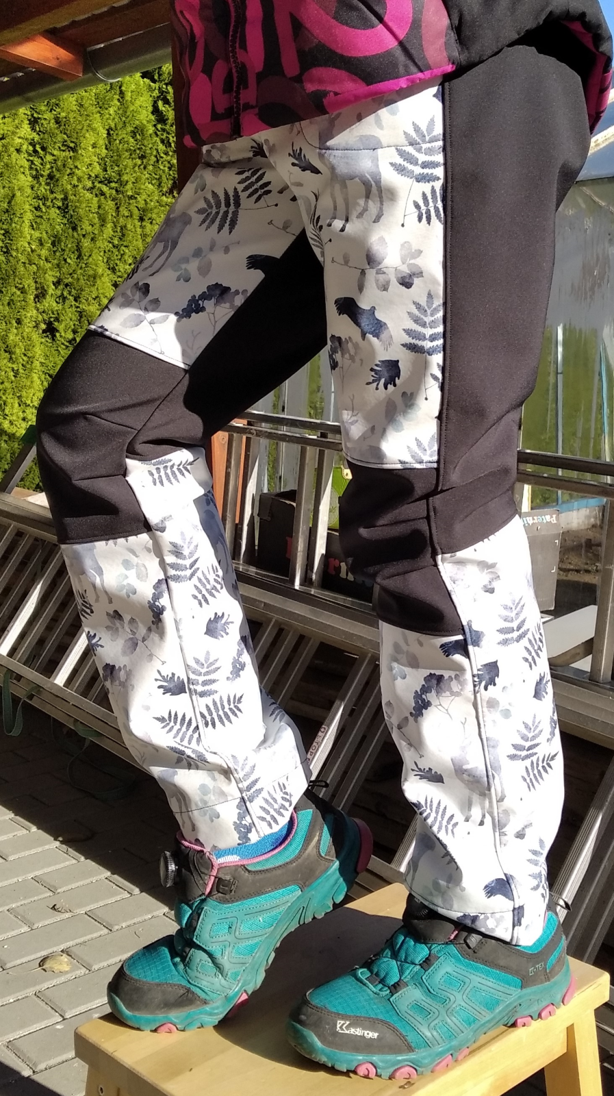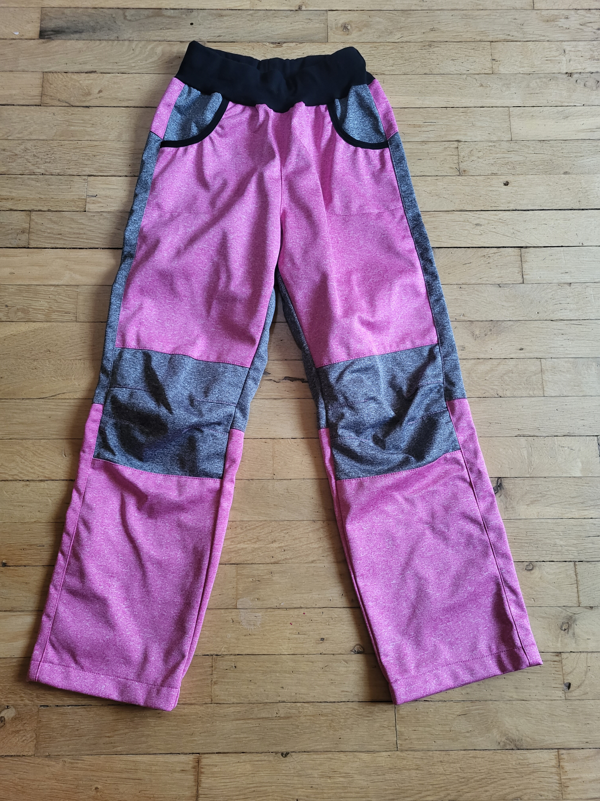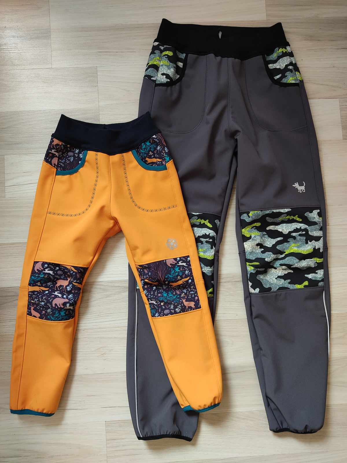 Prďácké kalhoty pro kluky i holky. Střih je konstruován primárně pro softshell, proto tento materiál jsou kalhoty ideálně široké.