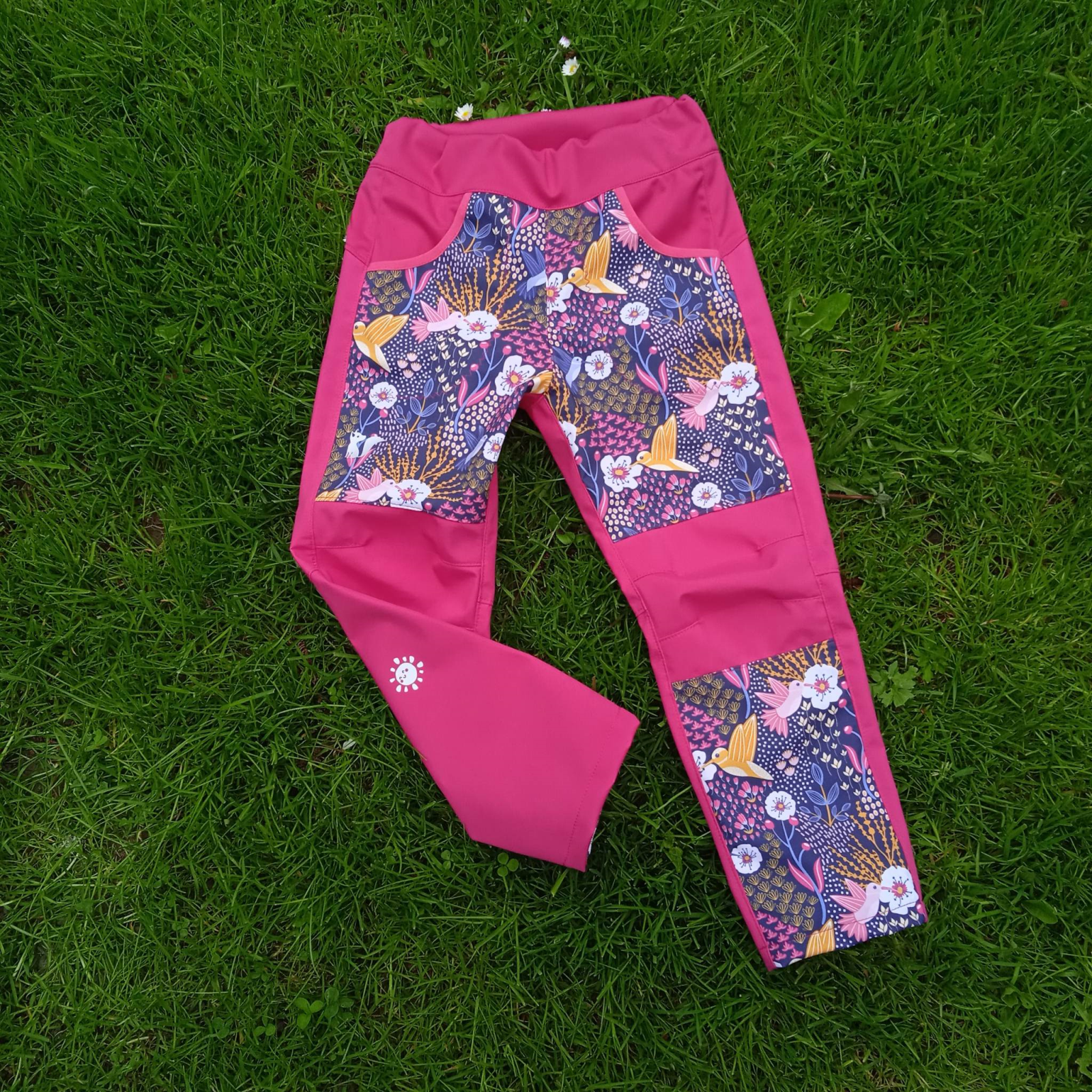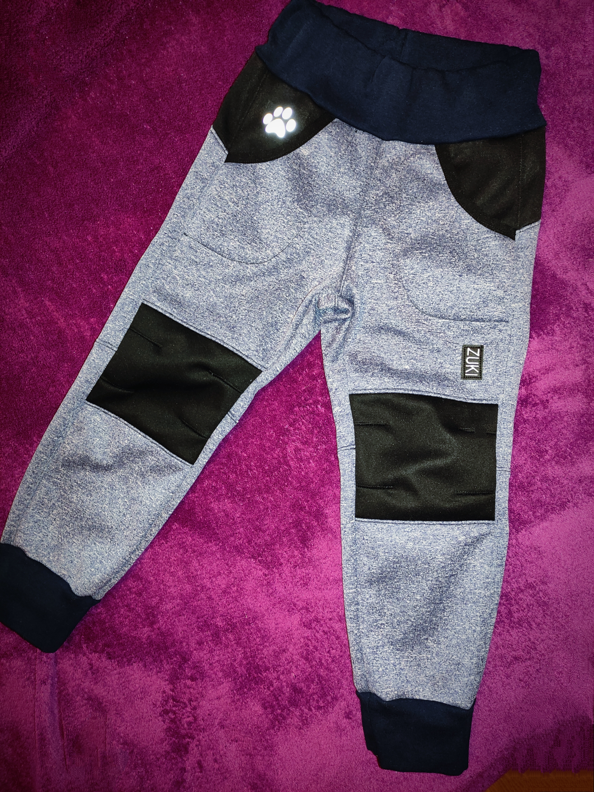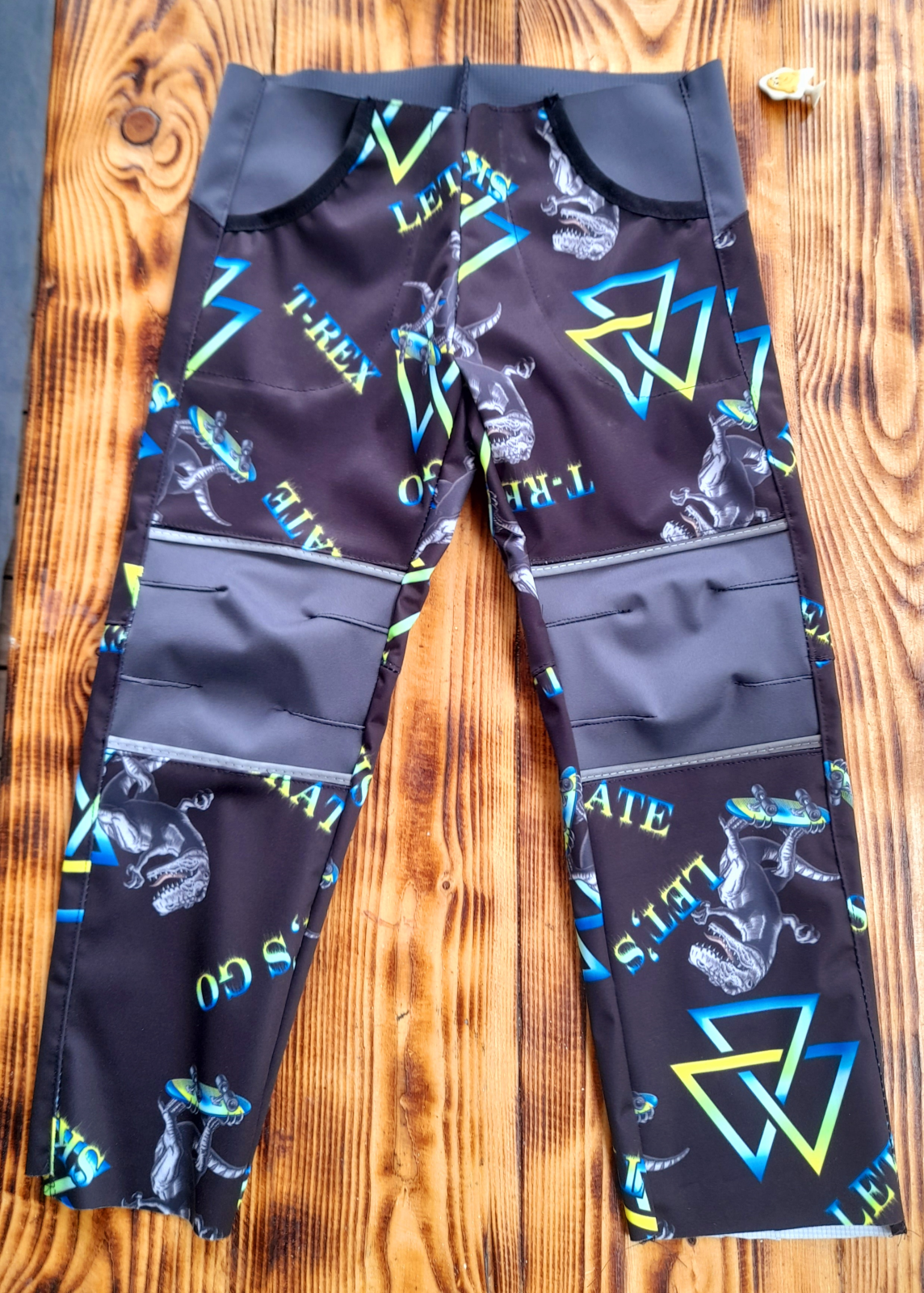 Prďácké kalhoty pro kluky i holky. Střih je konstruován primárně pro softshell, proto tento materiál jsou kalhoty ideálně široké.