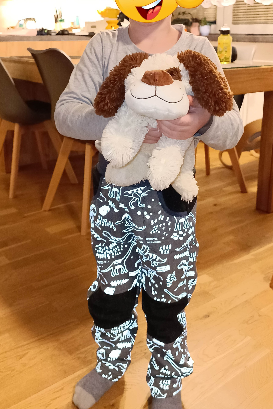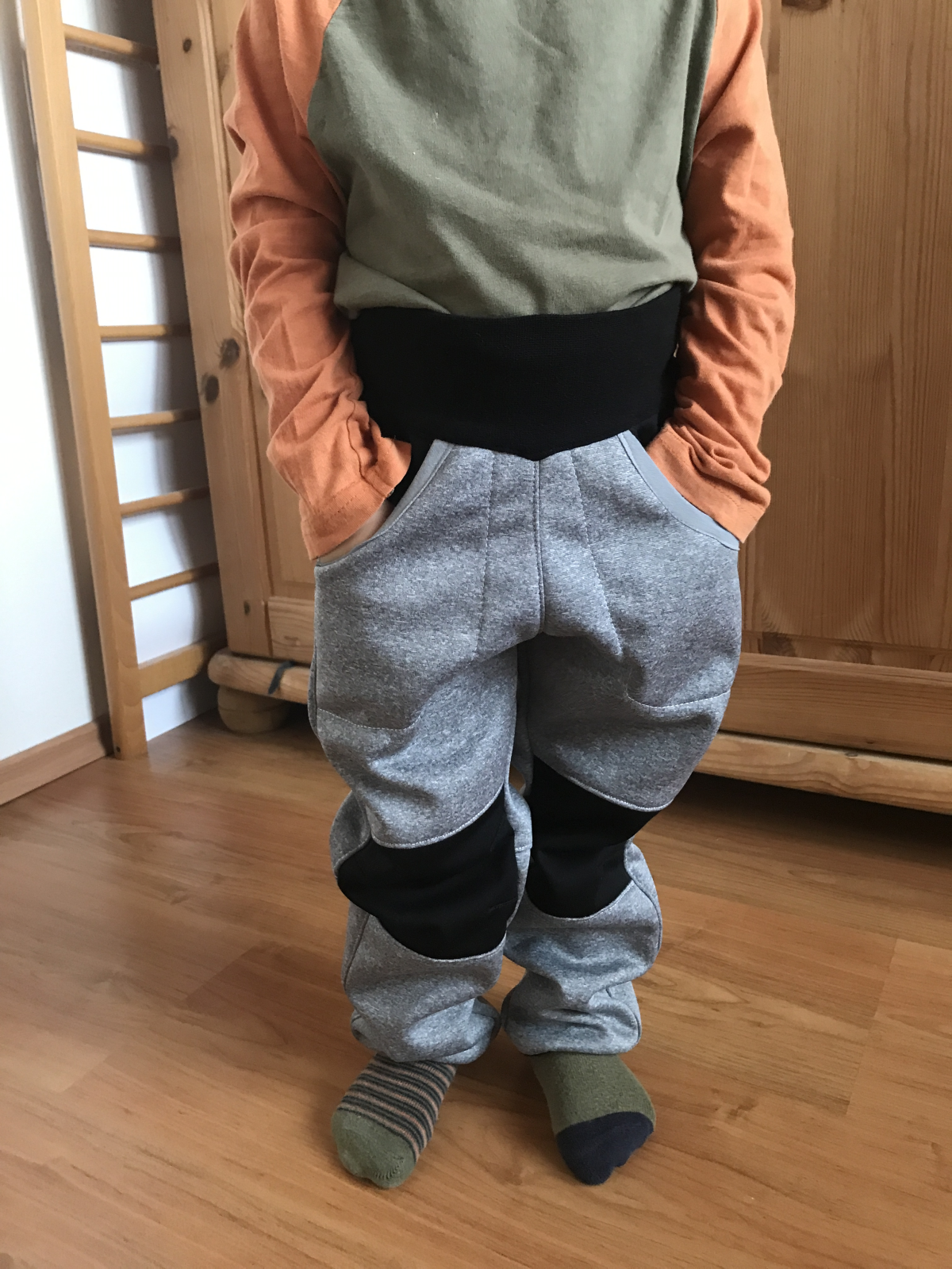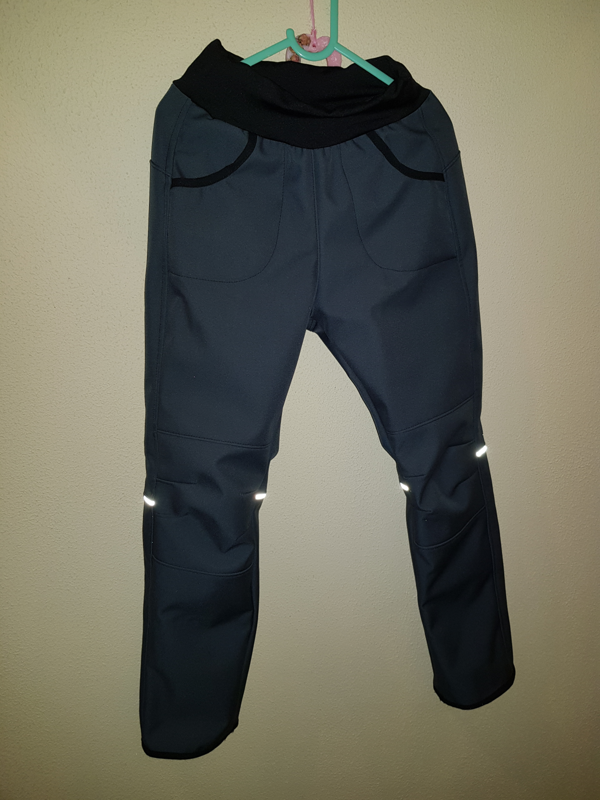 „Střih velmi hezky sedí - kalhoty, byť jsou sportovního střihu, vypadají velmi elegantně. Syn je má do lesní školky, ale může si je vzít klidně i do města (nepůsobí objemně). Ve školce se osvědčily - jsou velmi pohodlné díky tvarování kolen a členění, neomezují v pohybu. Super je možnost přidání reflexní paspulky do členících švů nebo různé kombinování barev a vzorů. Největší výhodou je možnost úprav kalhot - 1. kalhoty jsem šila širší o 5 cm kvůli podvlékání, s náplety v nohavicích. Tyto jsou bez dodatečných úprav, okraje kalhot jsou pouze zahnuty. Starší dcera má ode mě slíbené také tyto kalhoty.“