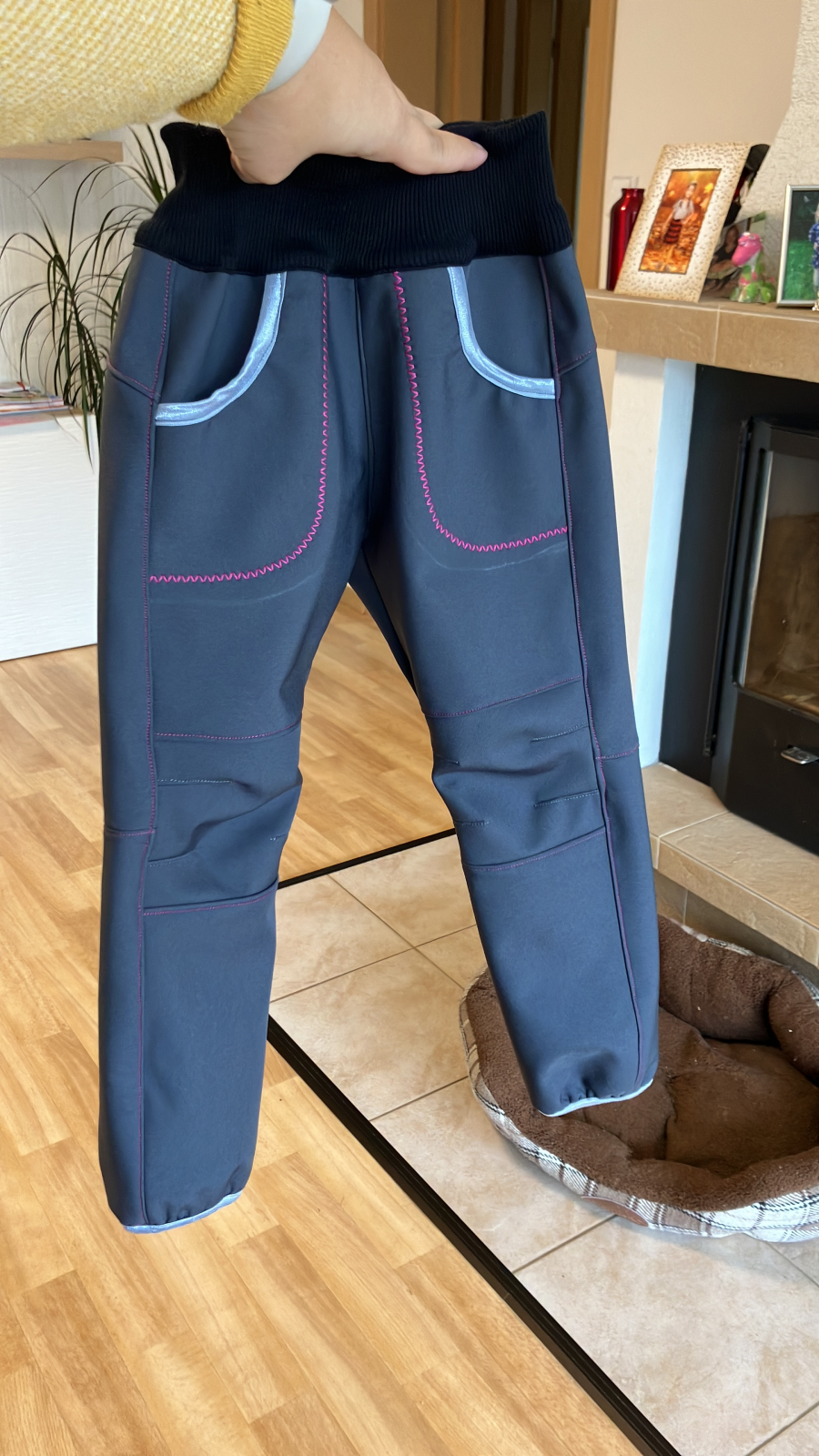 „Irenko moc děkuji za návod, podrobné vysvětlení, šila jsem softshellové kalhoty poprvé v životě - inspirace jsou naše dvě vnoučátka, děkuji za skvělý střih i návod. Moc mi Vaše video pomohlo. Kapsy a dole zalemování jsem si musela pomocně přistehovat, jinak bych to pěkně neušila. Reflexní prvky jsem nažehlila na zadní nohavici. Dcera chtěla pro děti jednobarevnou kombinaci a barevné vložení jen nahoře. Látky jsme vybíraly společně.“