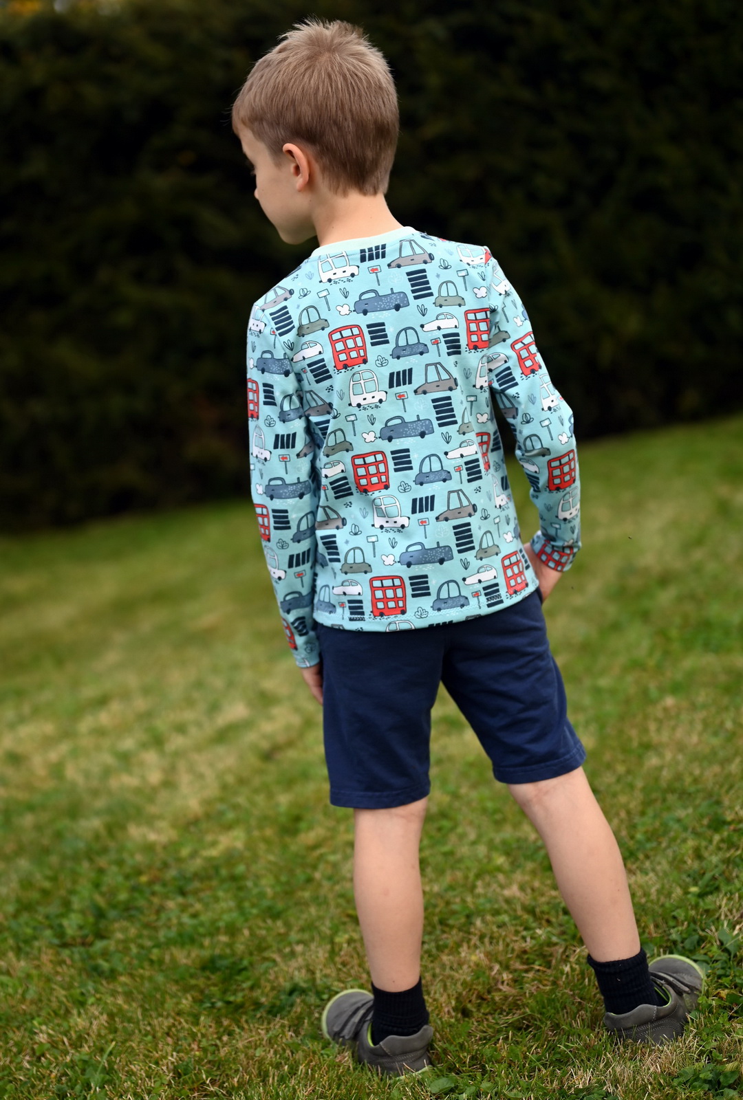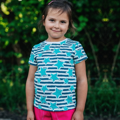 Vytvořili jsme pro Vás opravdu živý střih. Můžete zůstat v konfekci, kde si stáhnete tričko v kterékoliv konfekční velikosti s kratkým nebo dlouhým rukávem. Nebo můžete pouze upravit délku rukávu, délku trička. Či použít pro šířku trička 110, délku 116.