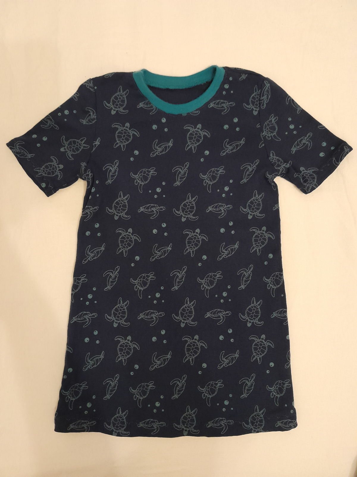 úplet jednolící, zdroj: místní galanterie, látka je dostupná i na eshopech, je krásná nová - ale, už jsem z ní šila a praním velmi vybledne a má chloupky, žmolkovatí :( vel. 110 prodloužená na 134
