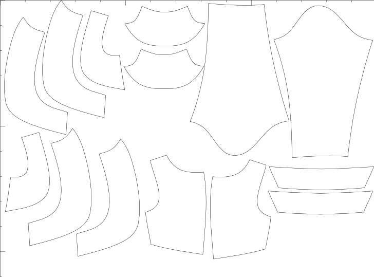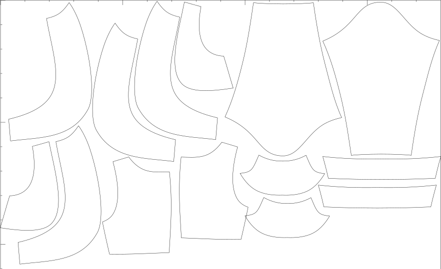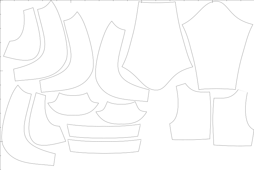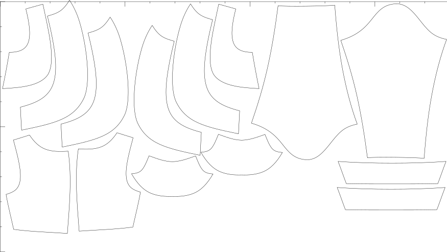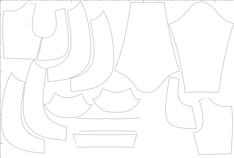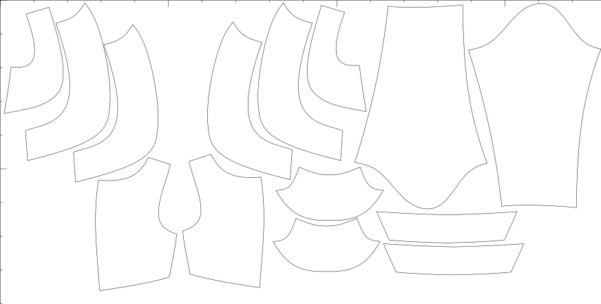 V ceně jsou konfekční velikosti i libovolné množství konfigurací na míru, export pro A4, A0, střih s přídavky i bez, export pro projekt.