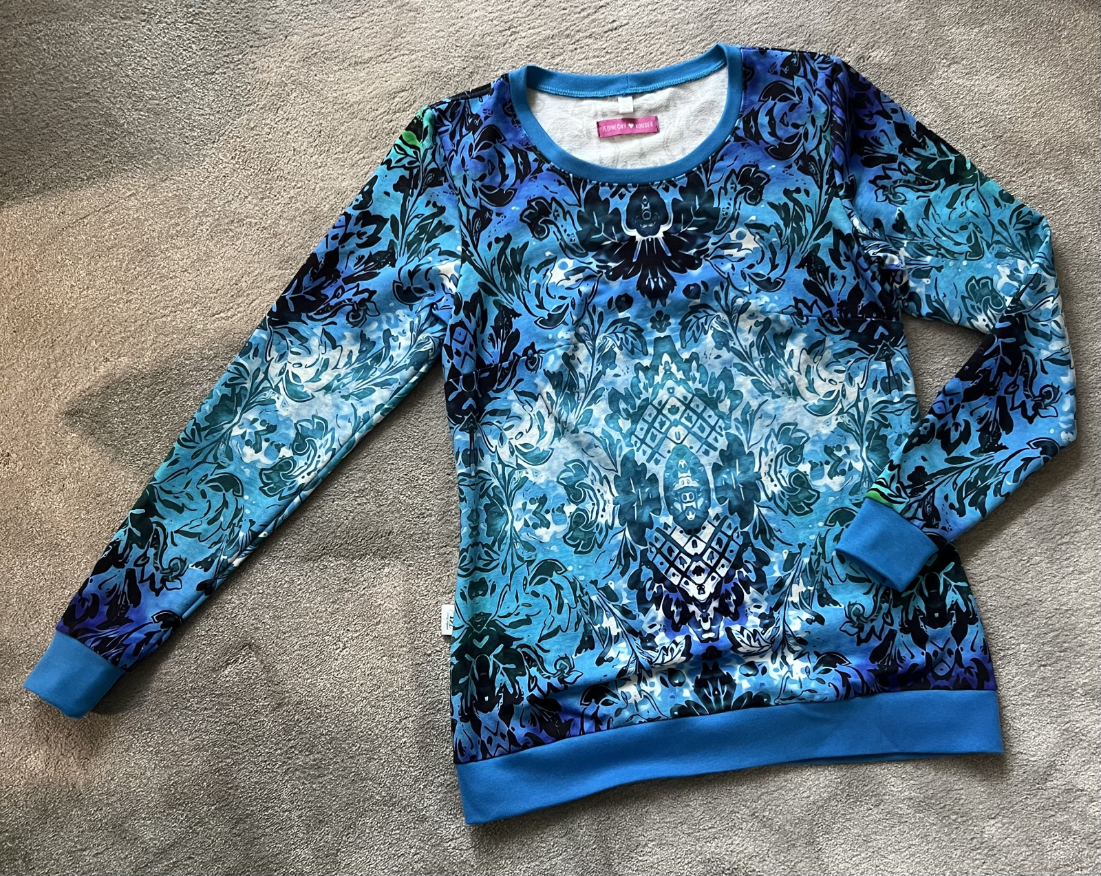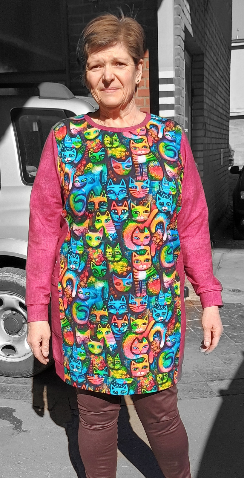 „Musela jsem ji zkusit hned jak ji Irenka představila. S videonávodem se mikina šila jedna radost. Střih jsem si nakonfigurovala hodně na tělo, a rozhodně si budu v konfiguraci hrát dále a zkoušet i další materiály :) je to super střih pro vzorované látky, jednoduchý a slušivý :)“