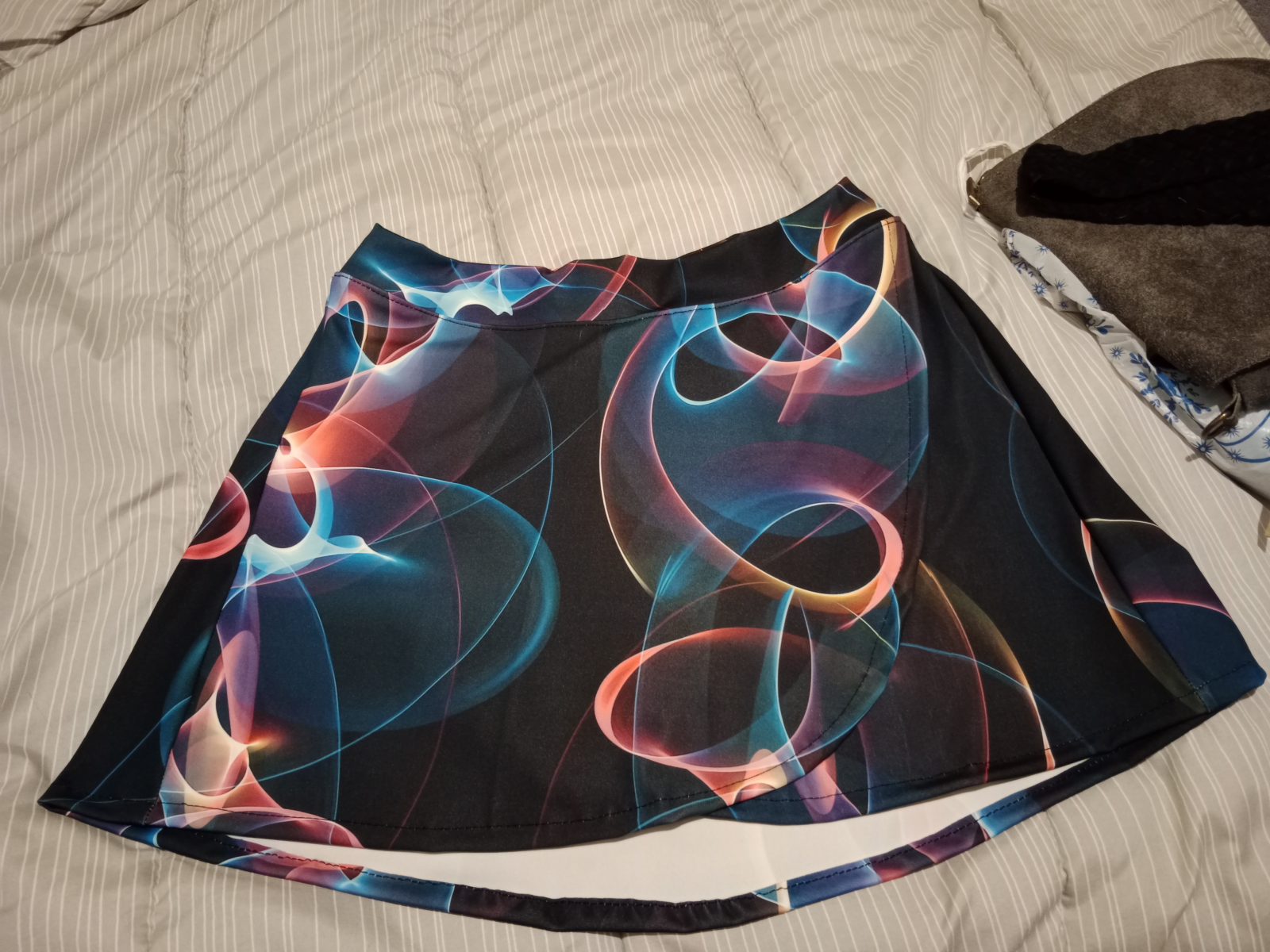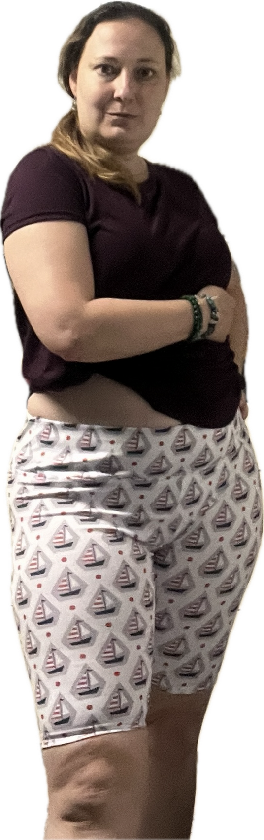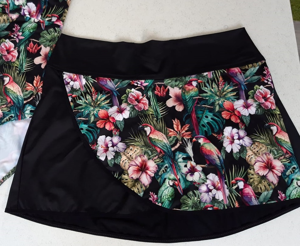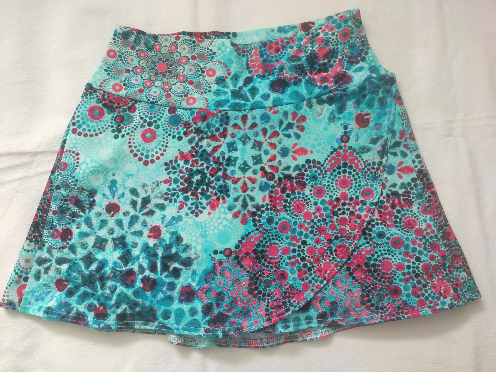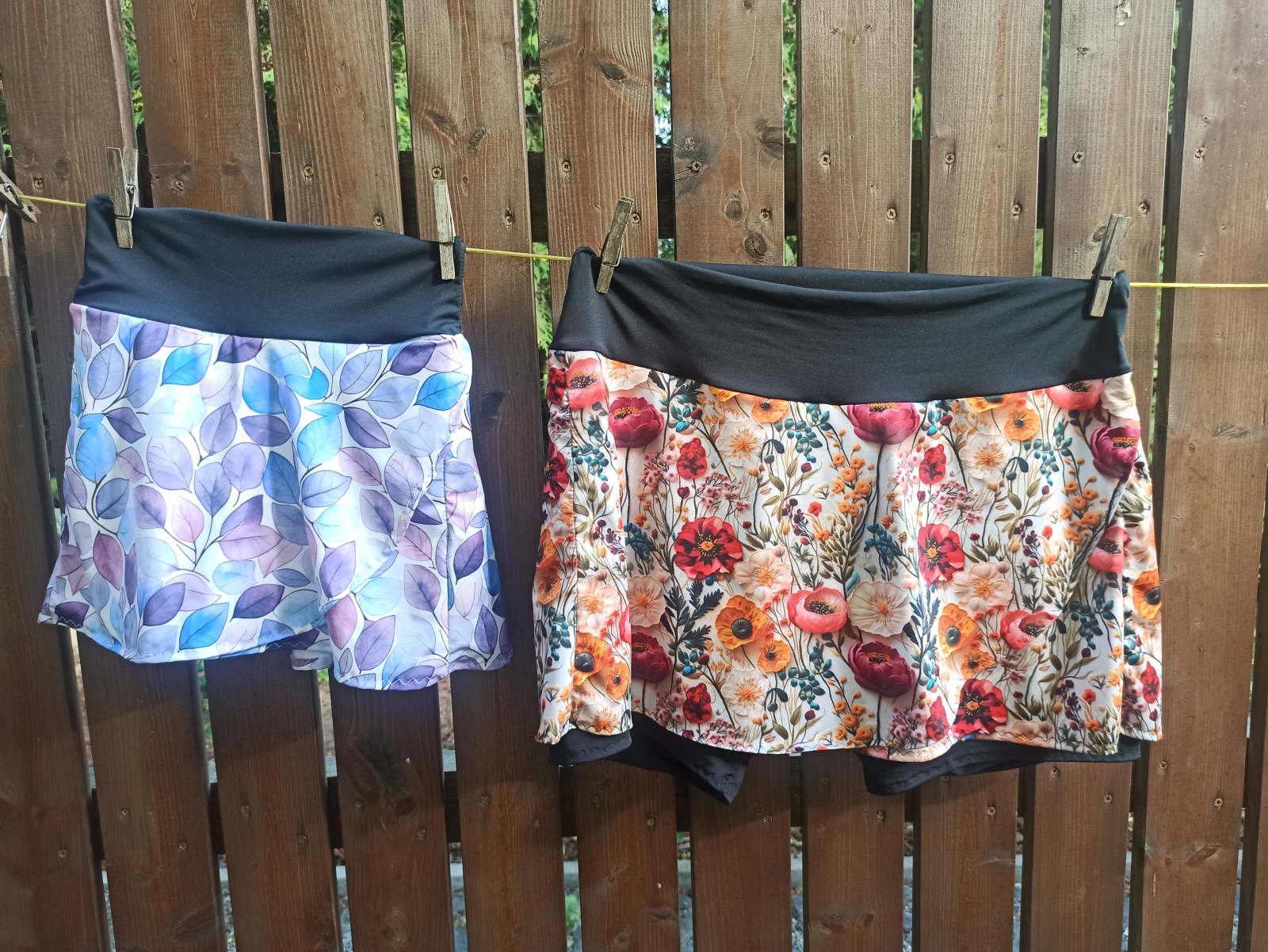 „Moje první ušité oblečení a jsem opravdu nadšená. Zvládla jsem ušít na starém šicím stroji po mamince, který zvládl bez problémů elastický šev i šití dvojjehlou, ze které jsem fascinovaná a okouzlená zároveň. Fotonávod naprosto dokonalý, bez problému jsem ušila, jen jsem měla pásek o něco užší než sukýnku a kráťásky. Tak nevím, jestli je to záměr nebo jsem si chybně přenesla na látku. Byla jsem překvapená, že mi opravdu stačí velikost 36 (konfekci si kupuji spíše 38,někdy i větší).“