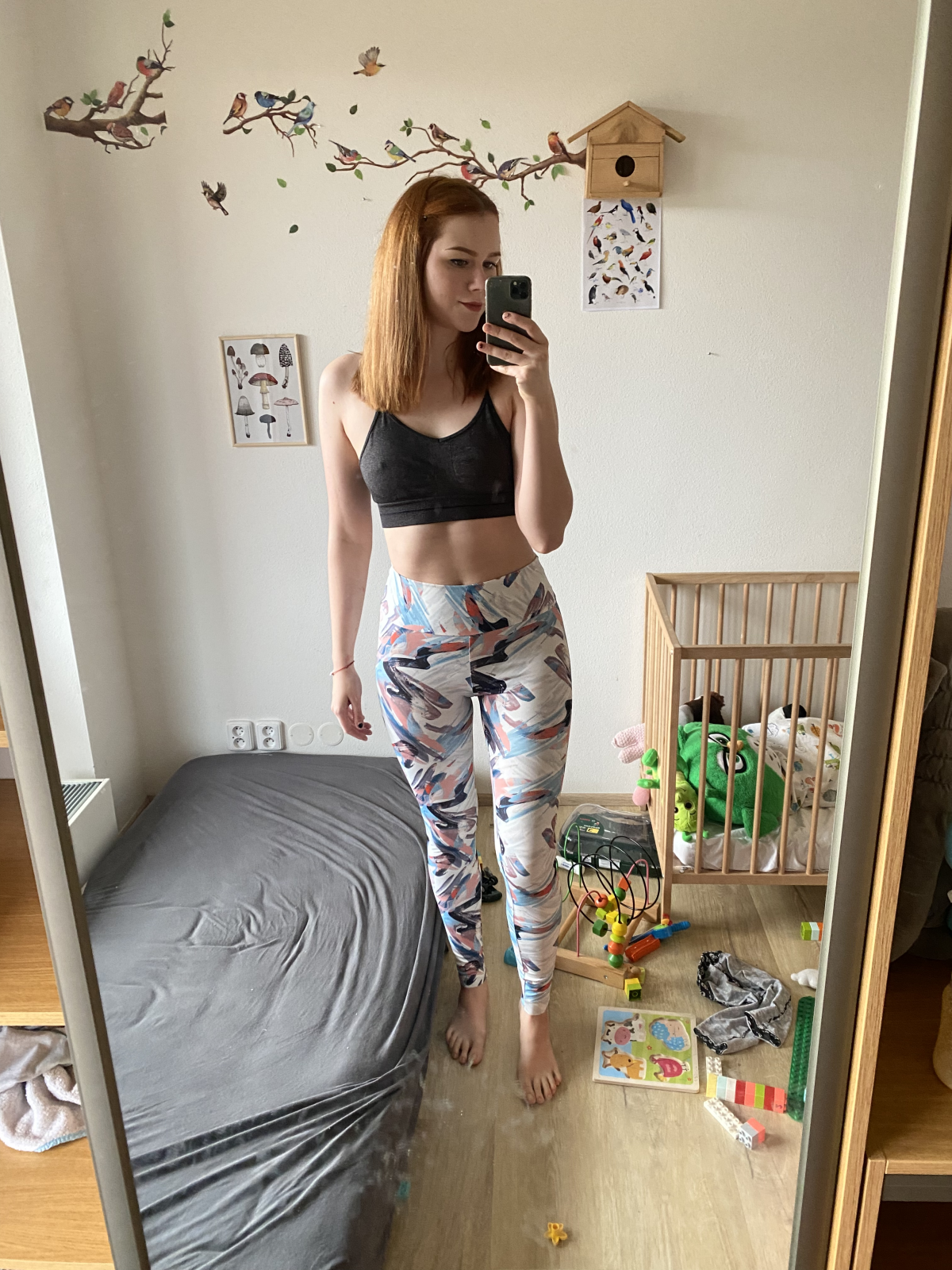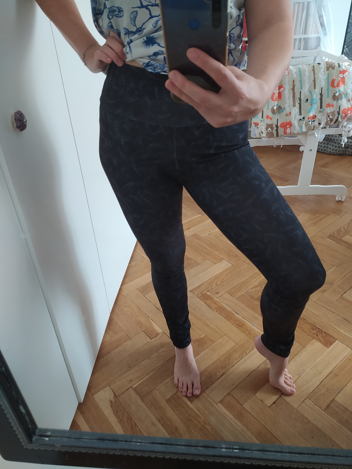 „Legíny sedí perfektně, přizpůsobila jsem si pas pro těhotenské bříško, v počátcích těhotenství byly příjemné a nikde mě netlačily, zároveň v průběhu dělaly příjemnou oporu pro rostoucí bříško (vejdu se i teď v posledním měsíci :-)). Po porodu spoléhám na lehce stahovací efekt :-))“