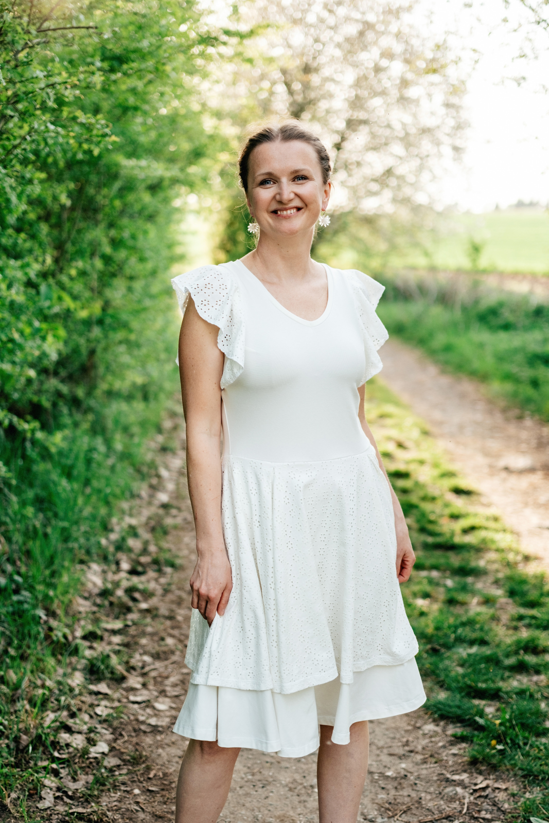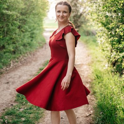 „Krásný střih se srozumitelným návodem. V šatech se i v mé velikosti cítím jako křehká víla. Šila jsem bez skladů, protože už v Pavlín jsem se v nich necítila a sukni přešila. Určitě ušiji další. Děkuji za další úžasný střih.“