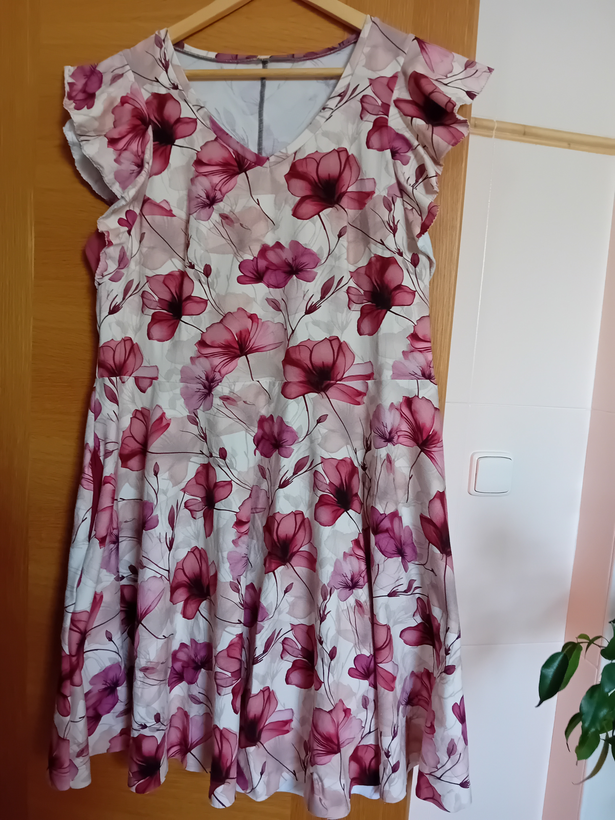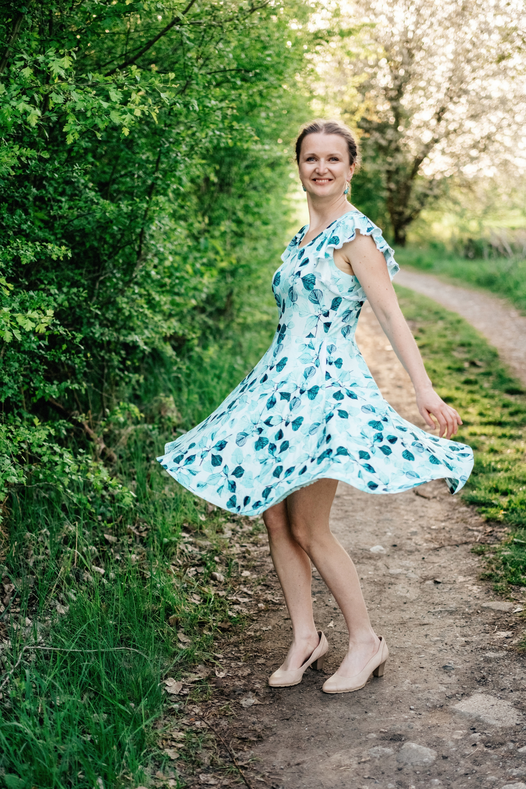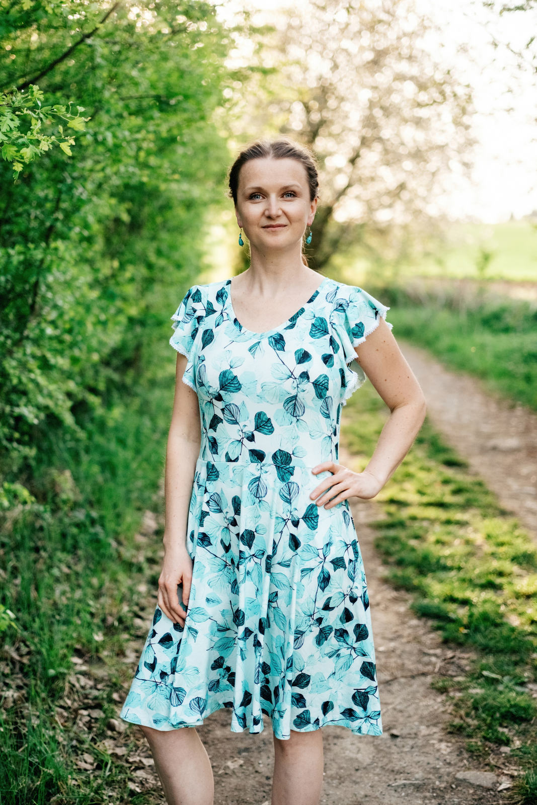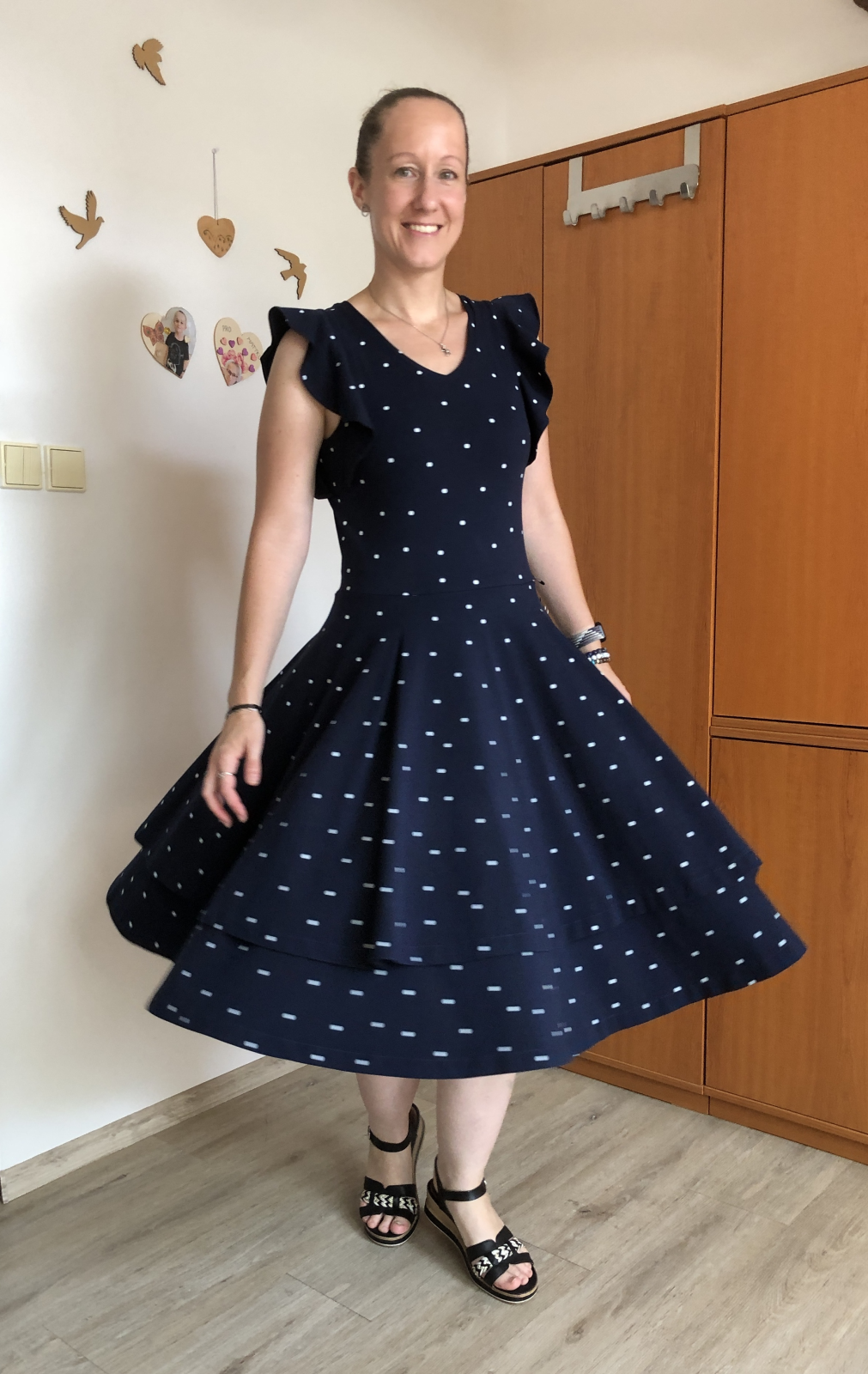„Střih je super, šaty sedí moc pěkně a jsou příjemné na nošení. Provedení rukávů je zajímavé. Přestože jsem šila podle videa, první rukáv jsem párala třikrát. 😄