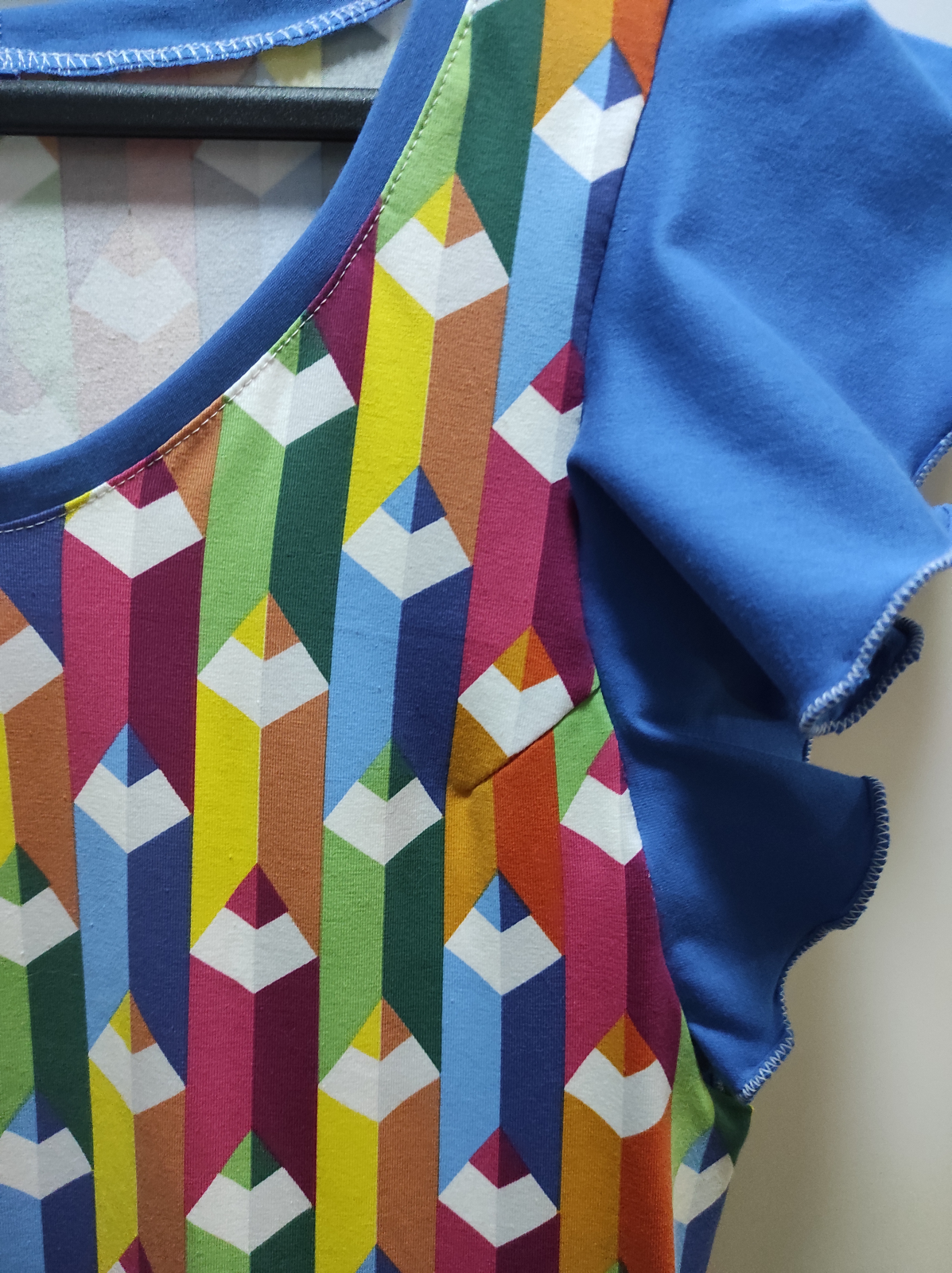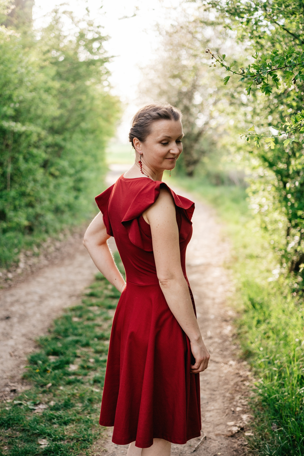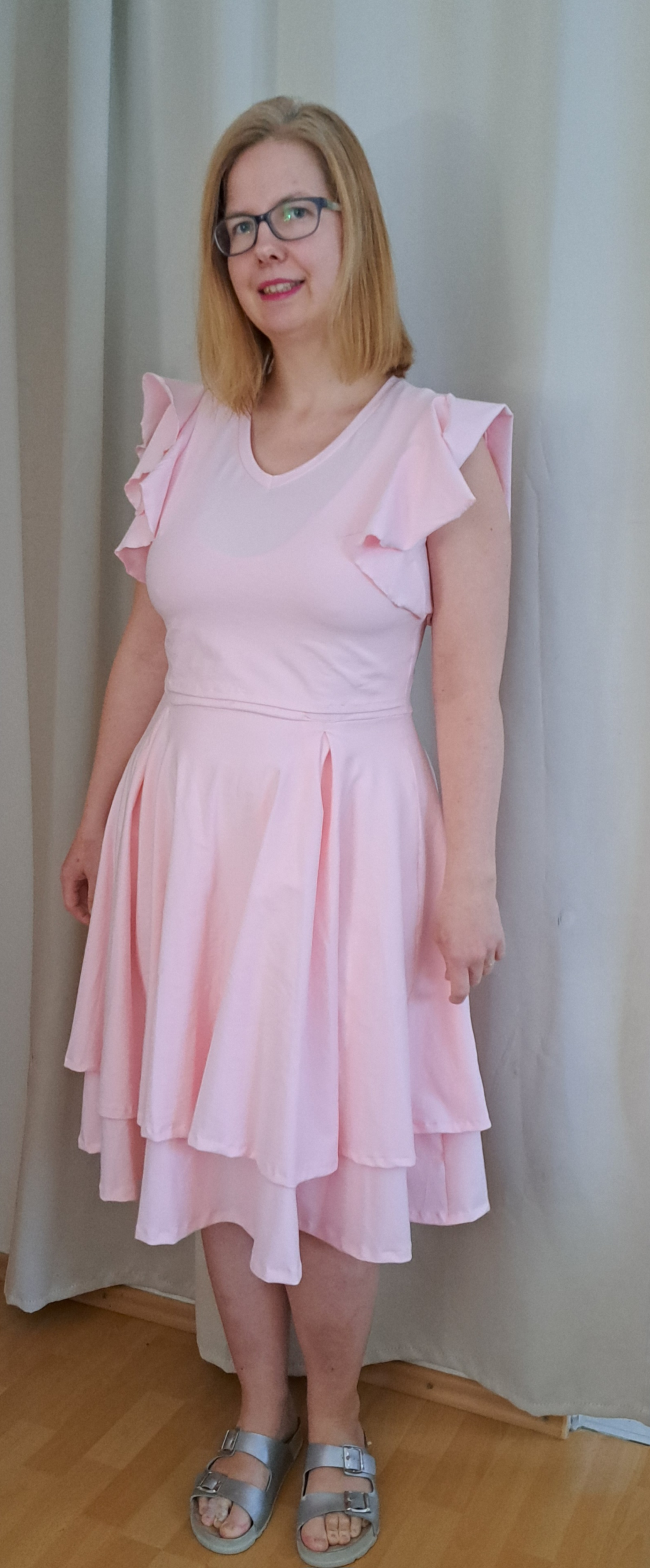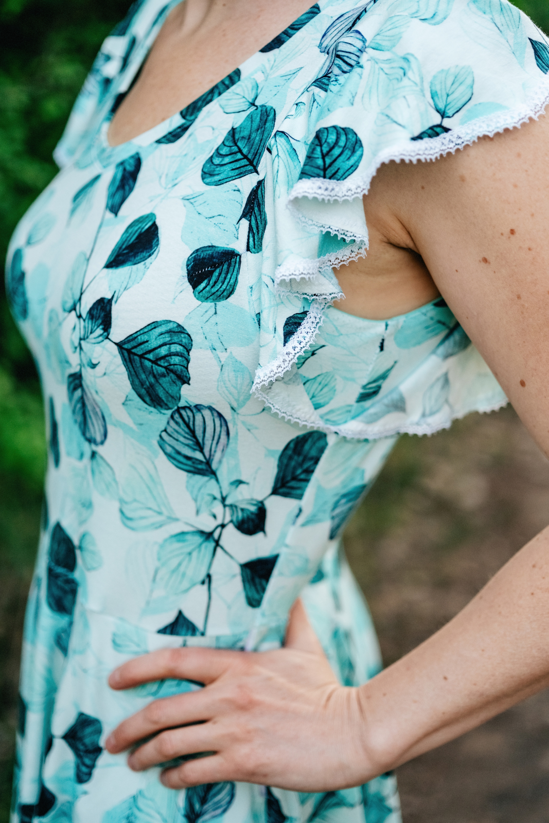 „Střih je super, šaty sedí moc pěkně a jsou příjemné na nošení. Provedení rukávů je zajímavé. Přestože jsem šila podle videa, první rukáv jsem párala třikrát. 😄