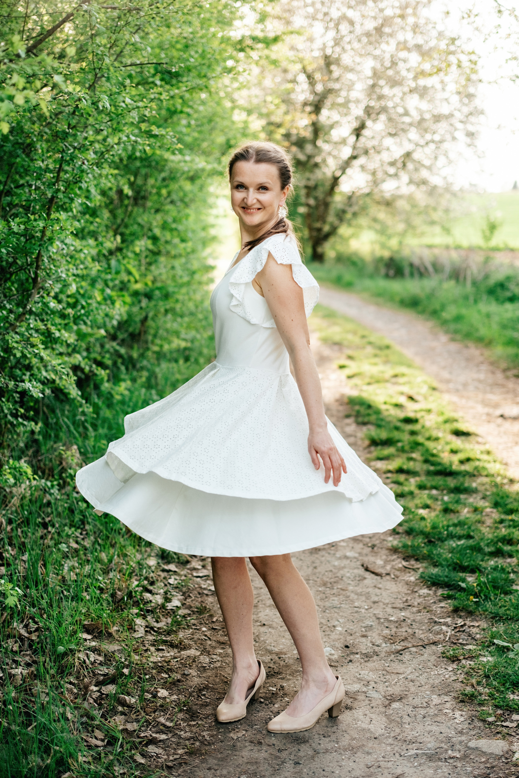 „Zpočátku jsem měla obavy, jak se mi šaty povede ušít, tak složité jsem šila poprvé, ale s videonávodem to bylo jako vždy super. U vrchní sukně jsem udělala místo dvou skladů tři, na předním i zadním díle.“