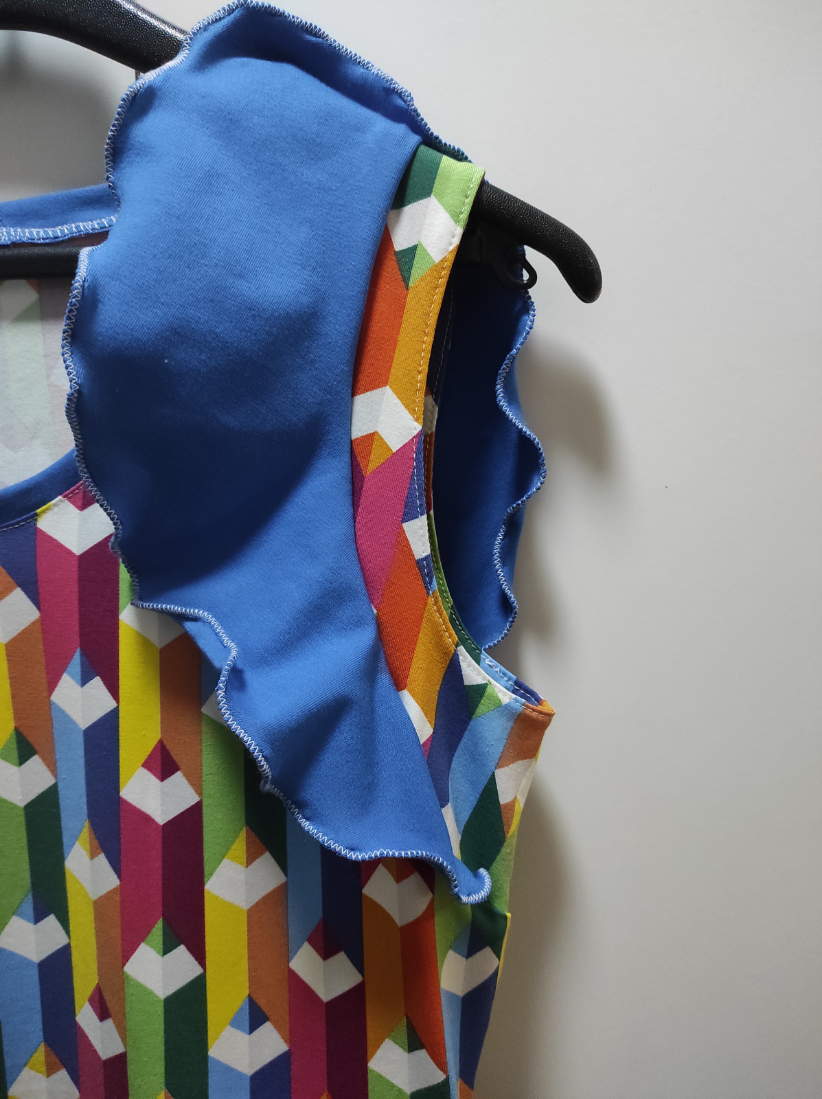 Pokud budete volit potištěnou látku mějte na paměti že může být vidět i druhá strana (rub) při pohledu z boku. především u volánu na rameni.