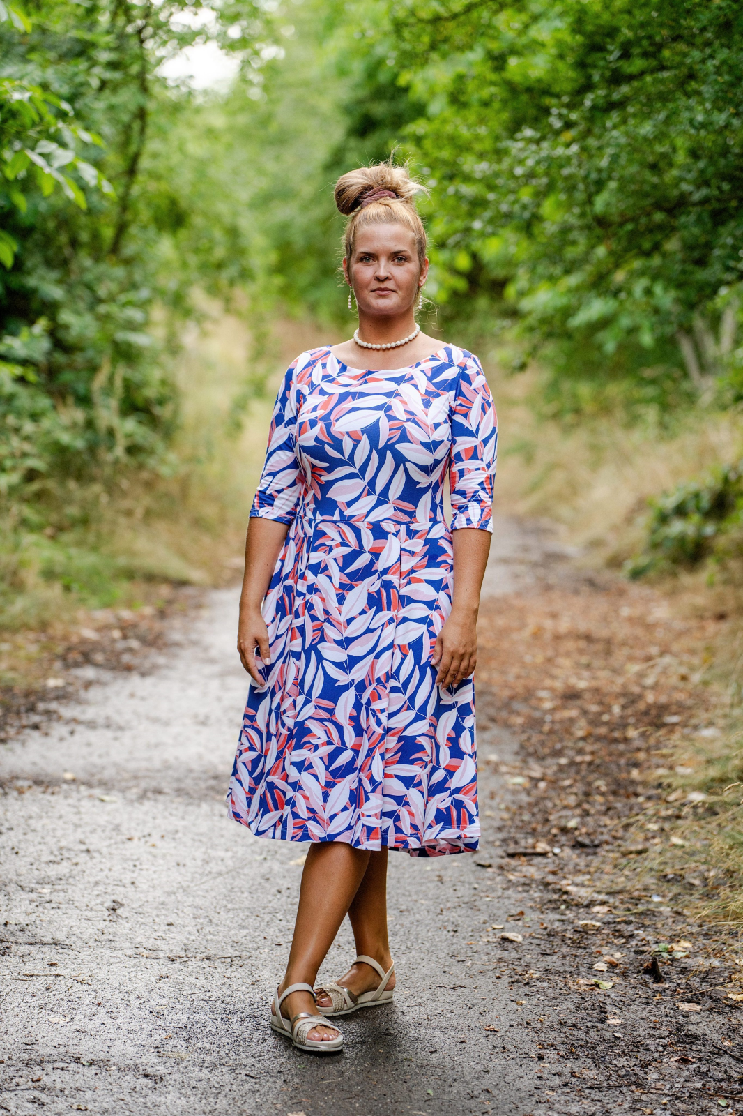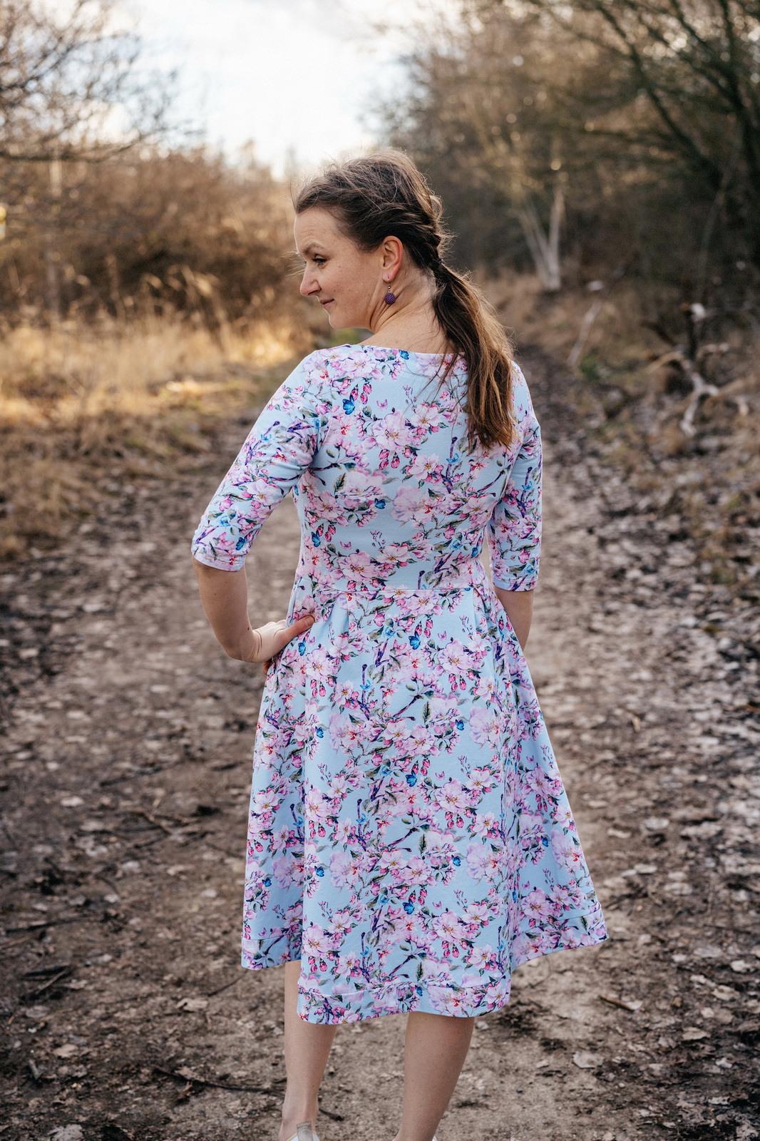 „Moje páté Pavlíny v šatníku. Pokaždé trochu jiné, tentokrát s kolovou sukní a zvětšeným výstřihem na zádech. Šijí se skoro samy a velikost sedí přesně.“