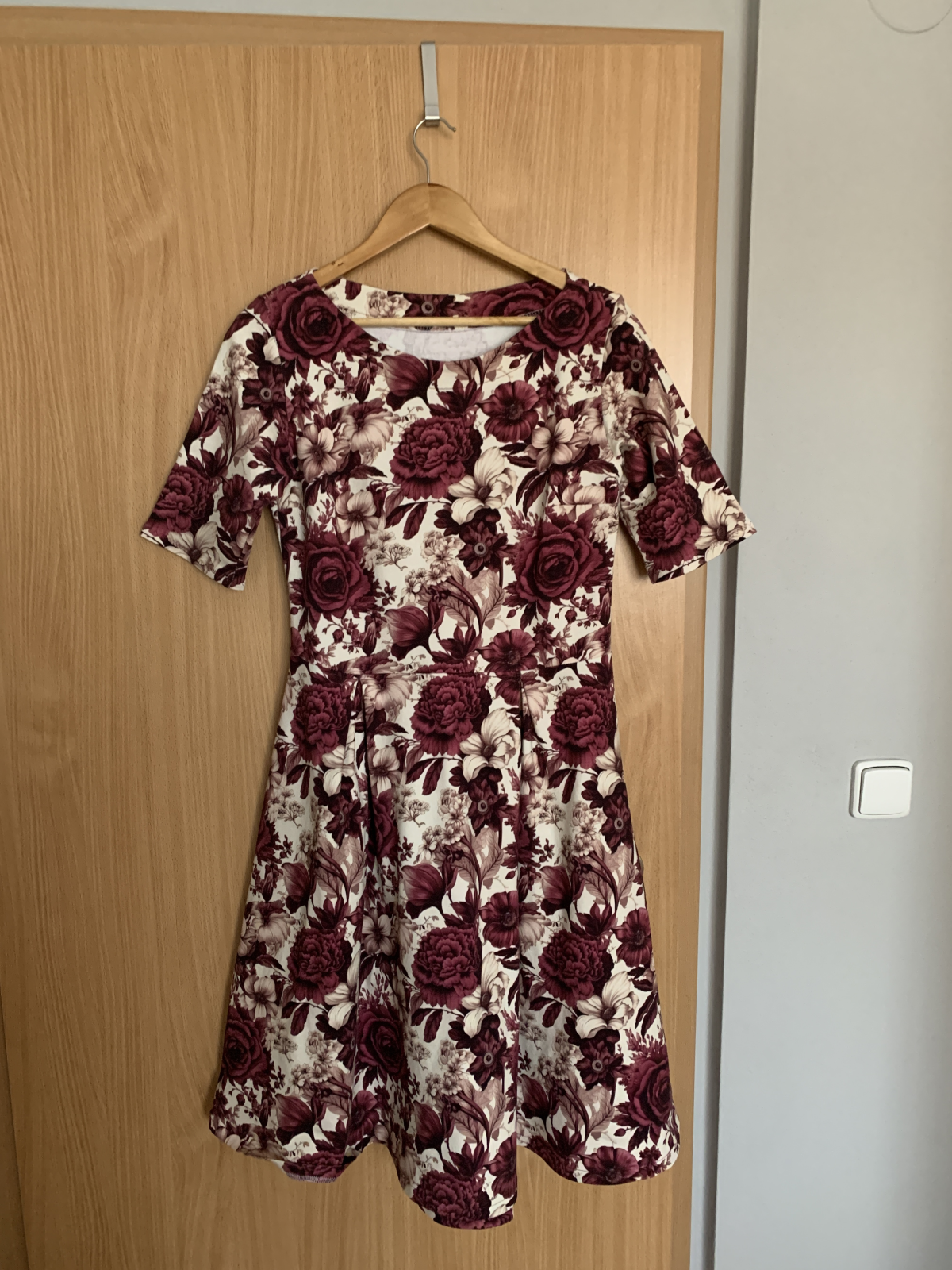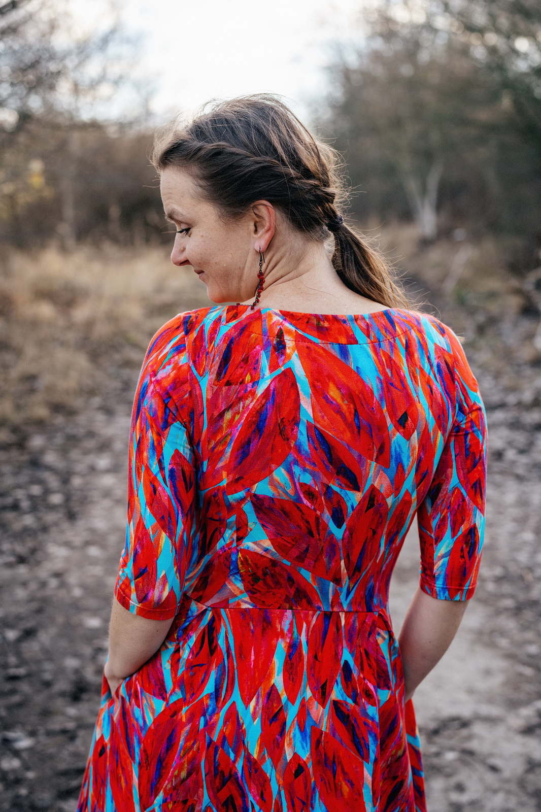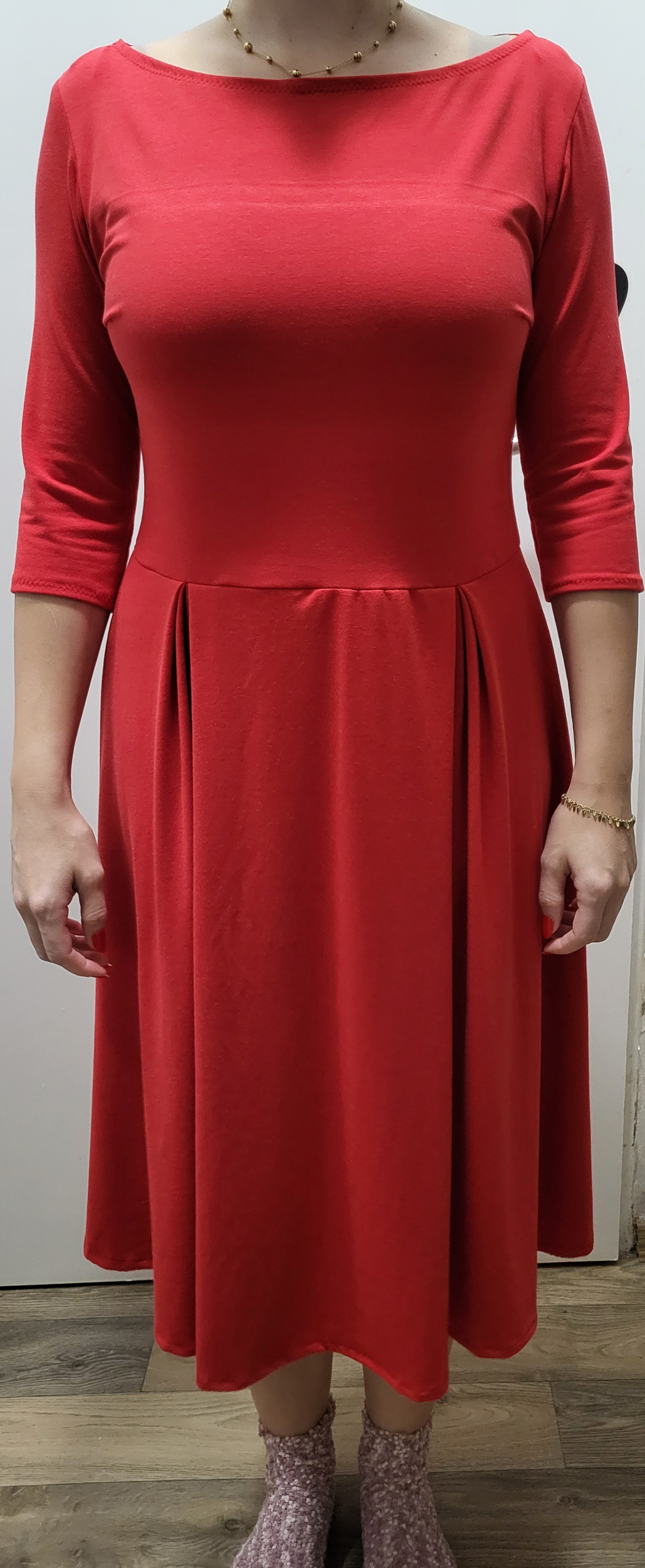 „Se střihem jsem byla velmi spokojená, zrovna tak s návodným videem. Prodloužila jsem rukávy a nepatrně i délku. Délku jsem ještě navíc lemovala proužkem na polovinu. Sklady na předním dílu se otevírají postupně. Takže šaty jsou dost dlouhé a dost hezké, jak říká okolí. Spíše na pozdní podzim a zimu.... Krása. Děkuji za nápad a návod.“