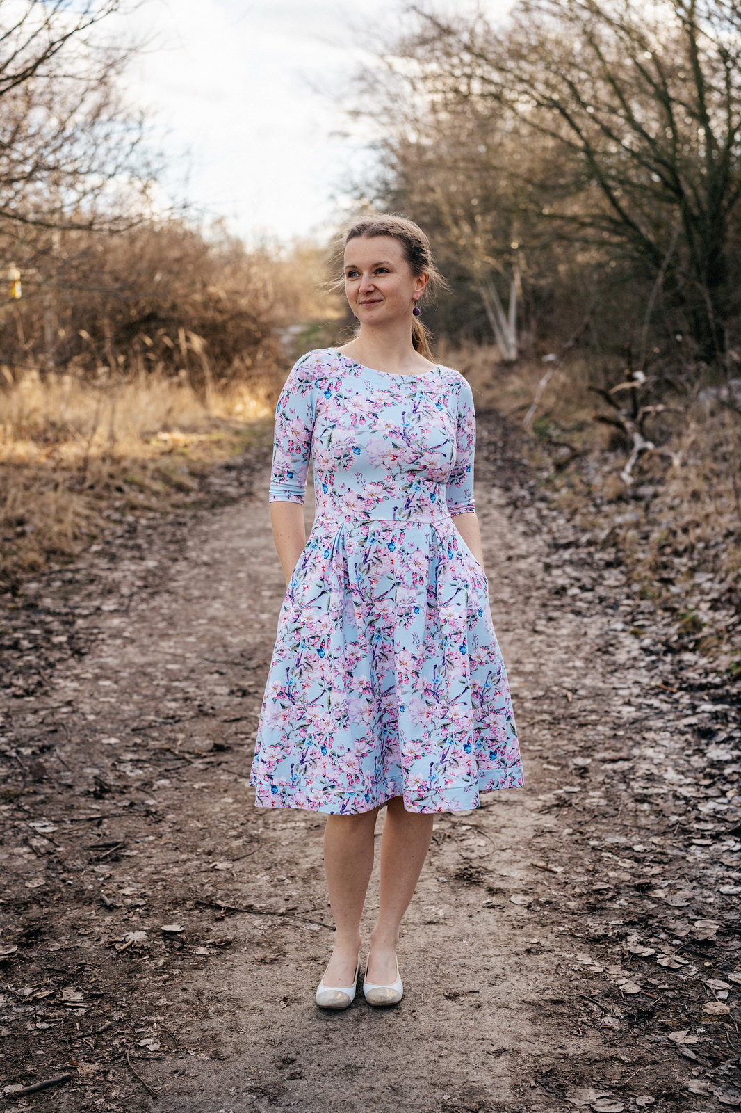 „Bylo to moje první složitější šití. Řekla bych, že to není úplně pro začátečníky. Až teď po asi dvou letech, kdy jsem toho už ušila víc, bych si na ně troufla znova. Možná si budu muset pohrát ještě s konfigurací nebo příště ušít živůtek z Životrika nebo zvolit lepší materiál. Živůtek mi v tomhle případě nesedí, což asi nebude problém Živých střihů (protože jsem viděla už spoustu povedených a sedících Pavlín tady i ve skupině na fb), ale prostě se mi ta první konfigurace nepovedla. Sukně je skvělá. Šila jsem ji i samostatně z plátna s gumou do pasu a nosí se parádně. 🙂 Zatím jsem ji jak na šatech, tak i samostatně jenom řasila a neskládala. Někdy ji snad zkusím i skládanou. 🙂“