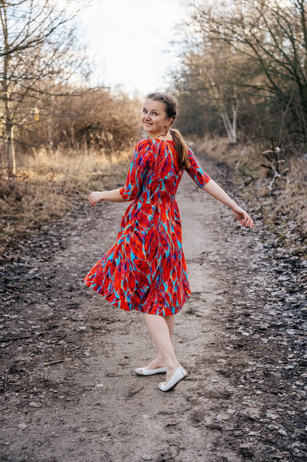 „Moc děkuji za střih. Jsou to mé první ušité šaty. Šaty jsem hned vyvezla na podzimní výlet do italského Alberobello. Využila jsem videonávod, který je velmi užitečný. Určitě plánuji ušít si Pavlíny v kombinaci třeba s půlkolovou sukní bez skladů.“