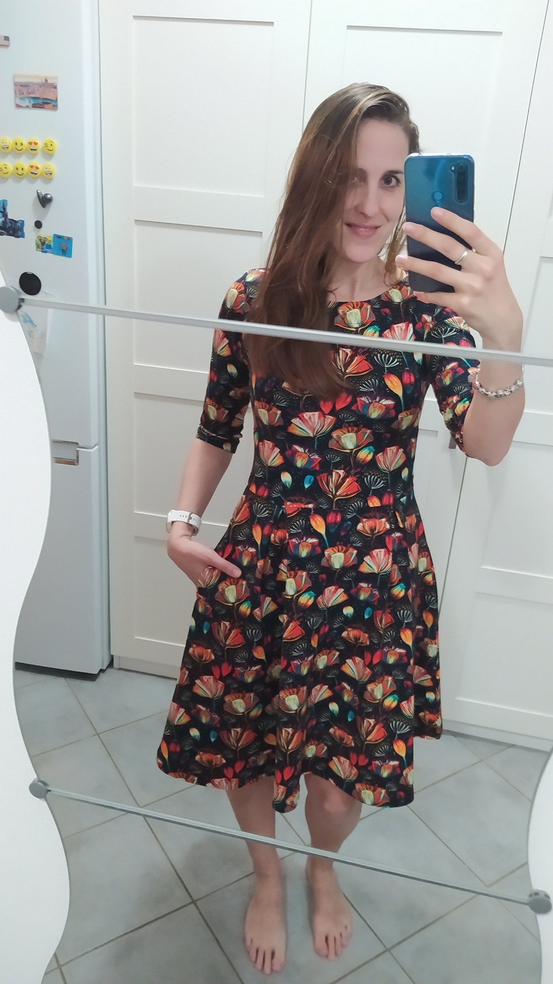 AD: "Šaty se šily parádně, vše bez problémů, jen jsem použila kapsy ze střihu Leontýna, více mi vyhovují tvarem a hloubkou. " *