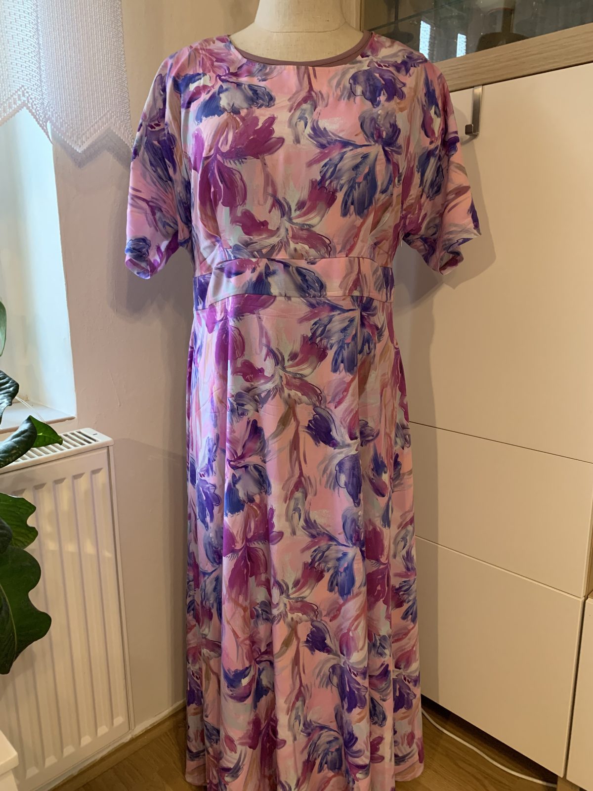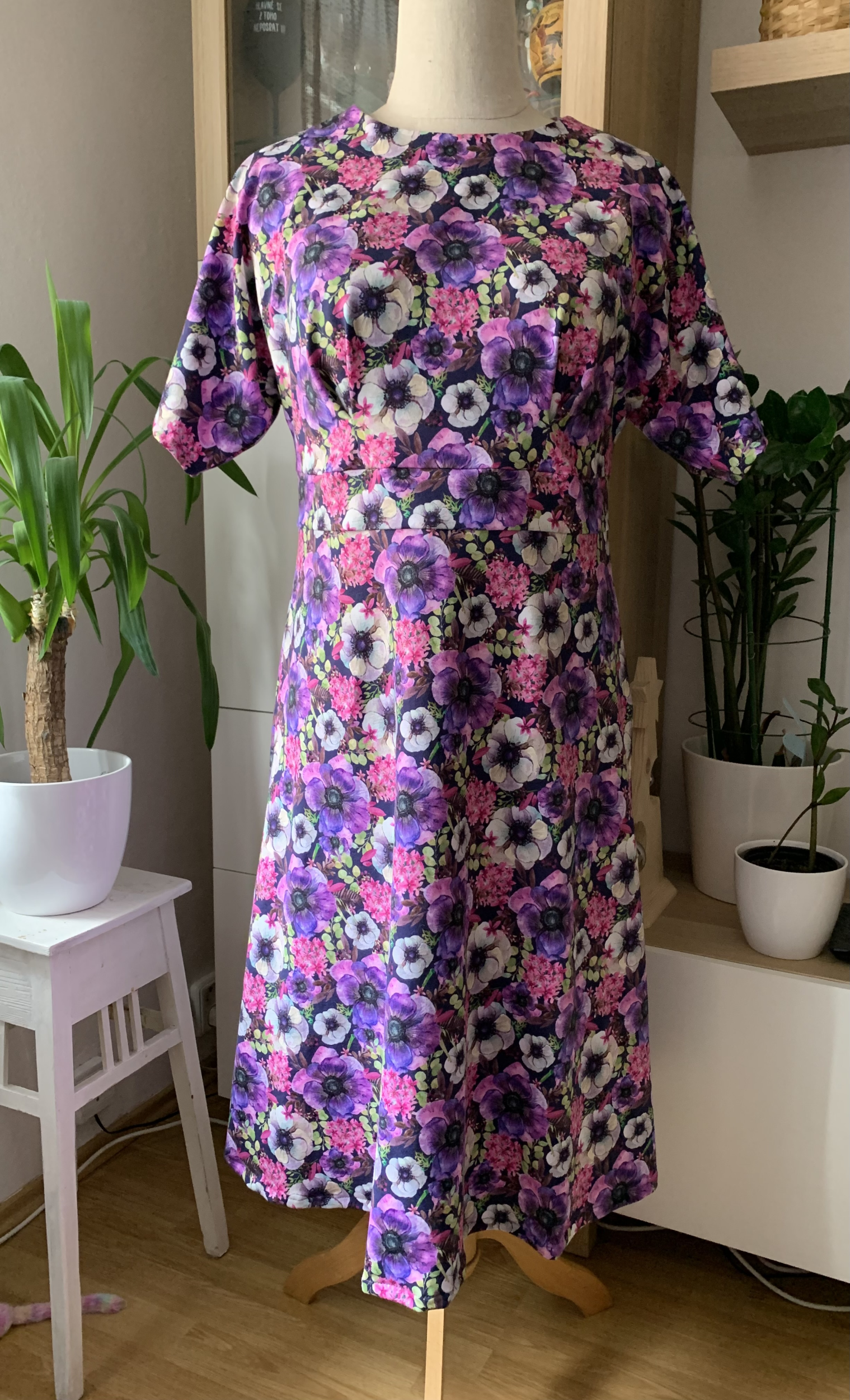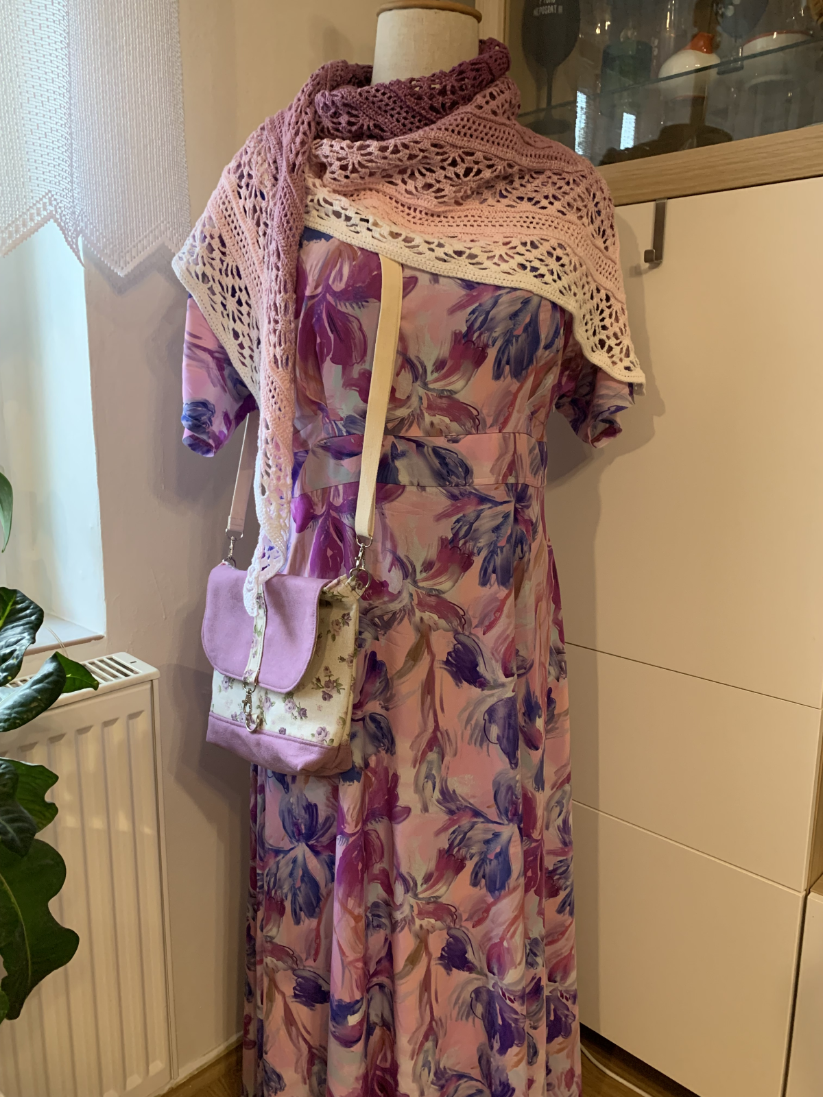 ZB: "Úžasné šaty, rychle hotové. Stačí jen cca 120cm plné šíře materiálu. Elegantní. Mám je cíleně mírně více na tělo, protože jsem ve fázi úspěšného hubnutí. Myslím, že jsou fajn i z toho důvodu, že až odevzdam ještě pár cm, bude sedět a nebude problém v ramenou a přes prsa. Tedy za mne ideální i pro ty, co právě hubnou." *