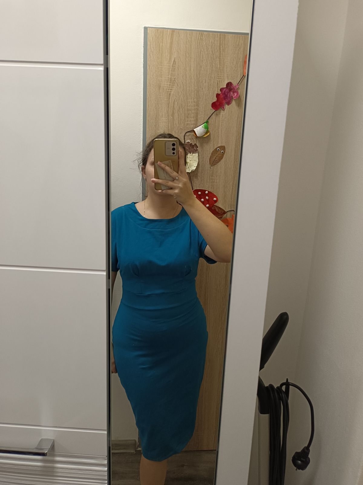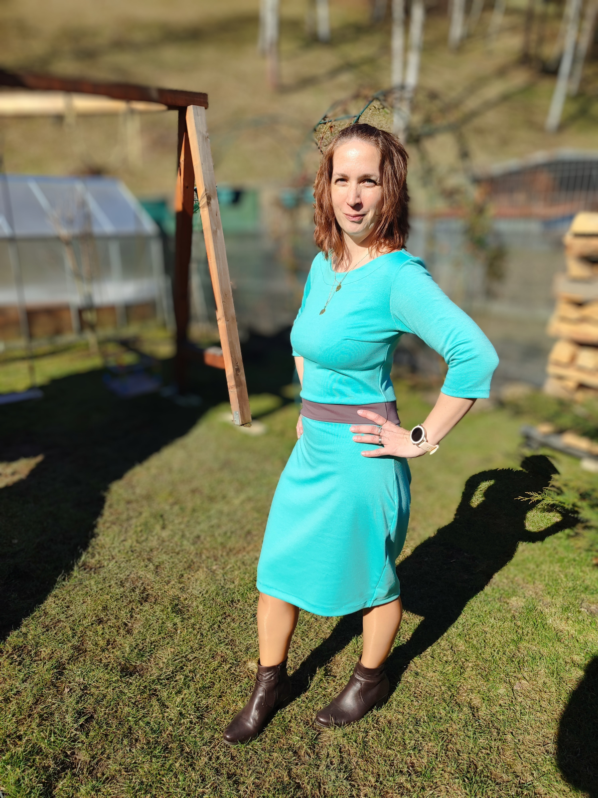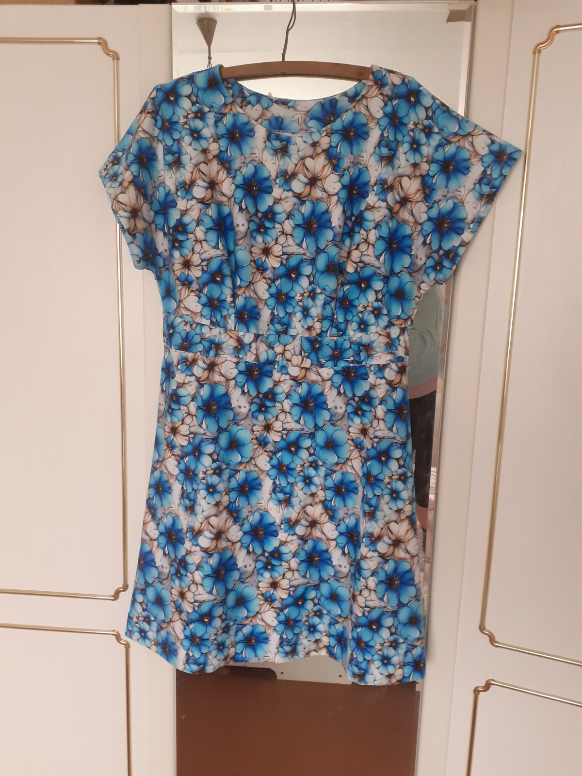 ZB: "Úžasné šaty, rychle hotové. Stačí jen cca 120cm plné šíře materiálu. Elegantní. Mám je cíleně mírně více na tělo, protože jsem ve fázi úspěšného hubnutí. Myslím, že jsou fajn i z toho důvodu, že až odevzdam ještě pár cm, bude sedět a nebude problém v ramenou a přes prsa. Tedy za mne ideální i pro ty, co právě hubnou." *