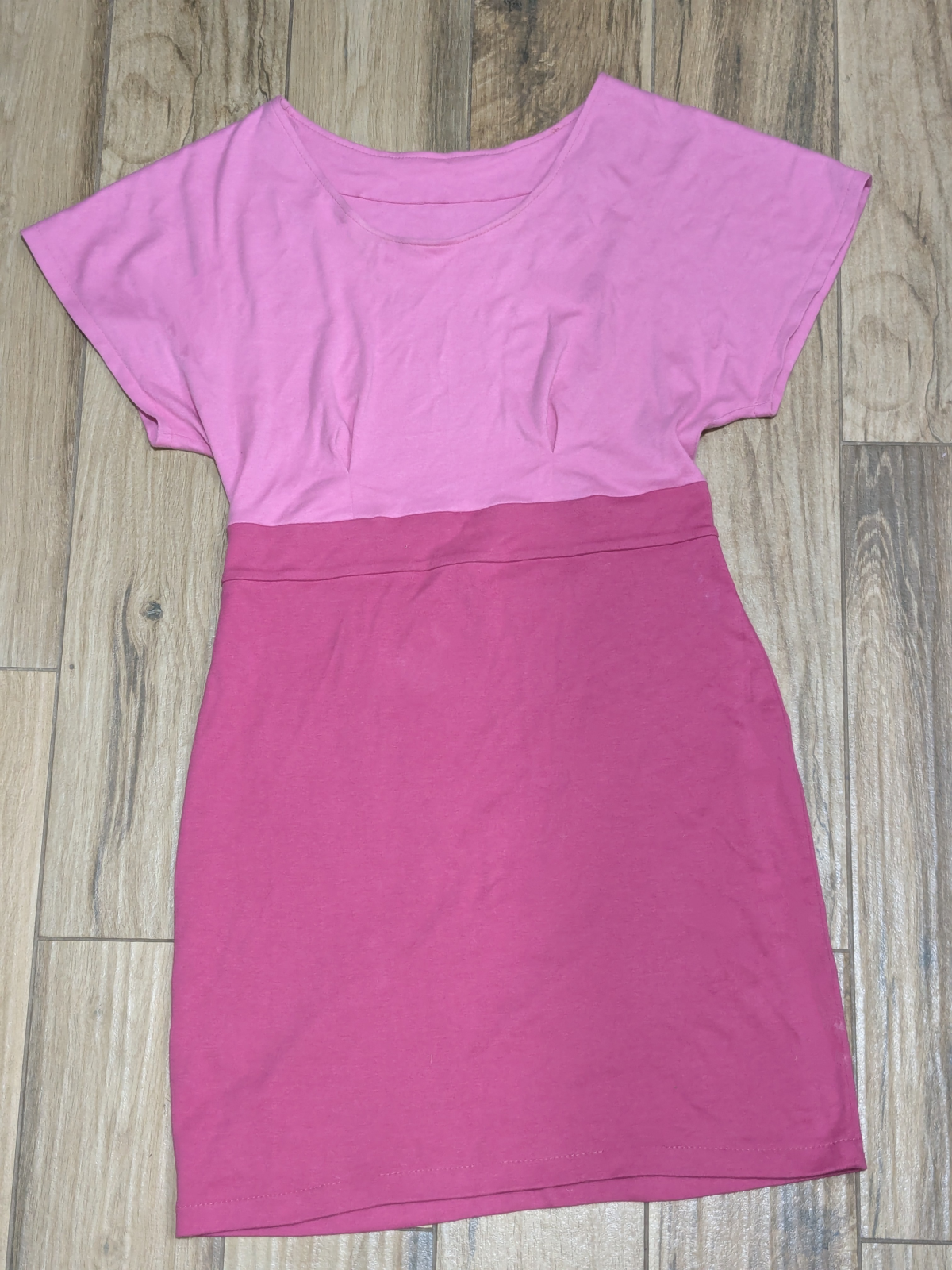 MV: "Podle videa se šilo bez problémů. Ve střihu jsem si zvětšila výstřih kvůli kojení, ale nepovedla se mi moc podsádka, místy to odstává a musím ji ještě trošku poupravit. Jinak šaty krásně sedí :-)" *