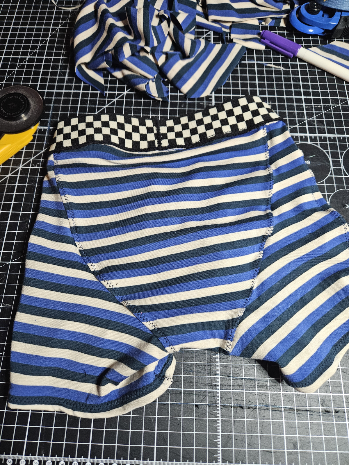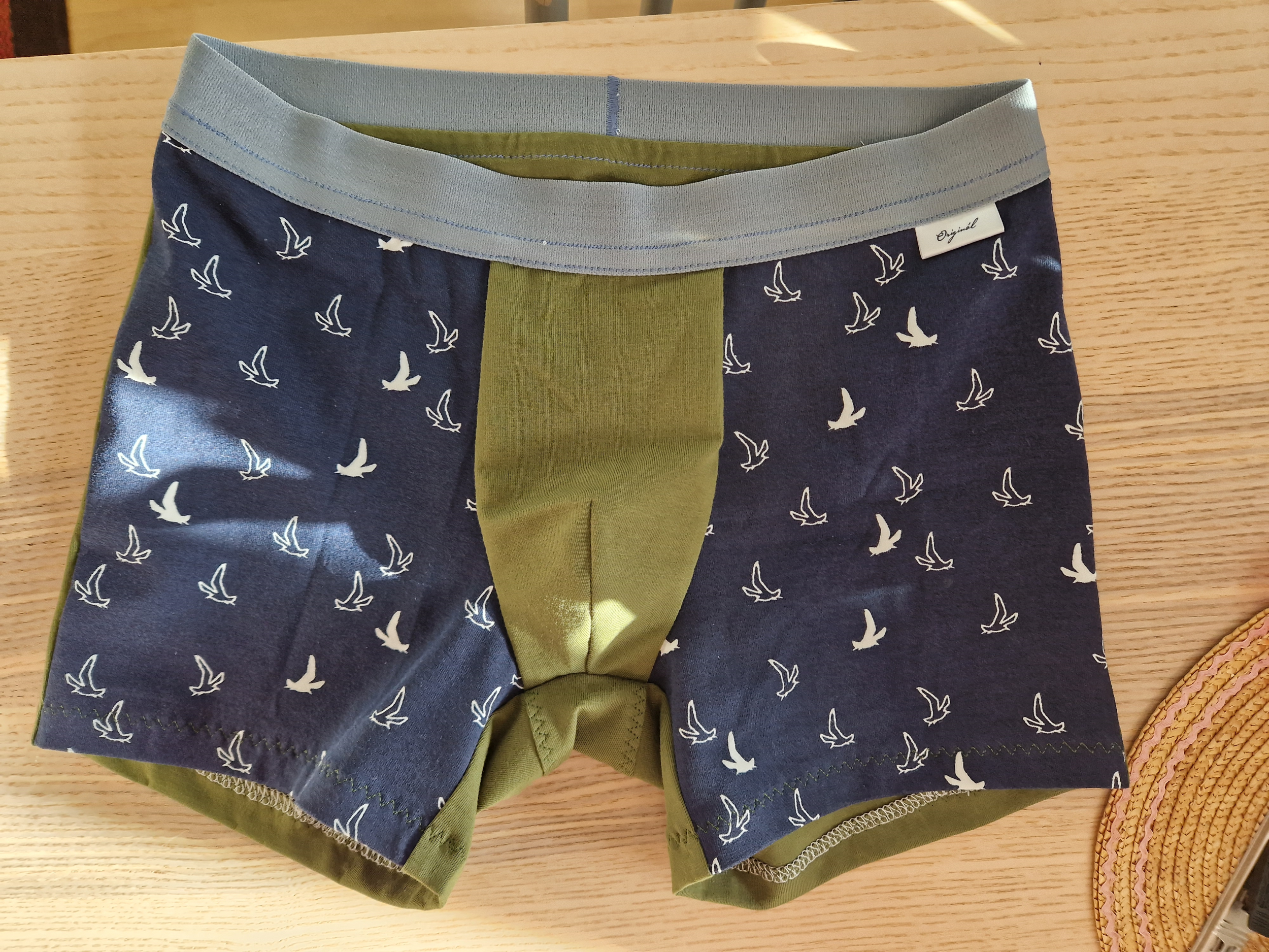 milakohn: "Šilo se výborně, střih krásně sedí a hlavně super video! Model bohužel není doma, tak jsou boxerky na stole. Přední klínek jsem dala na obou stranách lícem nahoru, chlapcům se lépe orientuje, kde je předek a zadek :)" *