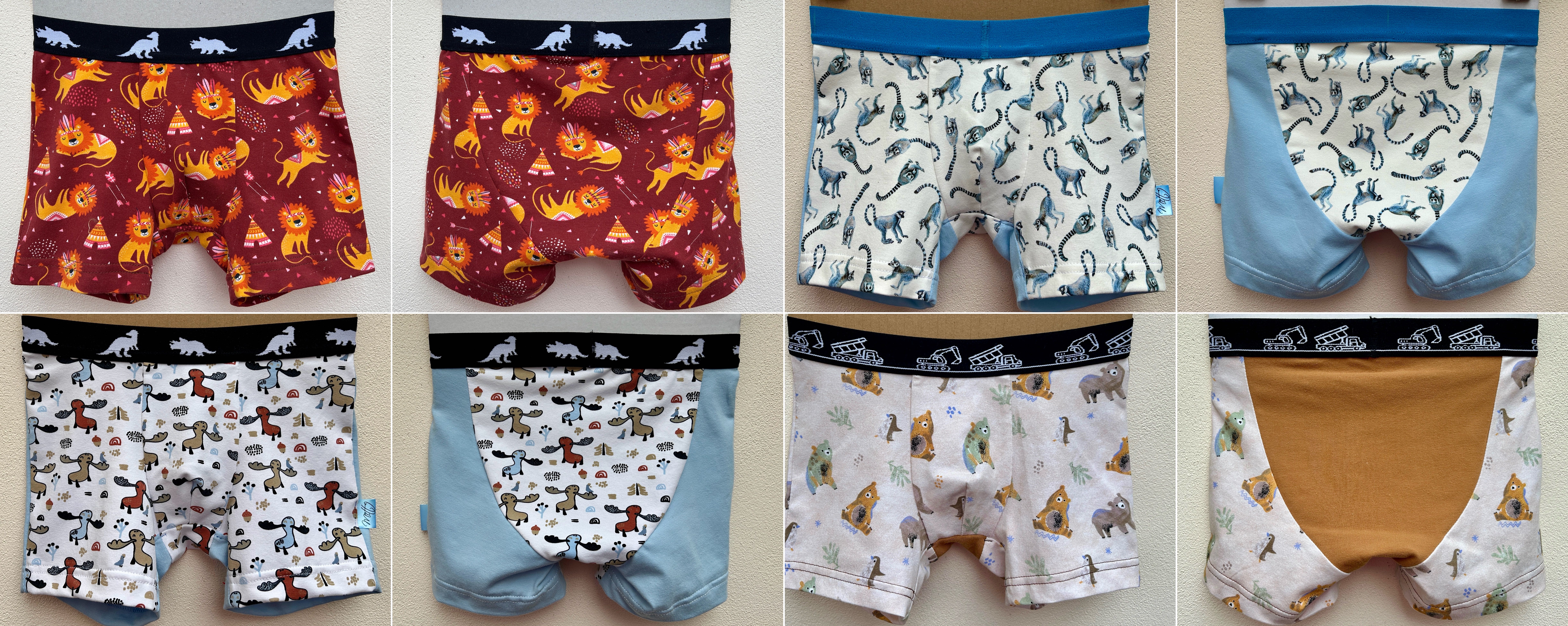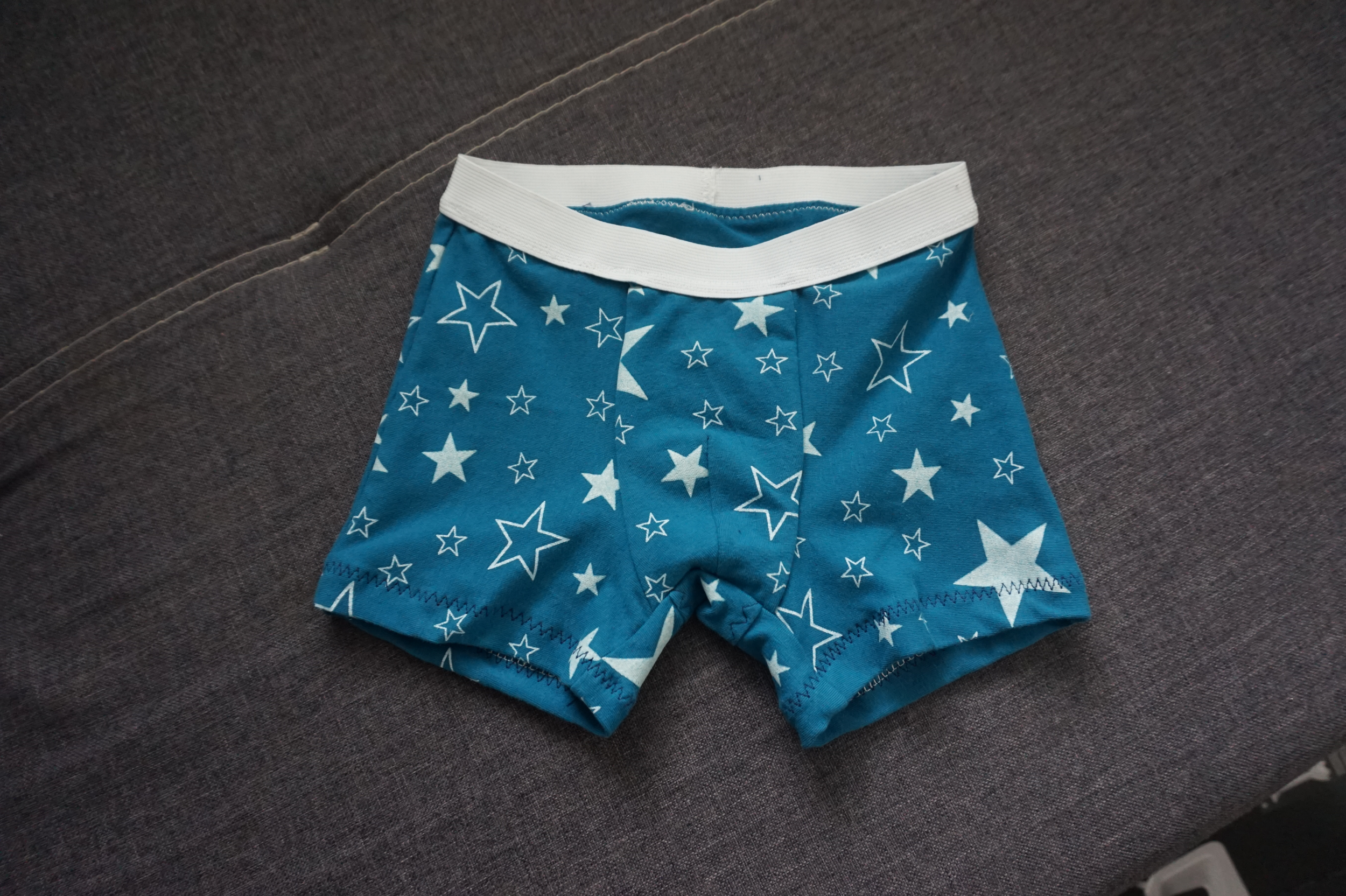 KR: "Podle návodu se šilo skoro samo! Naprosto super konfigurace,syna boxerky z obchodu škrtí přes stehna,tady má prostor do nich i dorůst. Už má patery a zbytků na další mám ještě dost ❤️" *