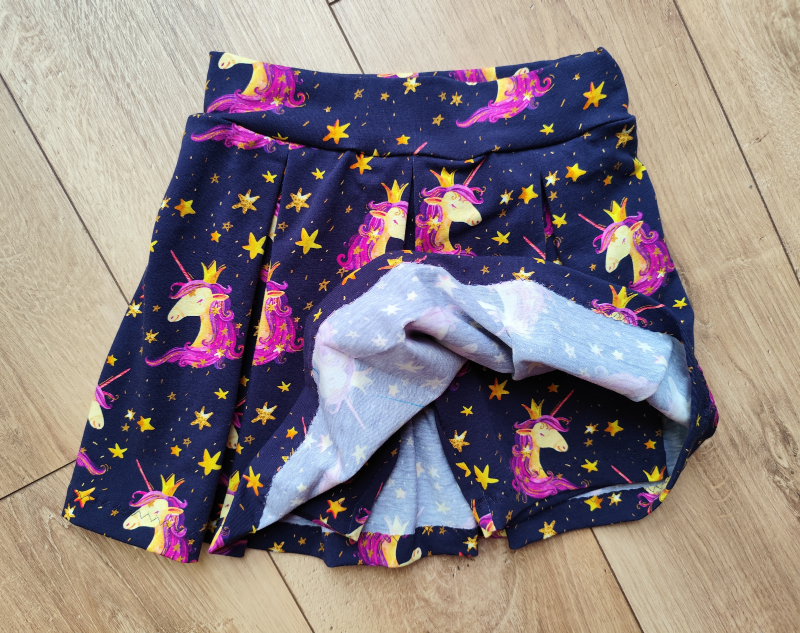 • TIP: Vhodné i pro dívky se silnými stehny, předejdete tření nohou. Ušijte legínky z jemného bambusového úpletu a sukni z bavlněného. Budete tak mít krásnou skládanou sukni a jemnou látku uvnitř.