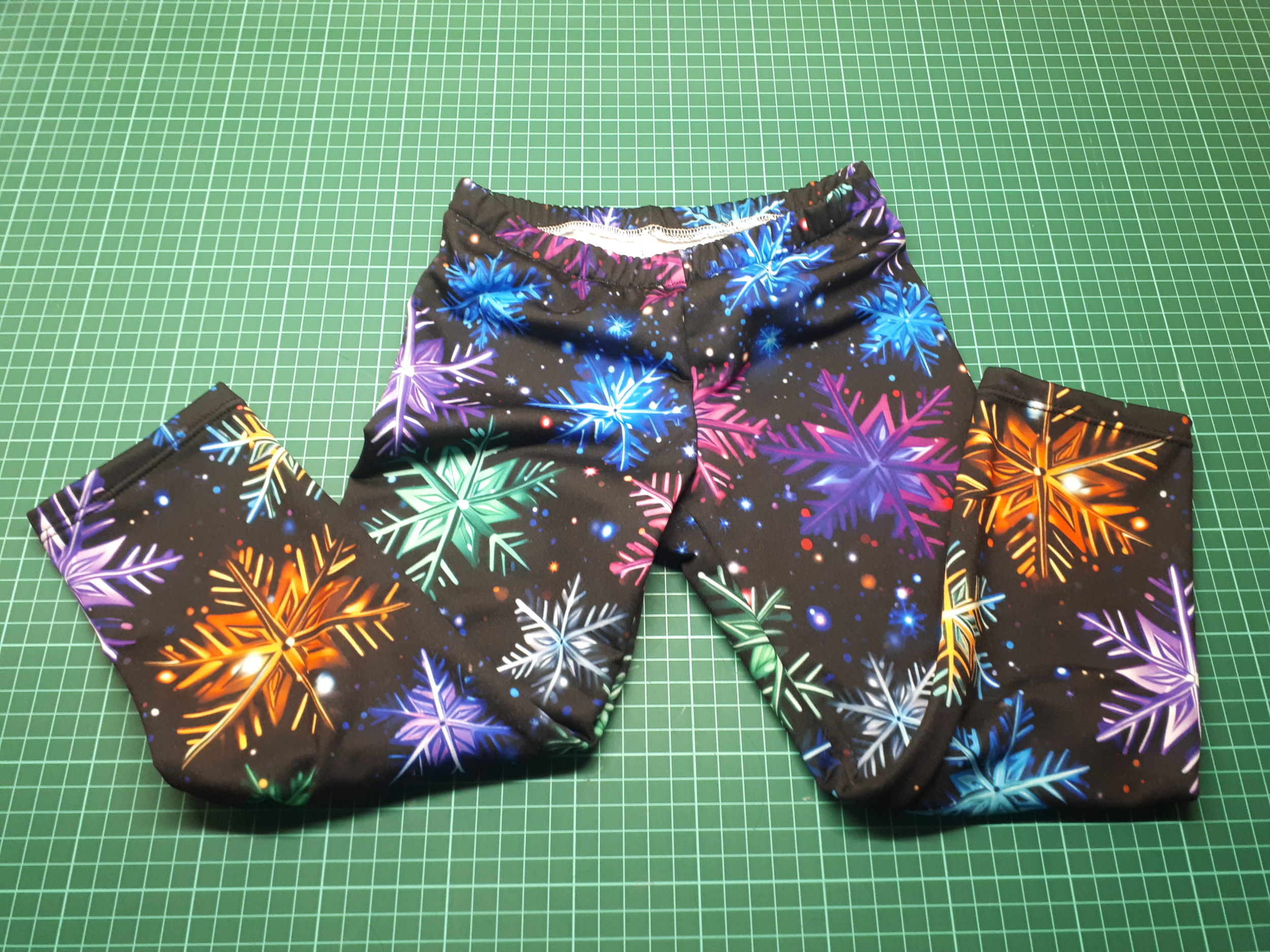 JK: "Živolegíny jsem si nakonfigurovala dle rozměrů. Dcera si vybrala látky ze syslírny. Střih jsem promítla projektorem na látku a společně jsme nastříhaly a nařezaly. Převlékly jsme nitě ve strojích a ušít už byla rychlovka. Střih sedí perfektně, dle návodu ho zvládne každý. Děkujeme " *