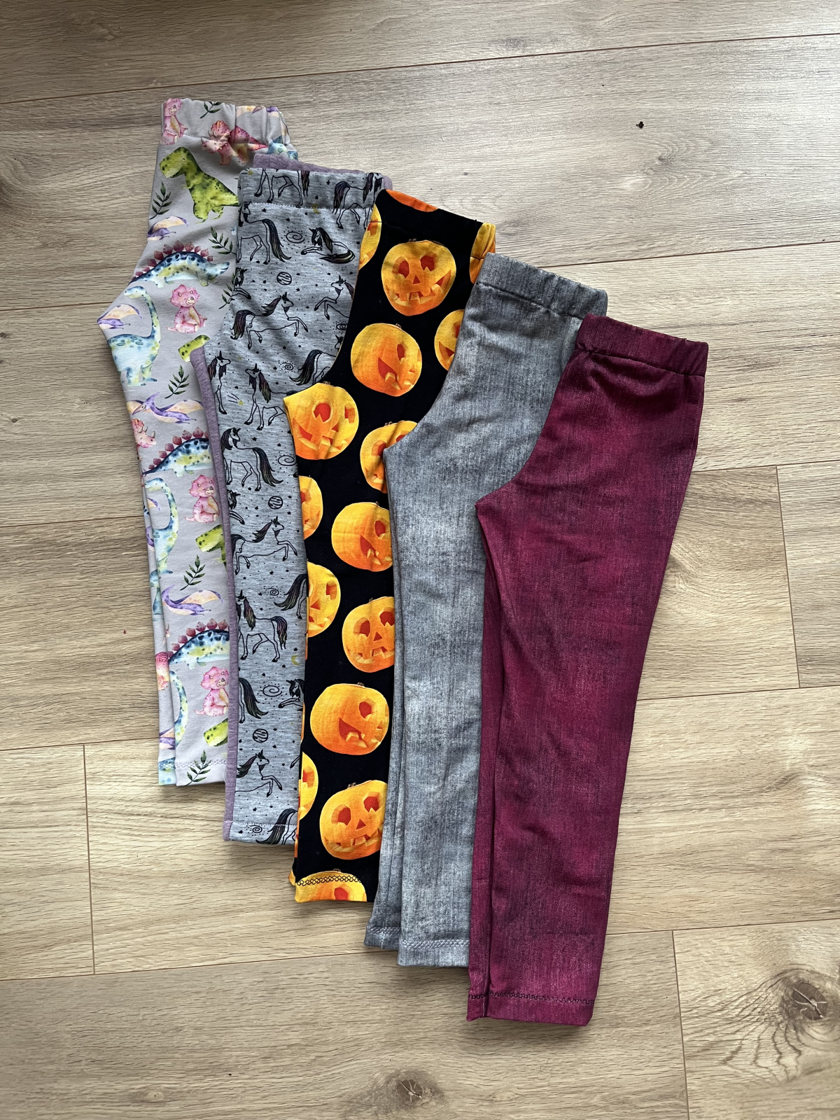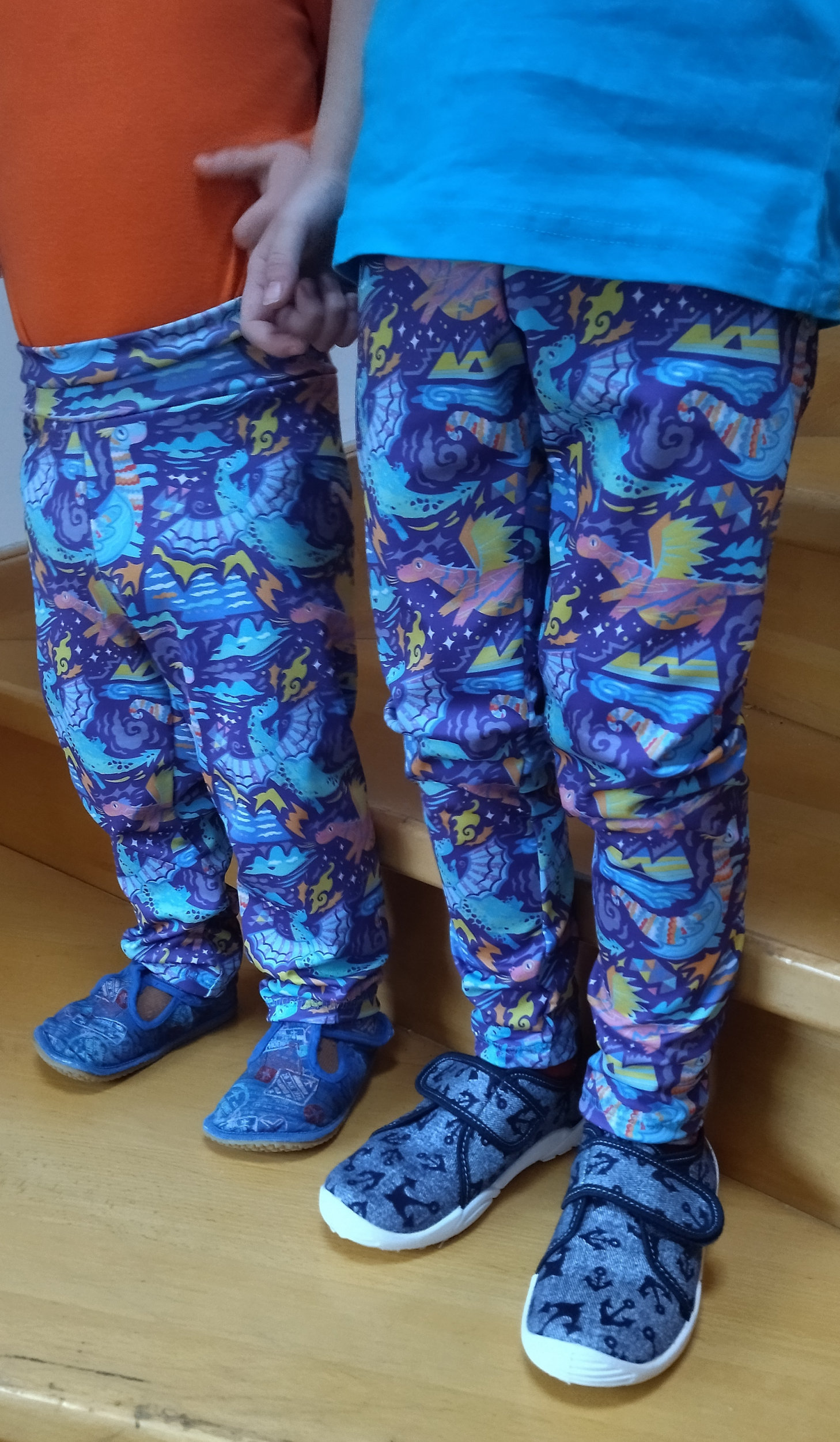 DL, insta SheDarmo: "Tento úplet je malinko pevnější, takže leginy seděly trochu těsněji než na originální fotce. Nohavice jsem zkracovala nad kolena a do půli stehýnek dítěte. " *
