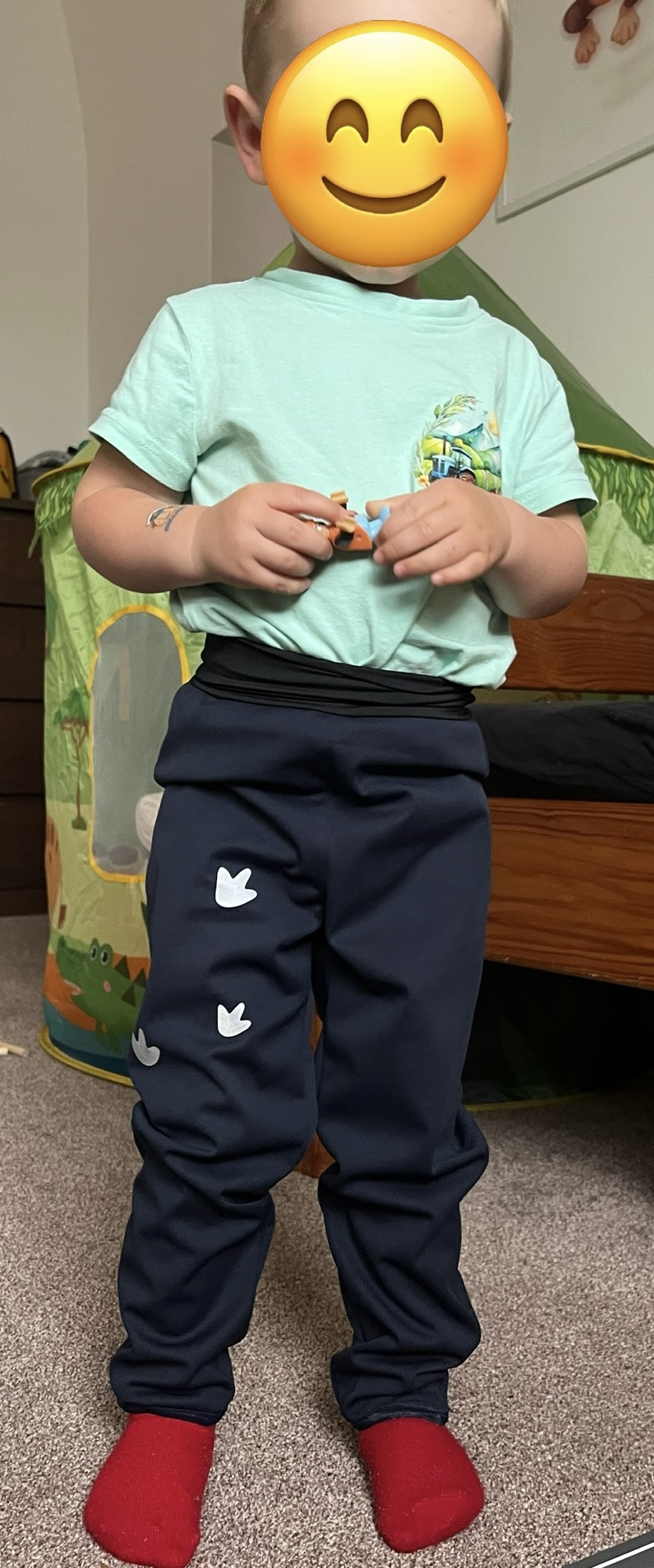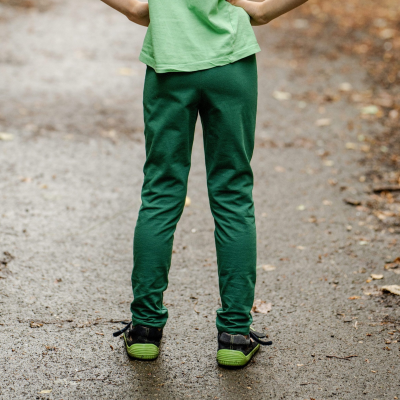 MS: "Mockrát děkuji za skvělý střih a hlavně možnost konfigurace. Na našeho žížaláka beru vždy menší velikost a prodlužuji. Tady jsem to díky konfiguraci měla téměř bez práce. Přidala jsem náplety do pasu i na nohavice. Díky tomu nikam netáhne ani při jízdě na kole. Syn je teď nosí do lesní školky, má už troje :-) Jsou mu pohodlné, nebrání pohybu. Prostě super:-)" *