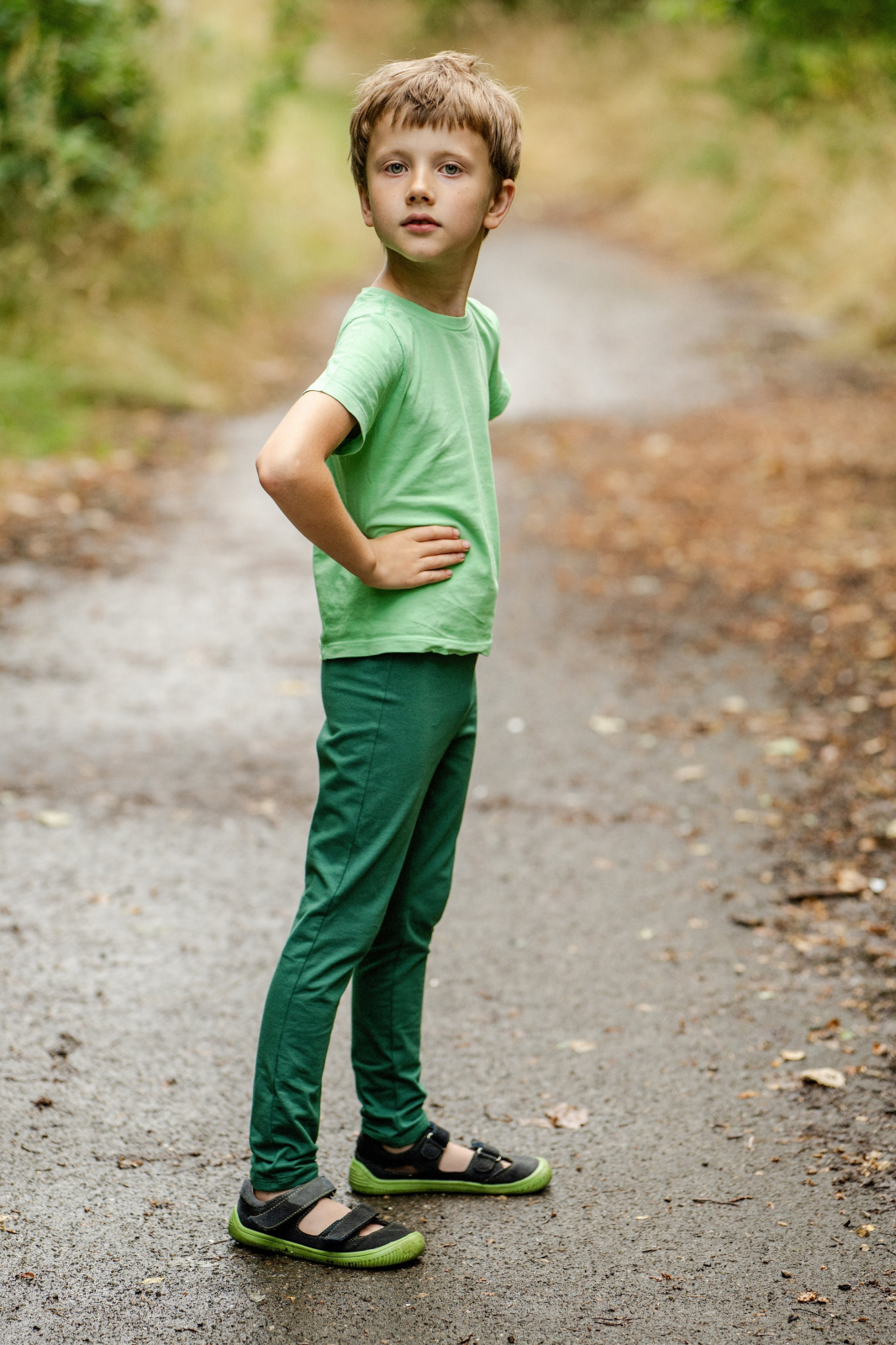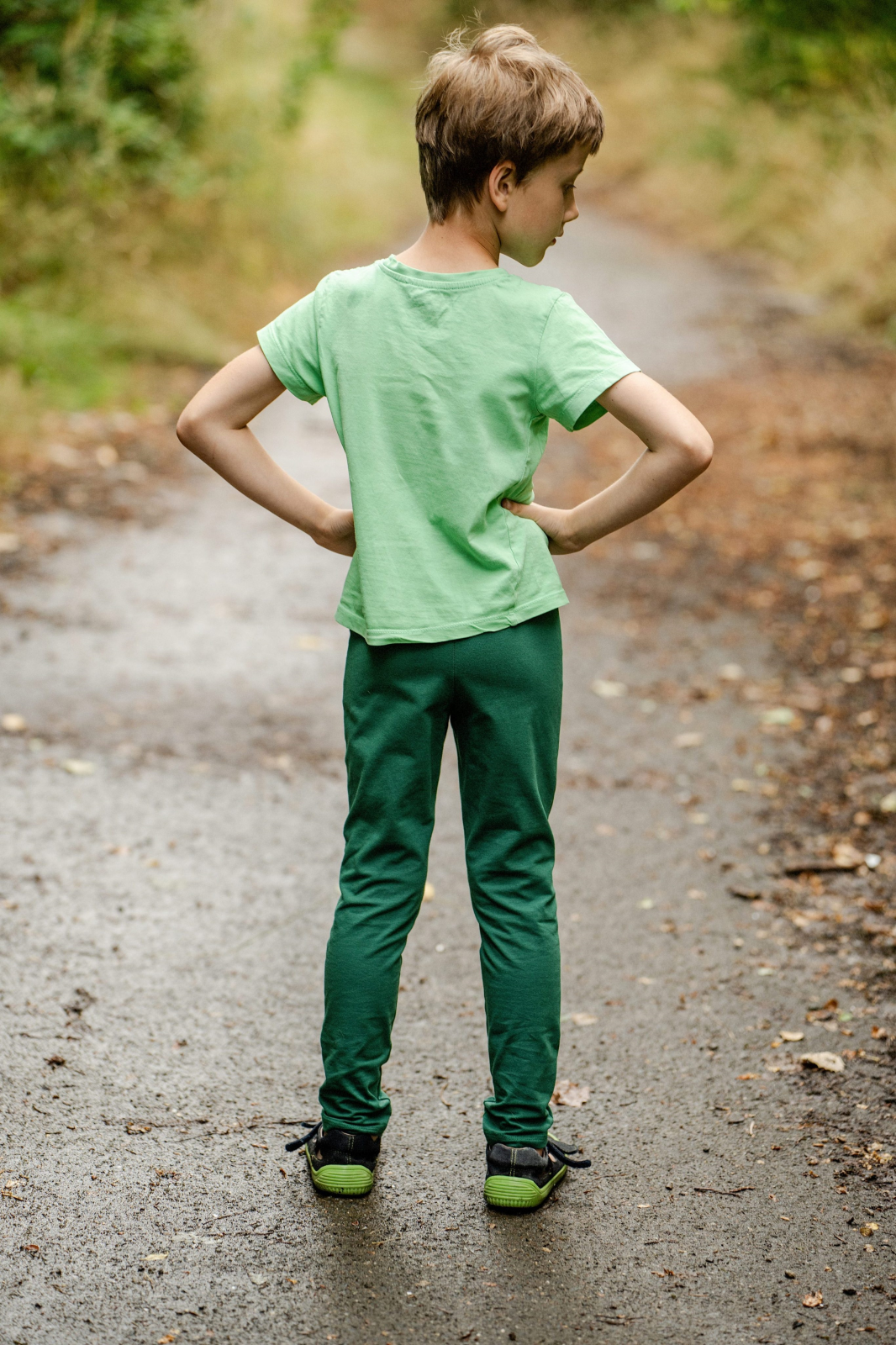„Tento úplet je malinko pevnější, takže leginy seděly trochu těsněji než na originální fotce. Nohavice jsem zkracovala nad kolena a do půli stehýnek dítěte.“
