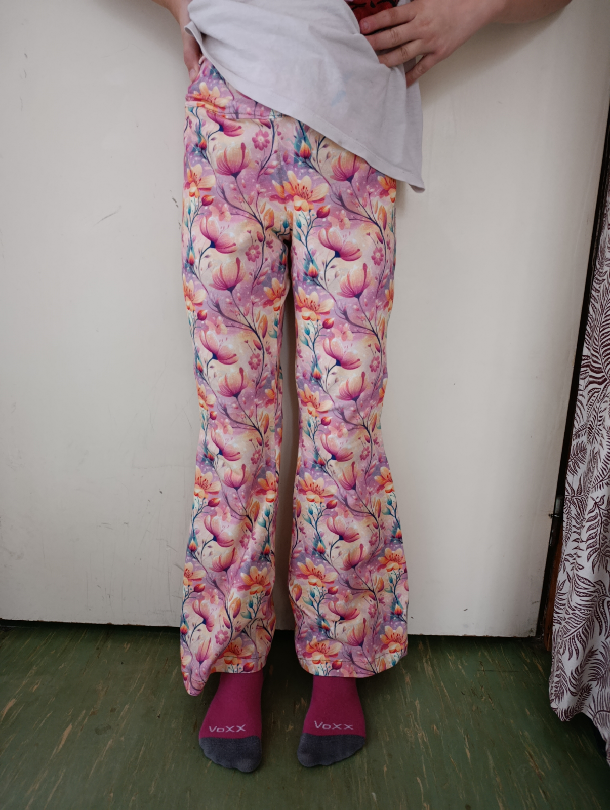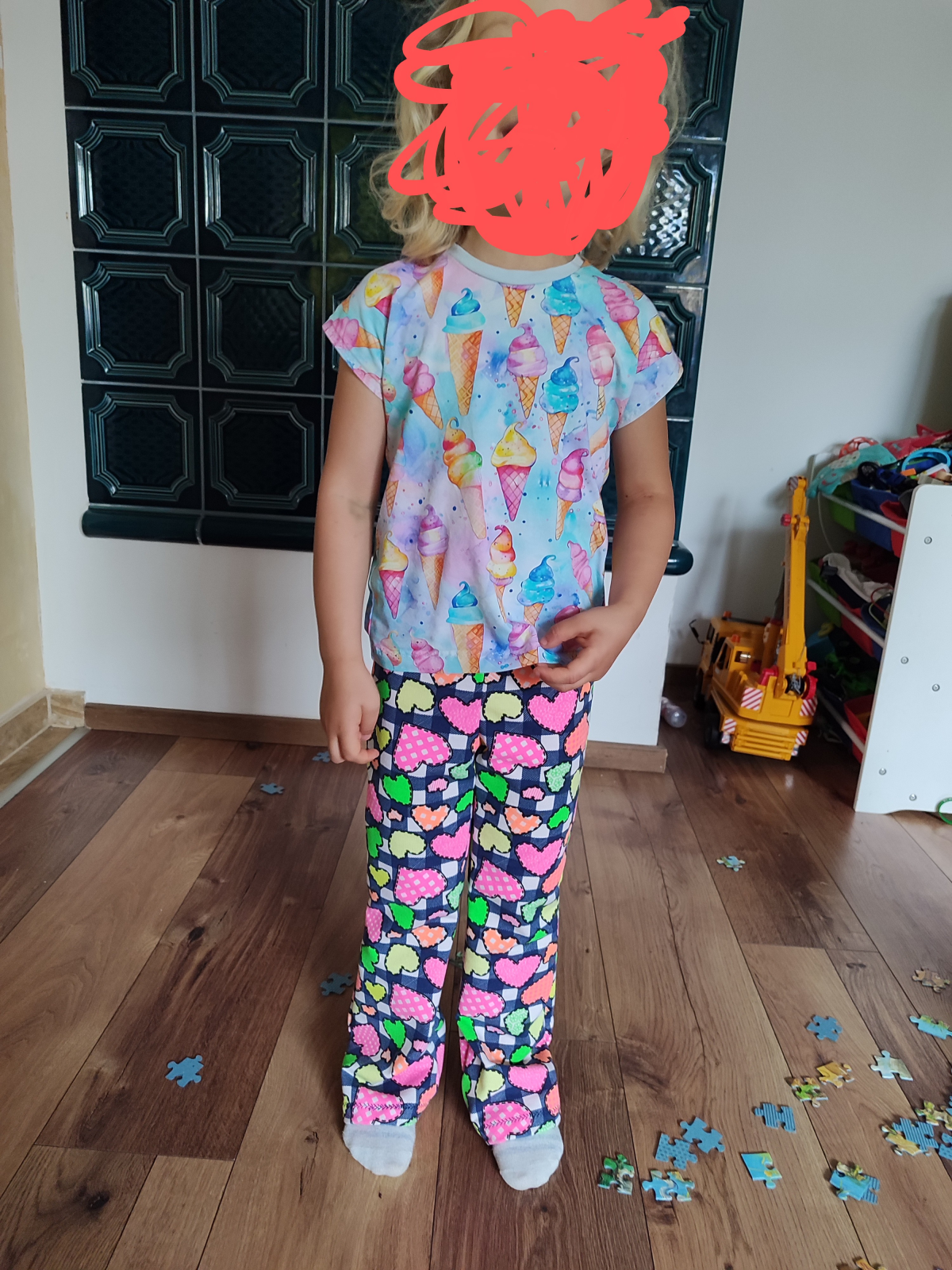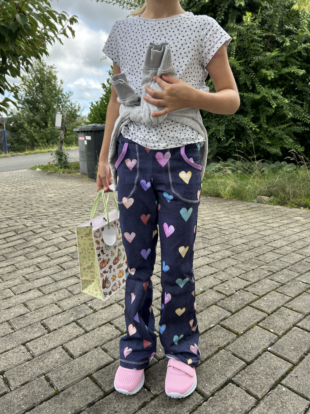 „Šilo se krásně a rychle, jako vždy. Dcerce jen nevyhovuje vysoký pas (hned si ho začala ohrnovat), tak příště trochu snížím, což je u živých střihů krásné, že to jde tak snadno :o)“